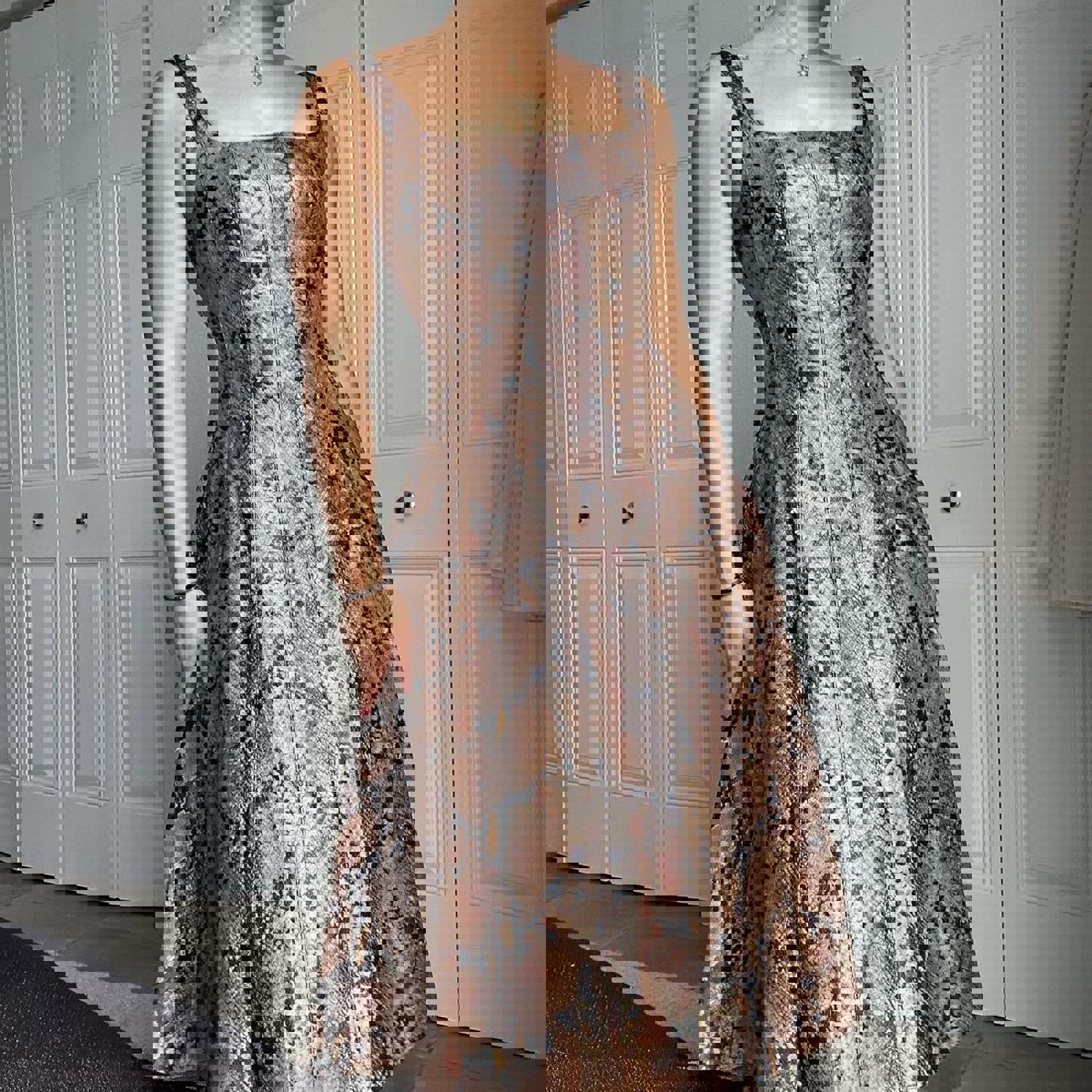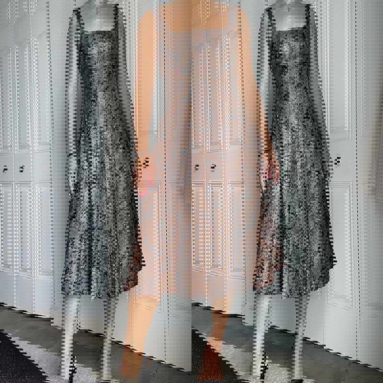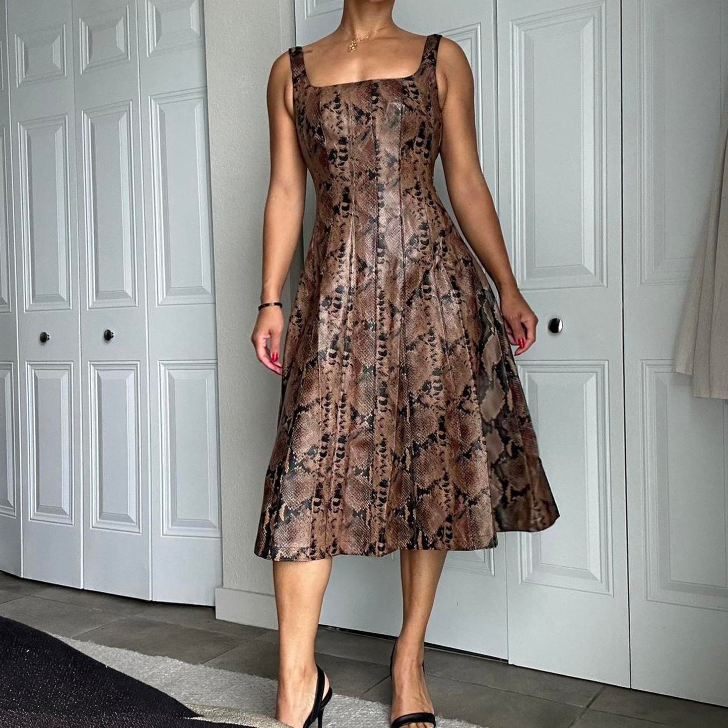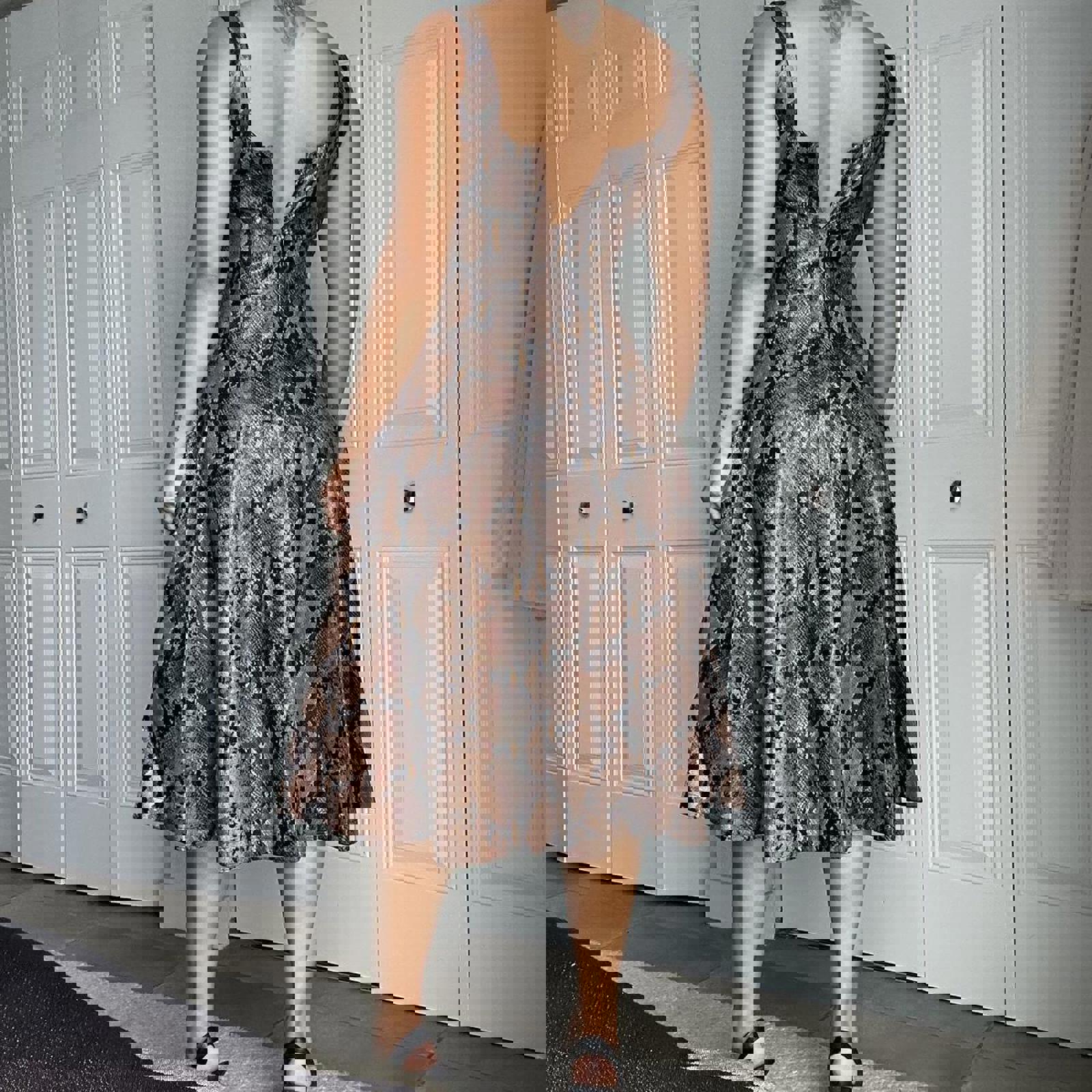 622. 7 for All Mankind snake skin dress in a size extra small. Tags are still attached in absolutely perfect condition. I couldn't zip the back because I couldn't do it myself. However, it does fit a small if you want it to fit tighter. Measurements laying flat are below: