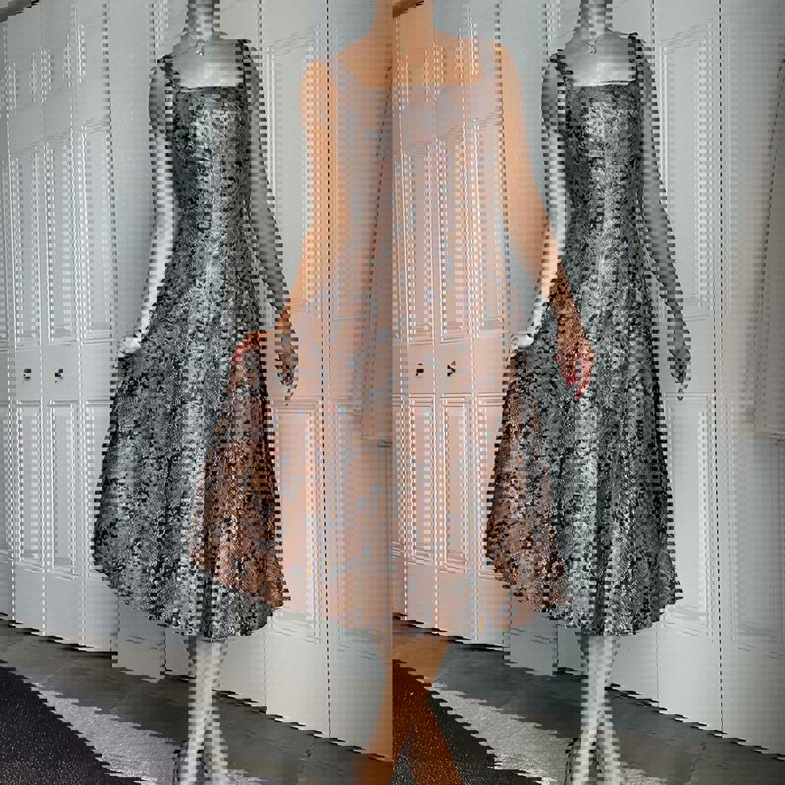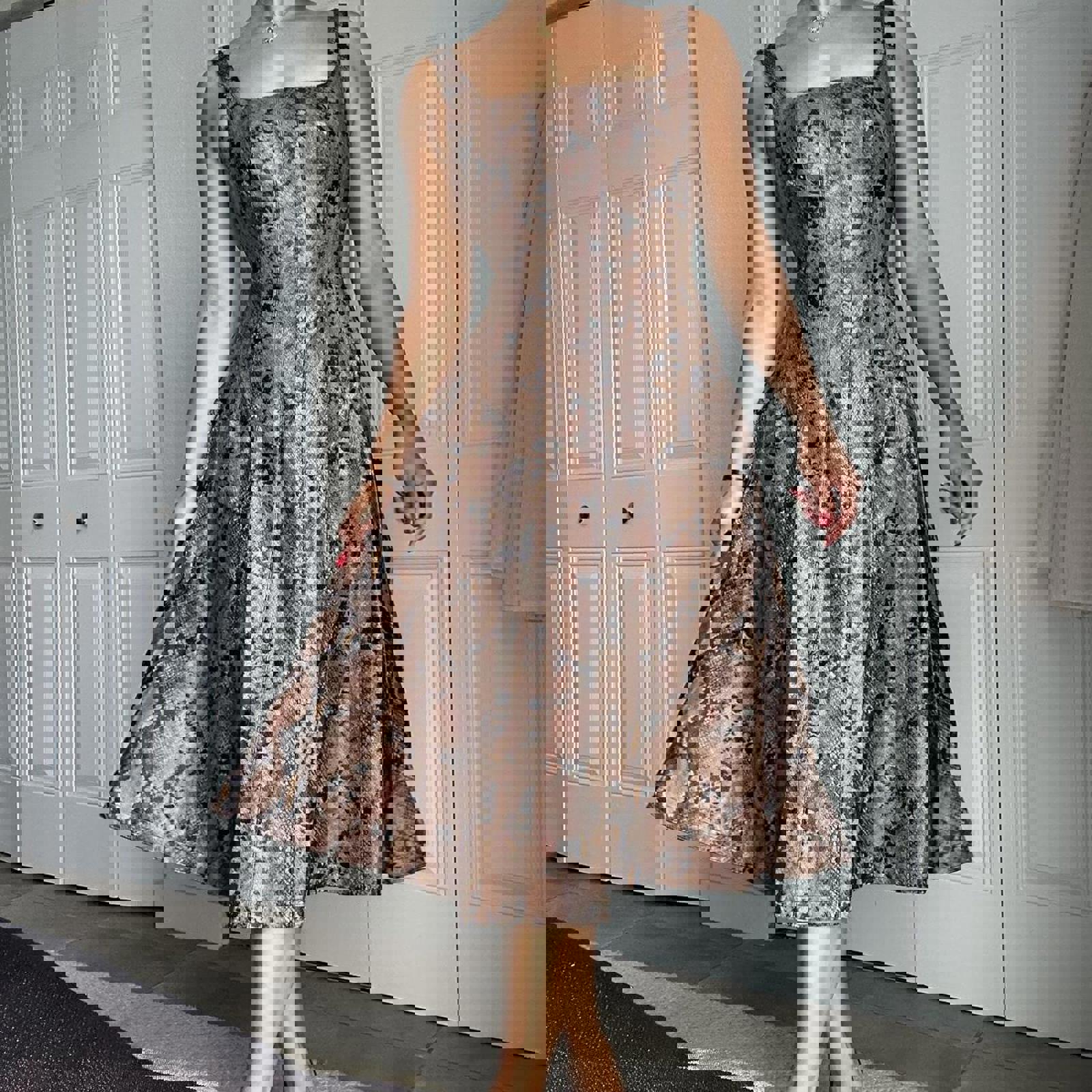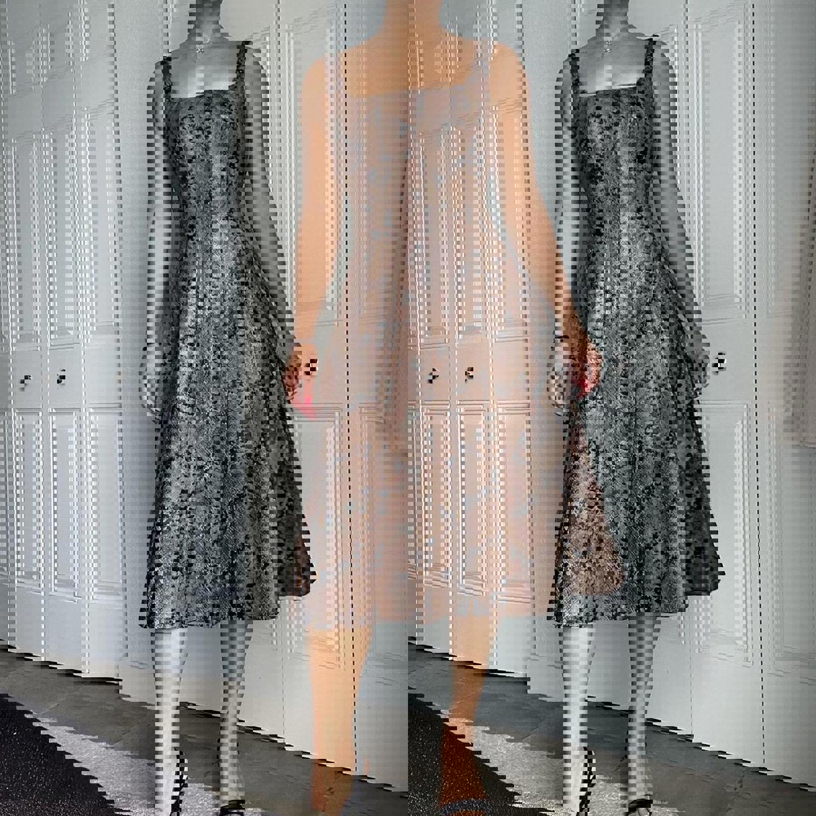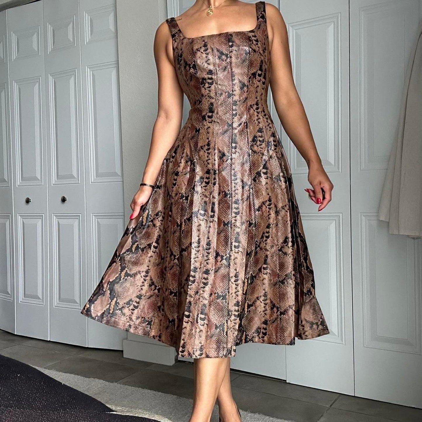 622. 7 for All Mankind snake skin dress in a size extra small. Tags are still attached in absolutely perfect condition. I couldn't zip the back because I couldn't do it myself. However, it does fit a small if you want it to fit tighter. Measurements laying flat are below: