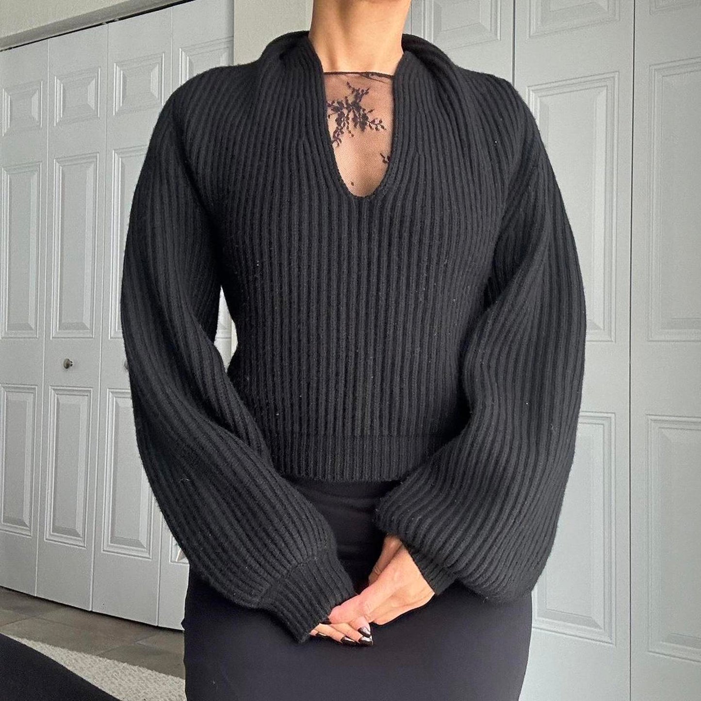 803. Alexander Wang high-neck sweater in absolutely perfect condition. It's like a size small. I don't have a size tag on the sweater. Has beautiful neck detailing and bubble sleeves. Measurements are listed below: