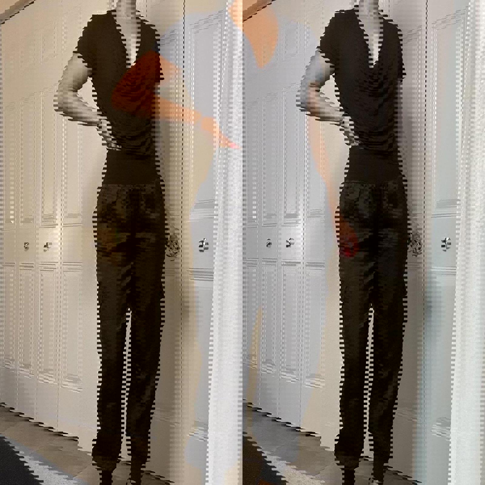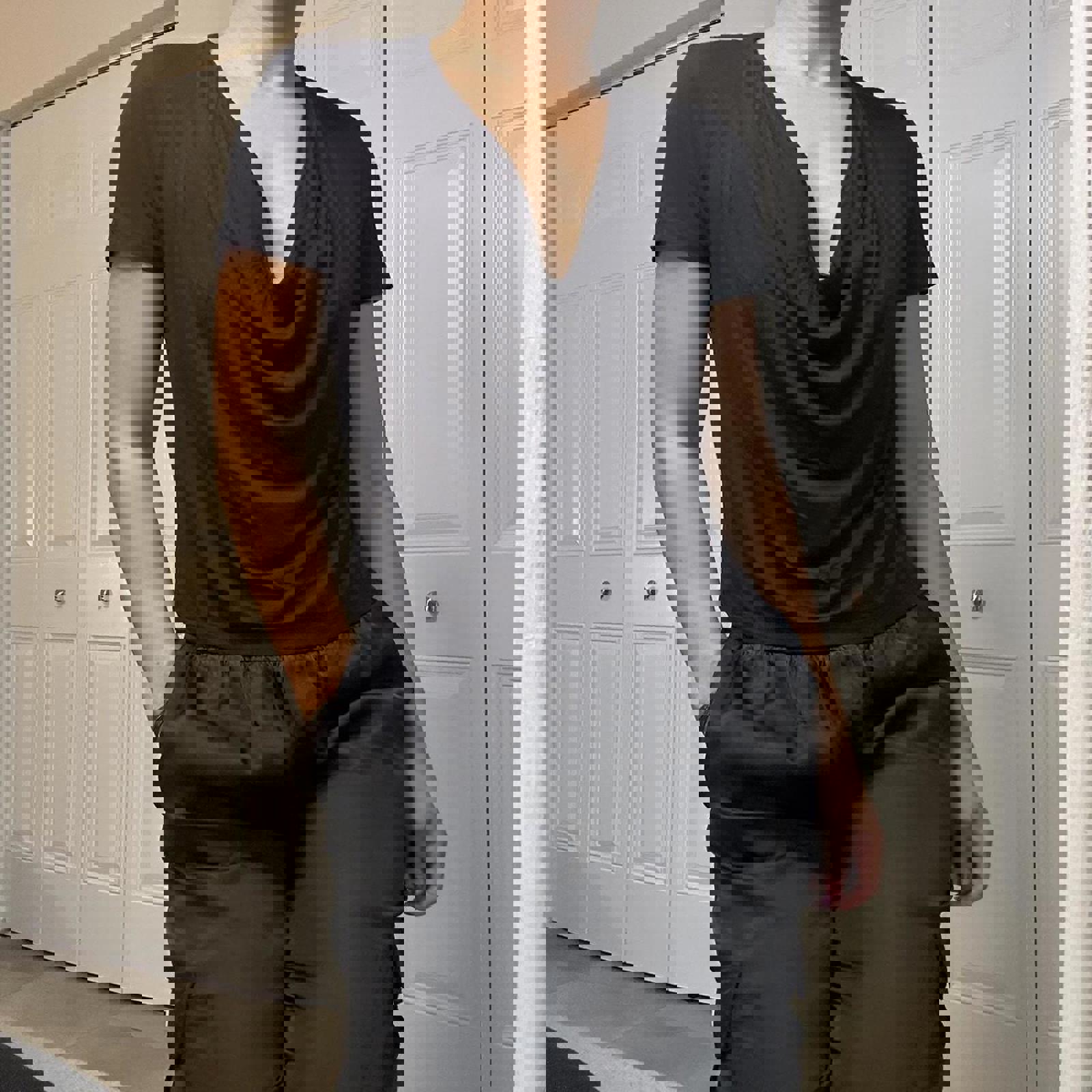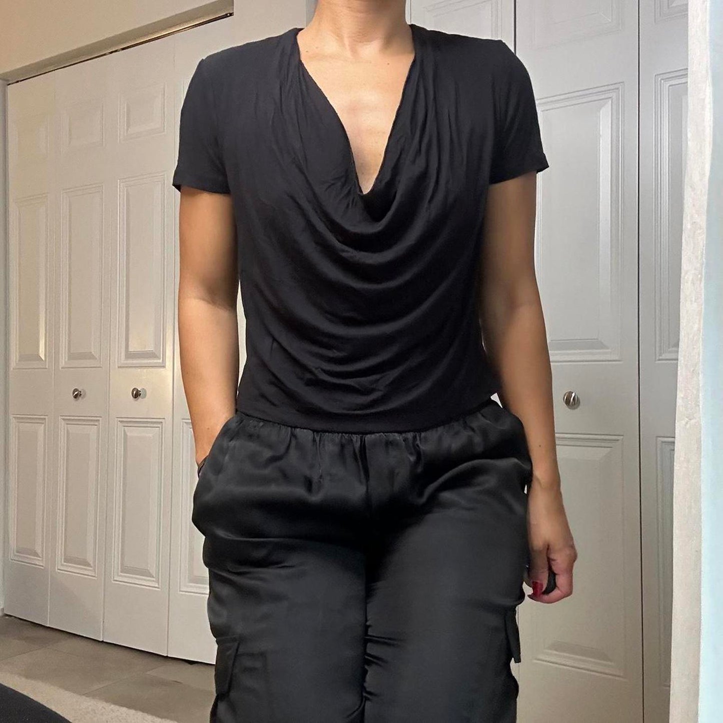 720. Alice and Olivia jeans cowl-neck top in perfect condition, size small.