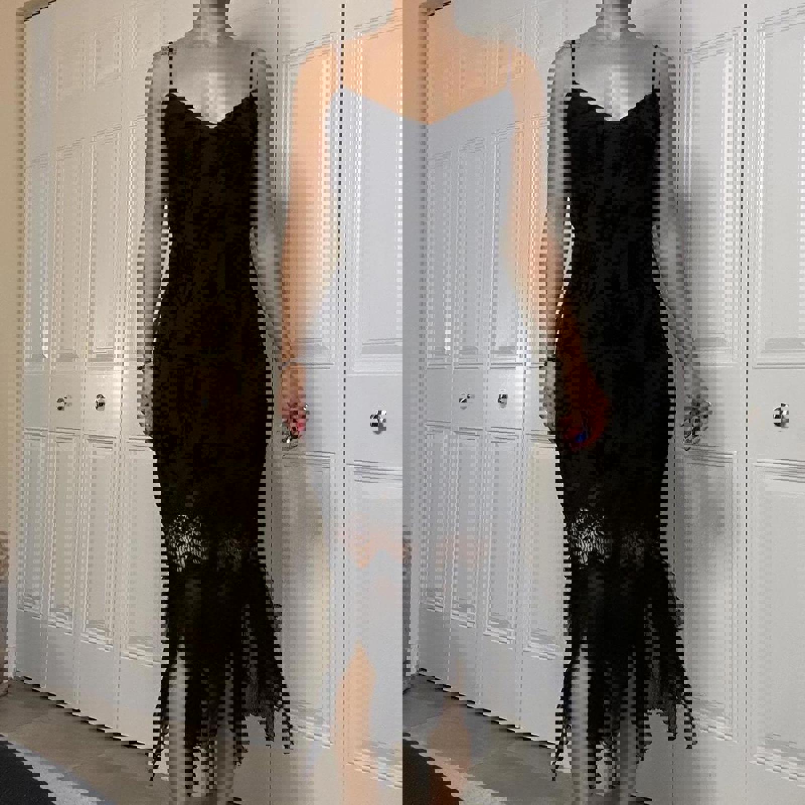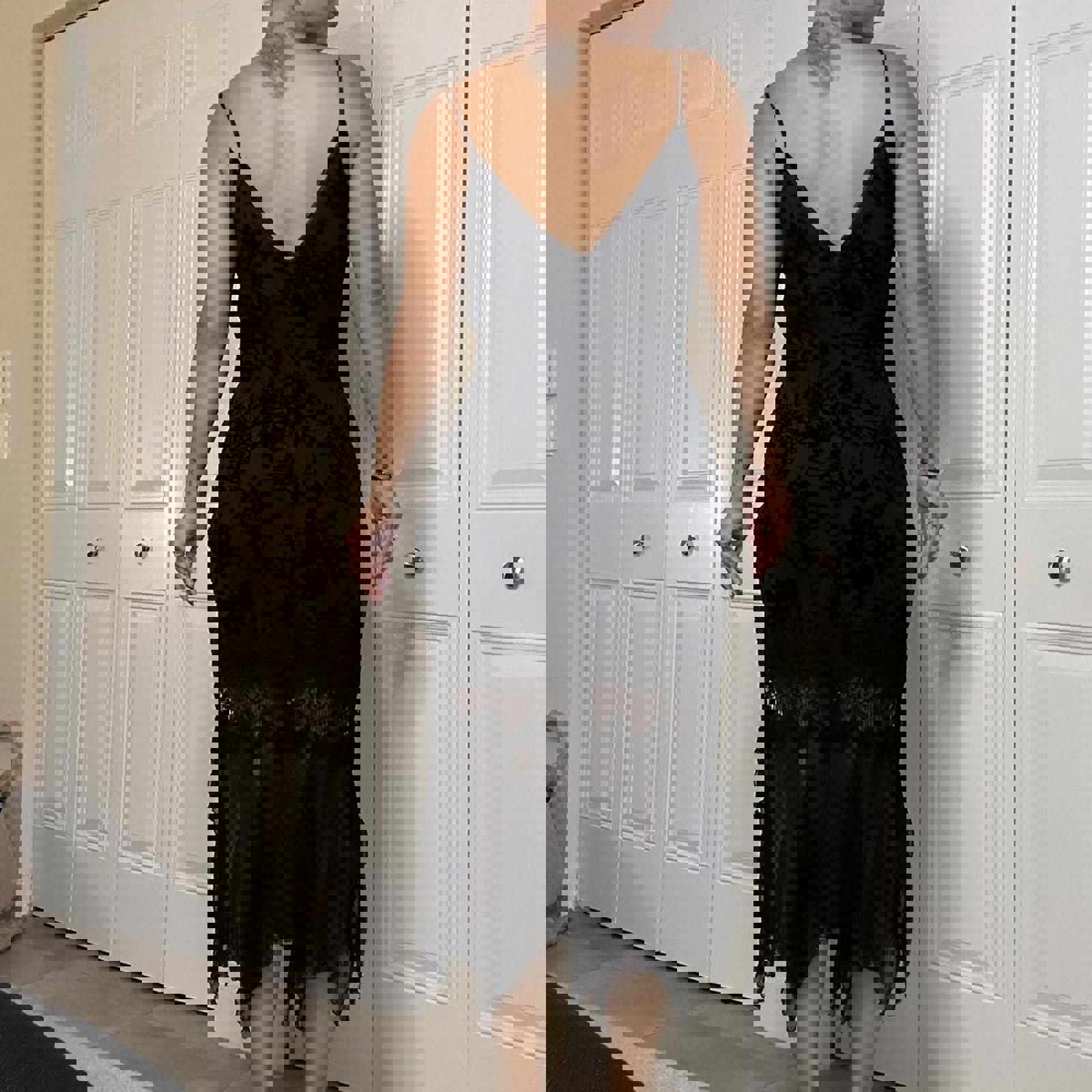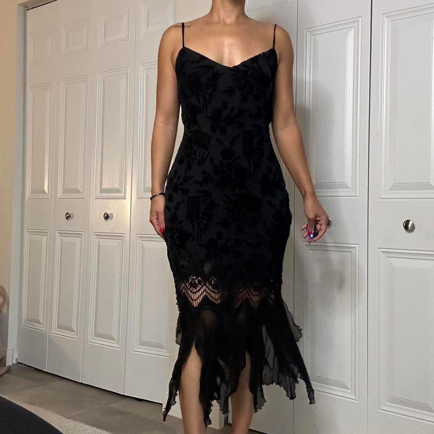 black silk velvet, floral midi, lace trim, asymmetrical hem, vintage dress, slip style, evening wear, elegant, seductive, luxurious