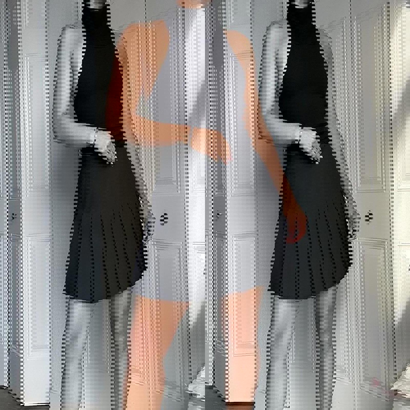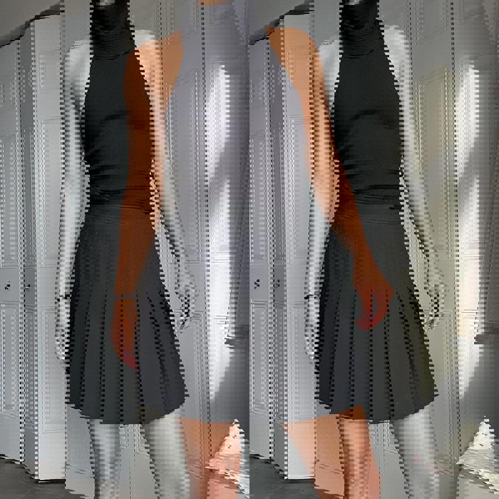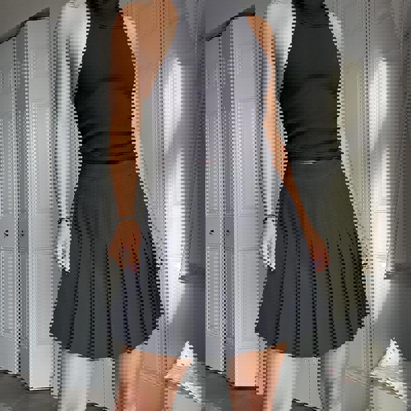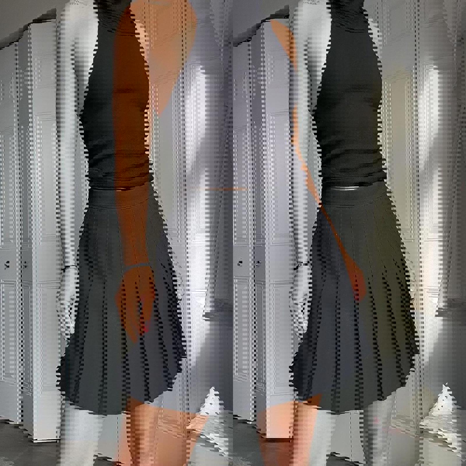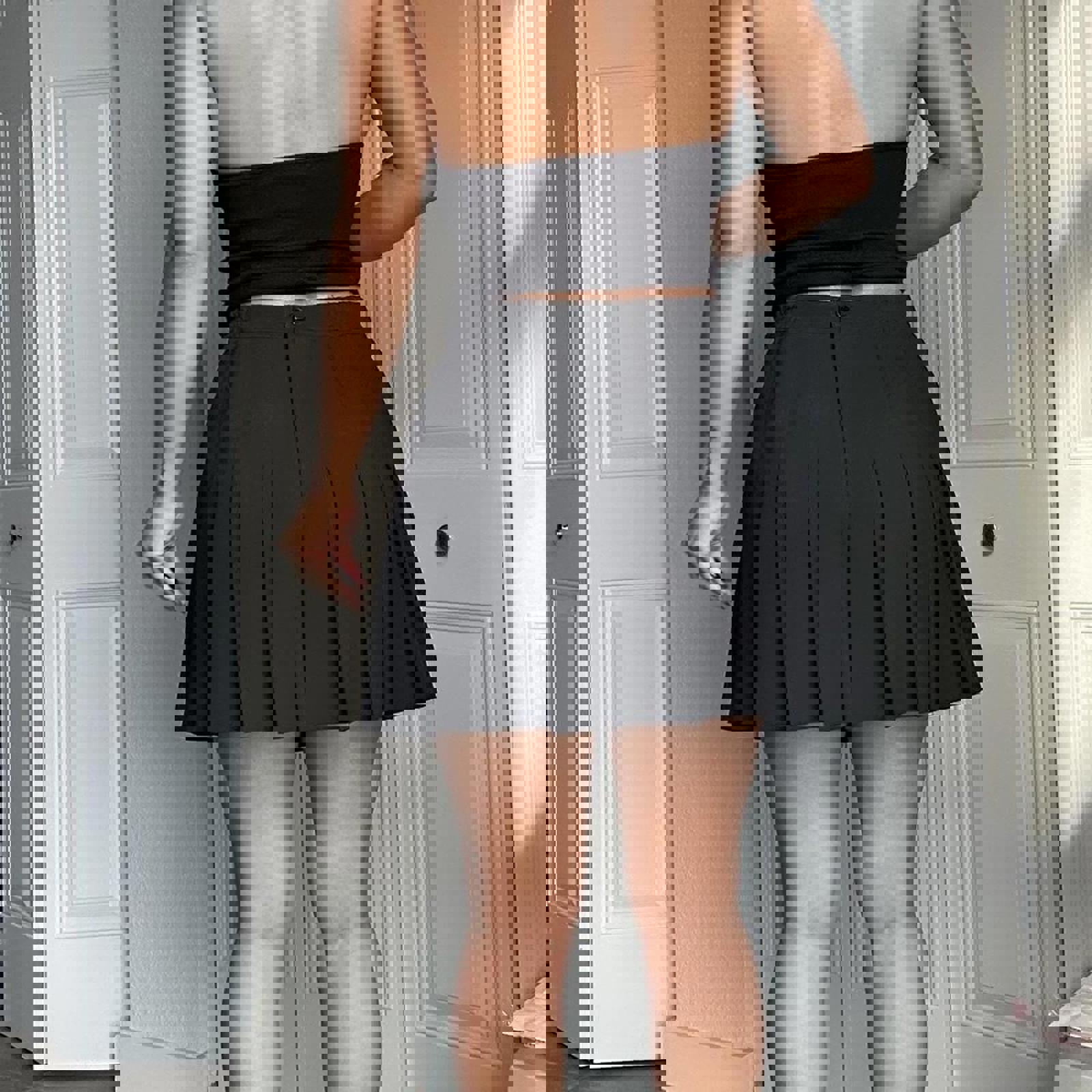 430. American vintage black pleated miniskirt. No brand, size tags says 14 (vintage 14) fits like a small