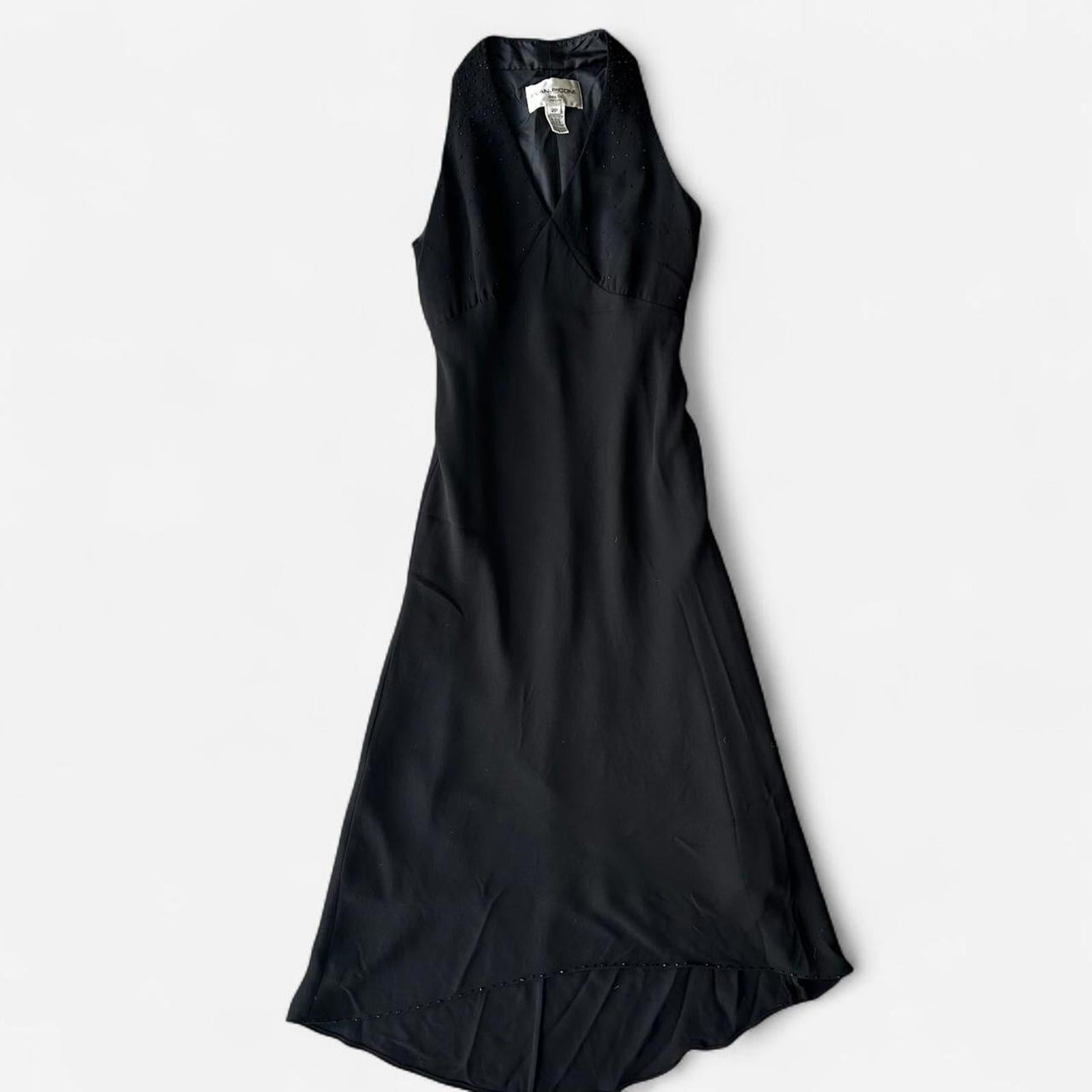 beaded maxi dress, vintage black dress, petite evening gown, formal occasion, beaded detail, elegant maxi, classic black dress, vintage evening wear, petite size, floor-length dress