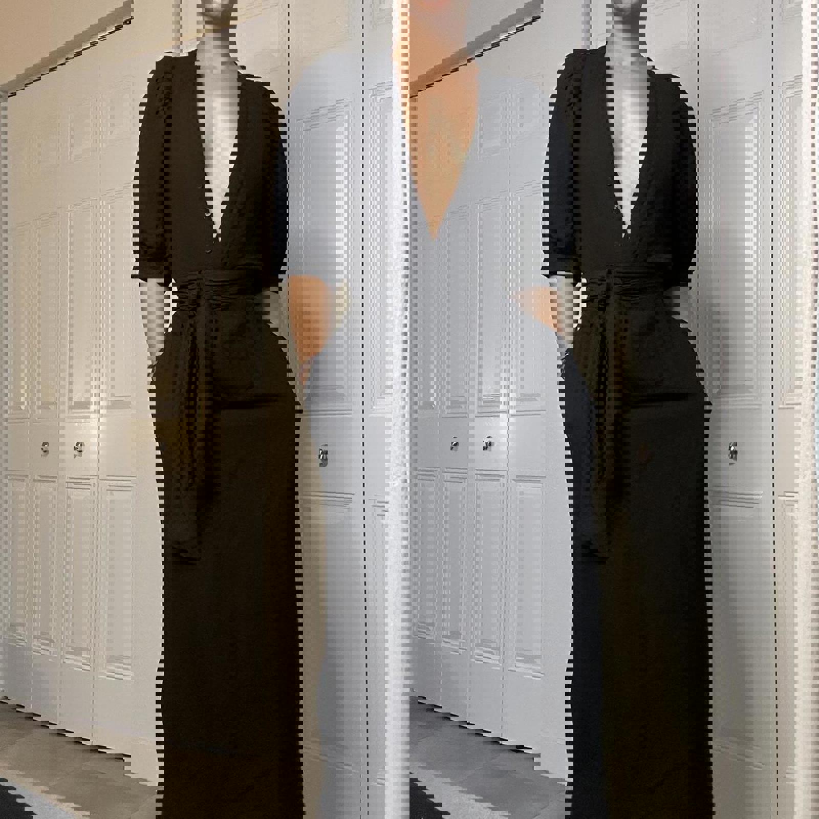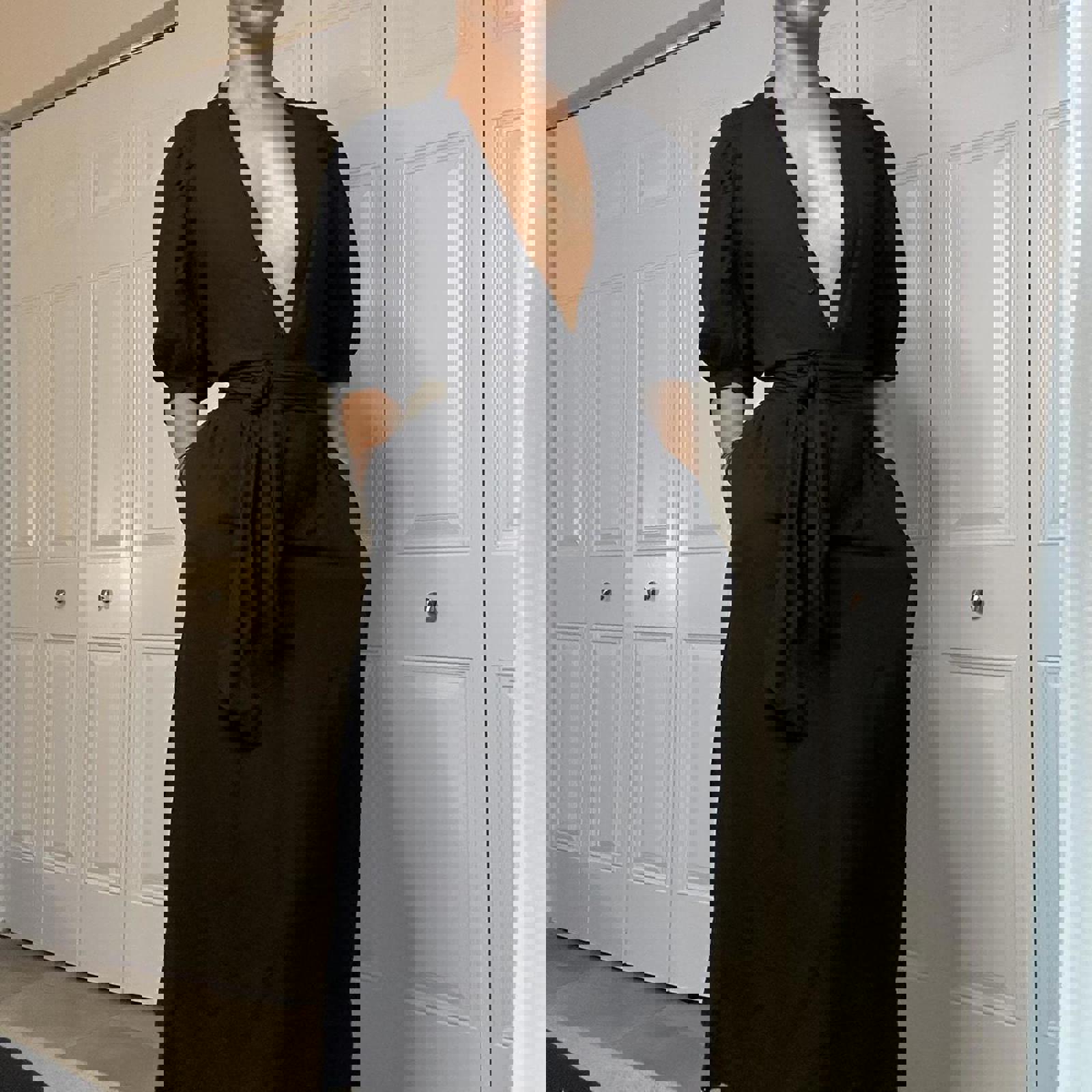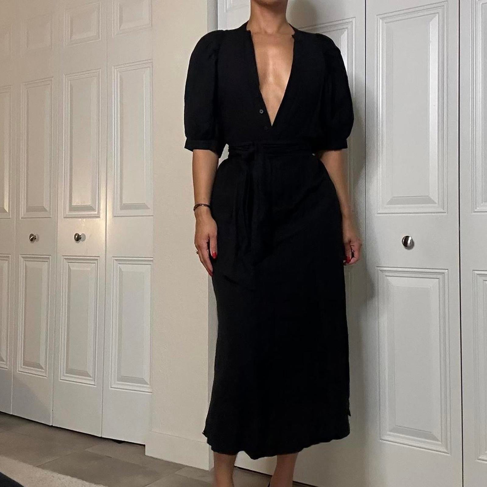 705. Ann Taylor Linen and Cotton Blend Dress in a size extra small has puff sleeves and wrap belt, which cinches the waist. It is an extra small, but it does fit larger without the wrap. Measurements listed below.