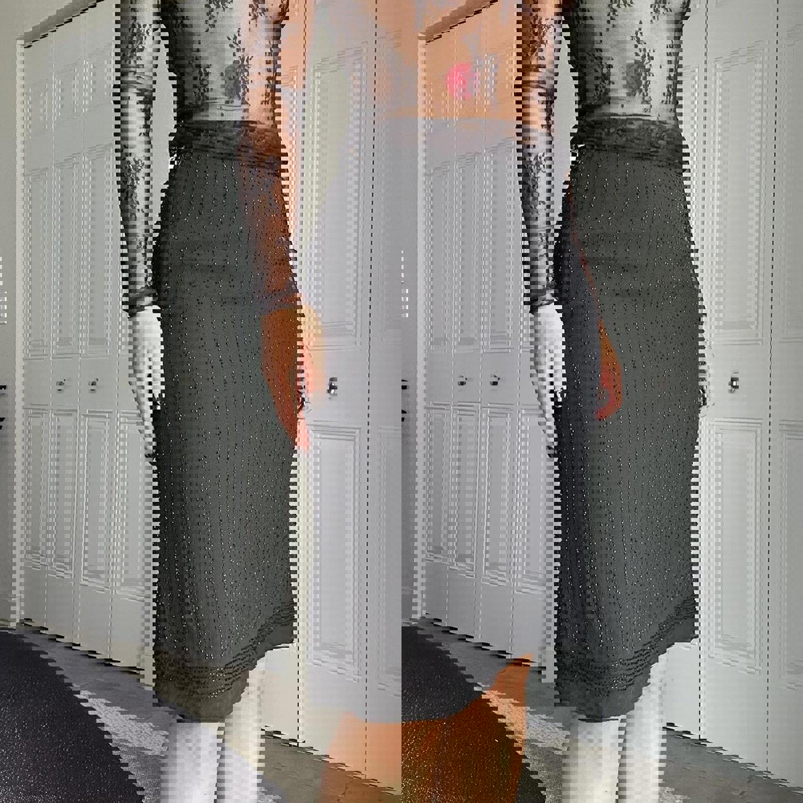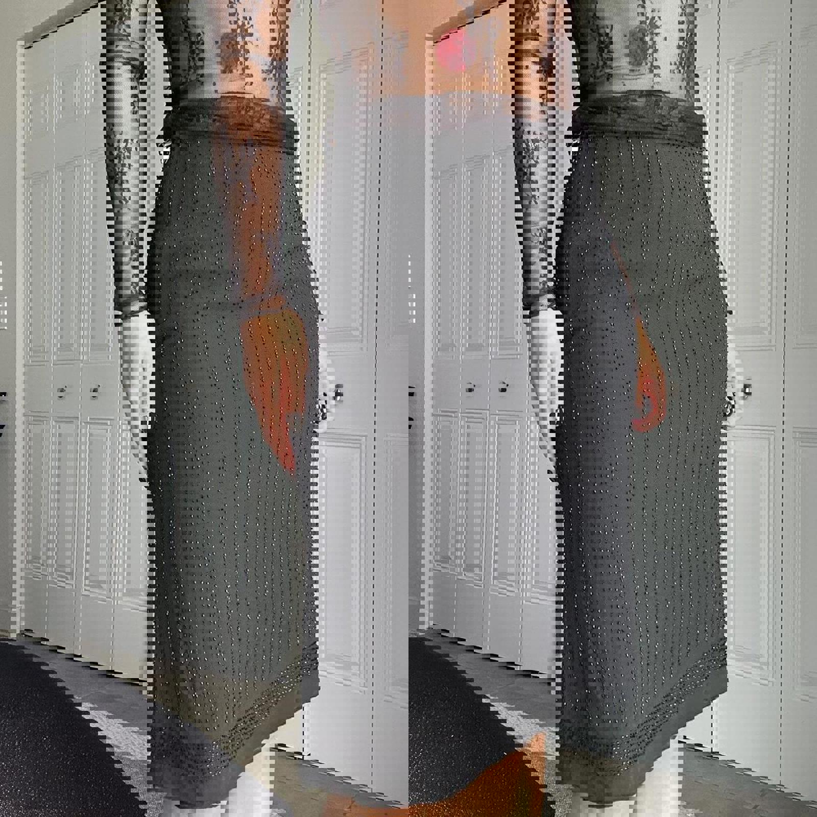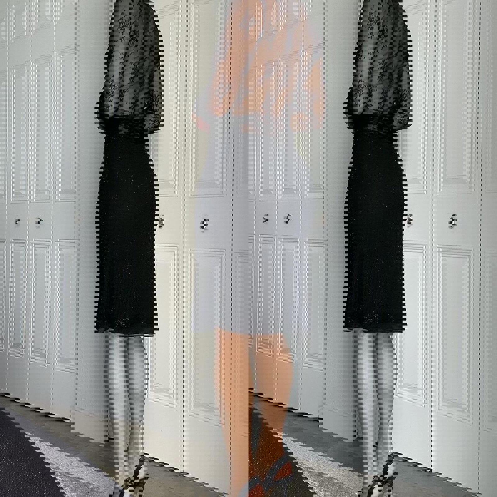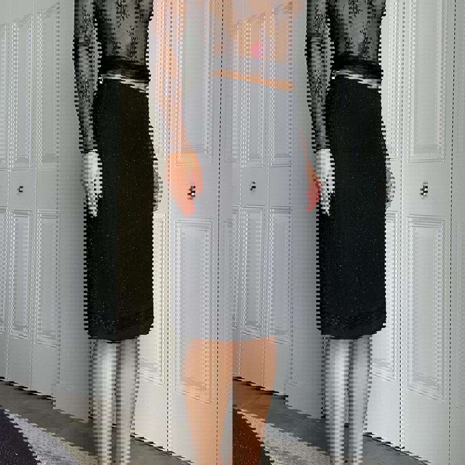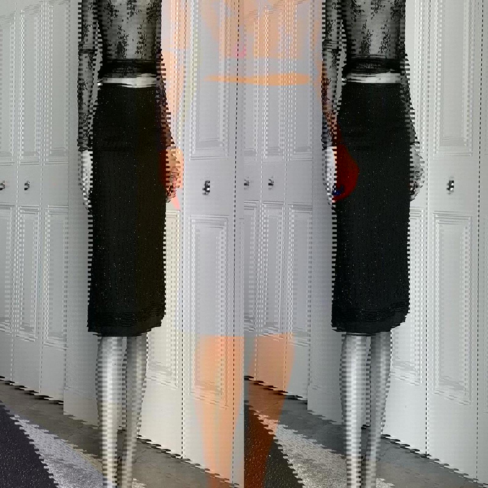silk beaded, vintage skirt, 100% silk, beaded detail, pencil length, elegant style, black textured, classic silhouette, retro fashion, formal wear