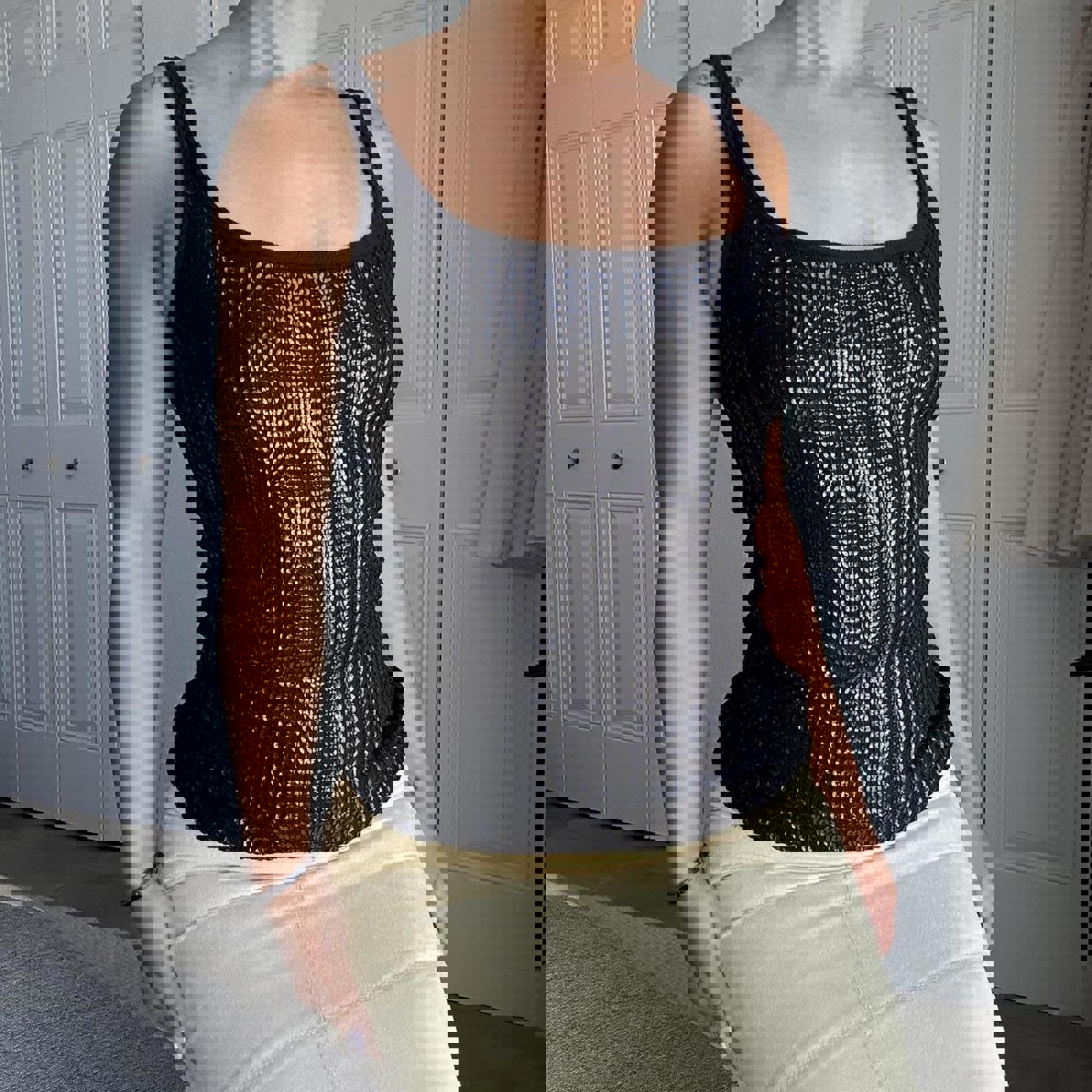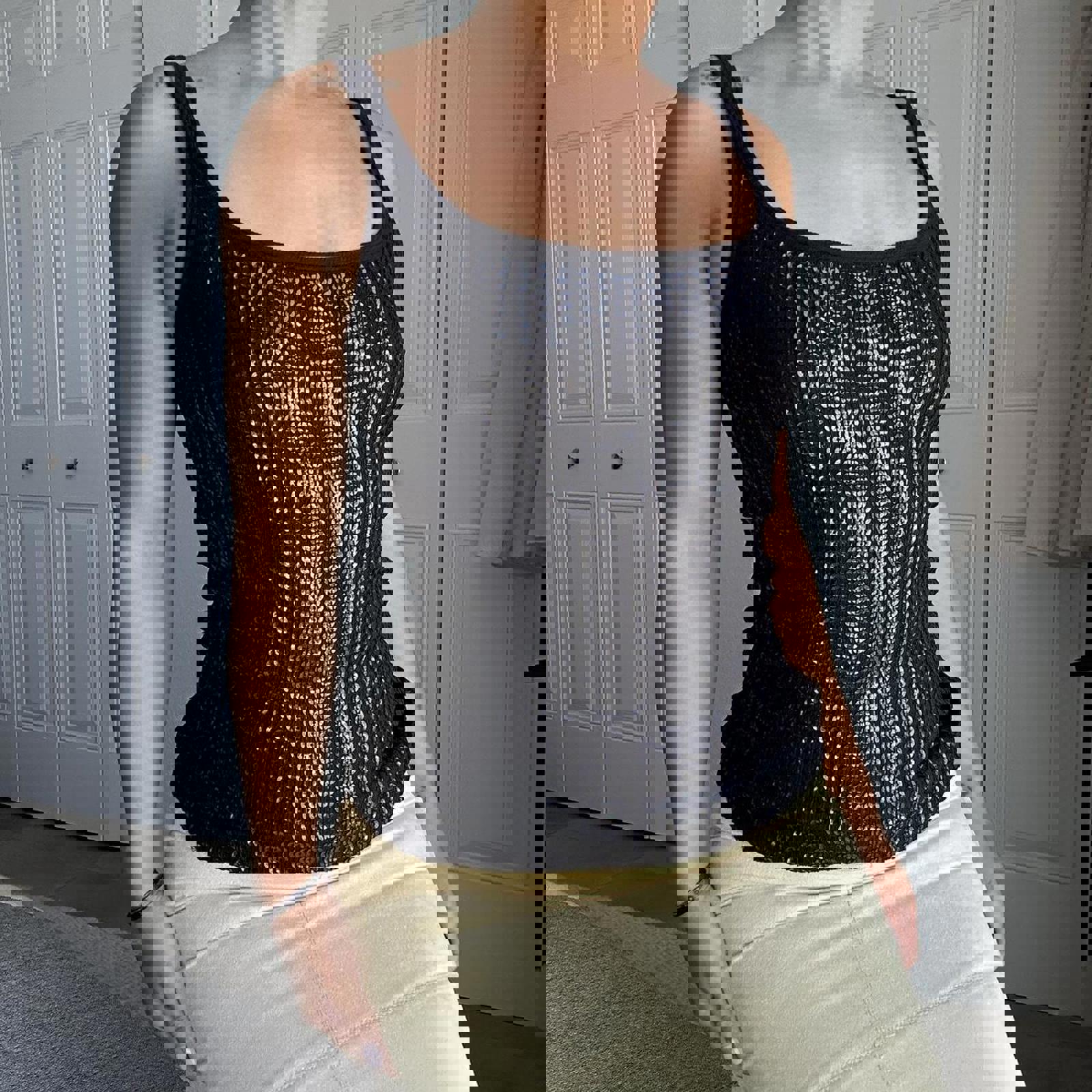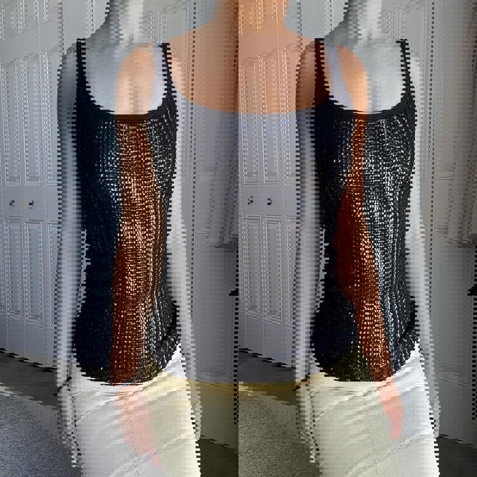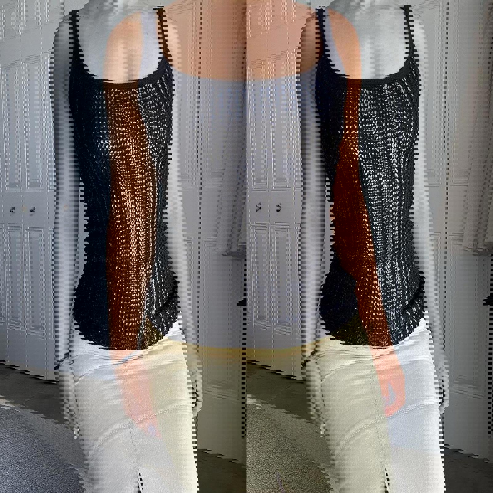 381. Armani Exchange black sequin tank top with knit back. Scoop neck, perfect condition