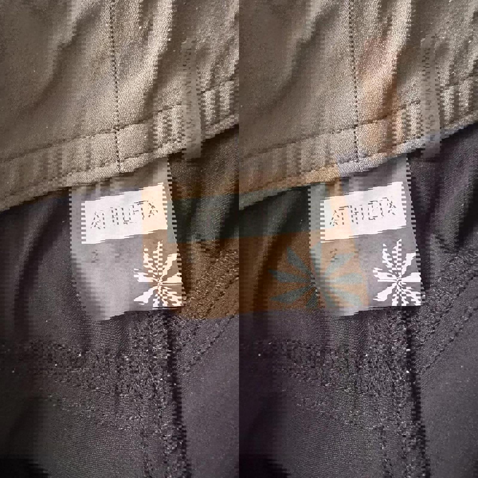 677. Athleta capri shorts with adjustable band at the bottom. These are in perfect condition, very, very lightweight which is really nice. They also have pockets. They are labeled a size 2. However, measurements laying flat are: