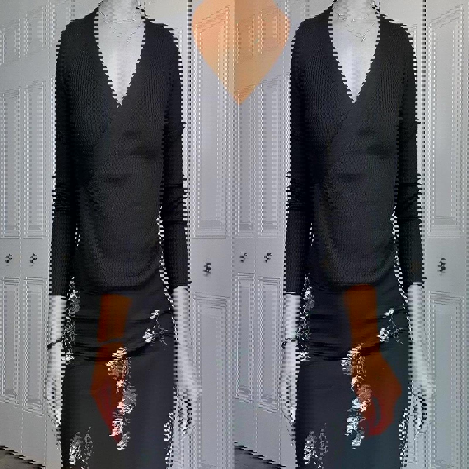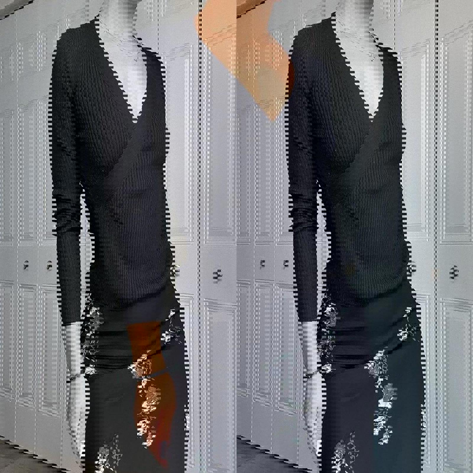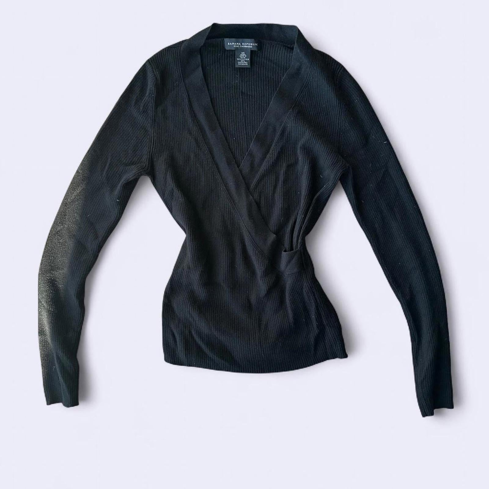 522. Banana Republic black silk cashmere wrap top #cashmereknit