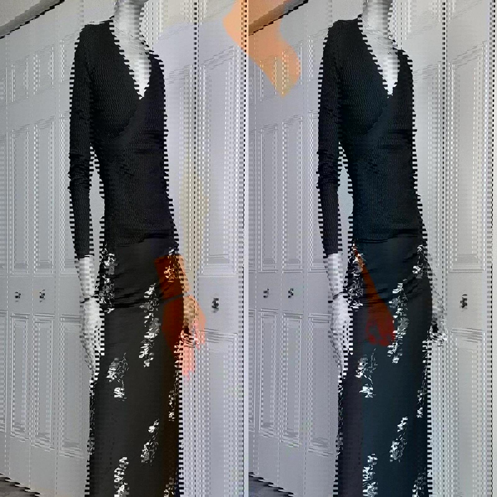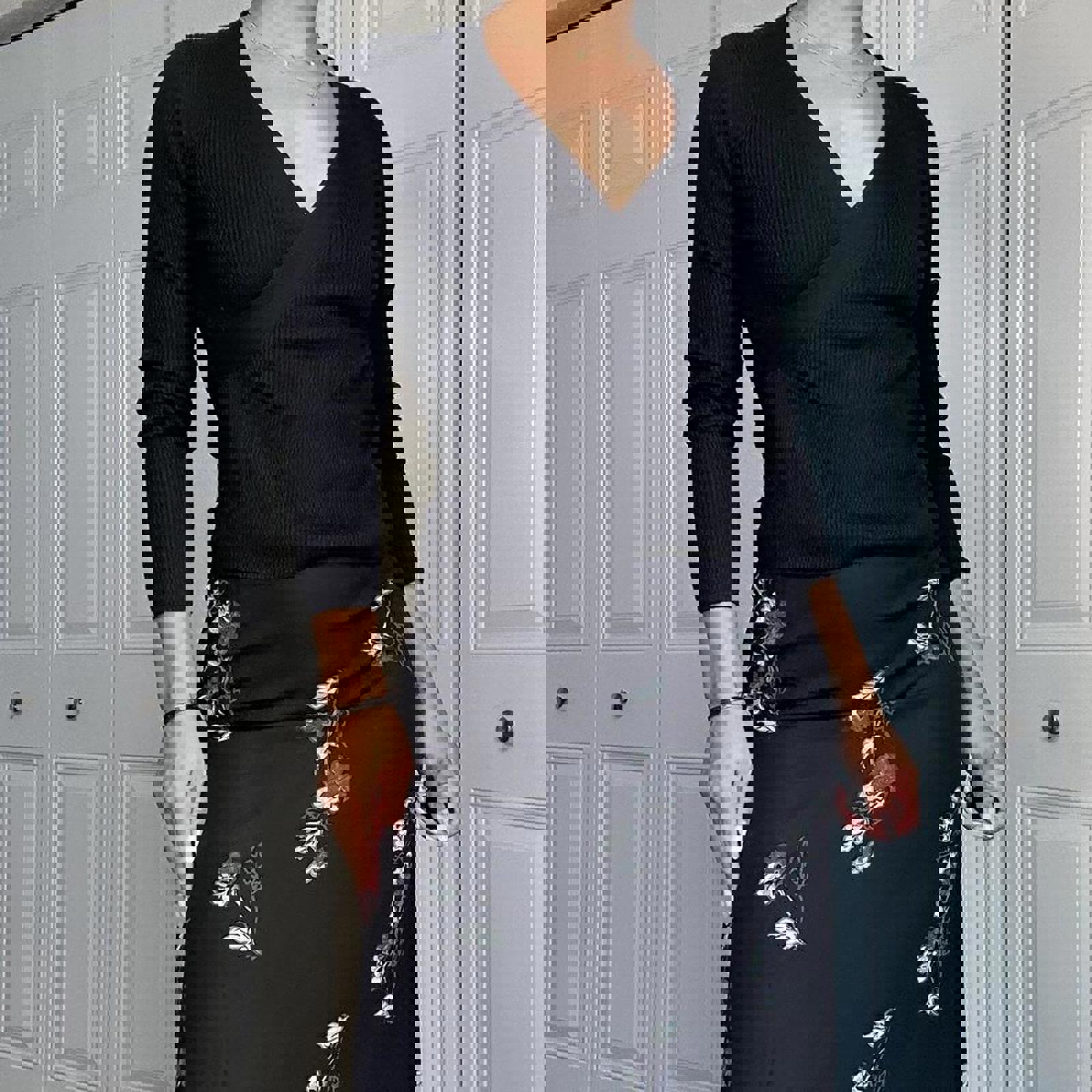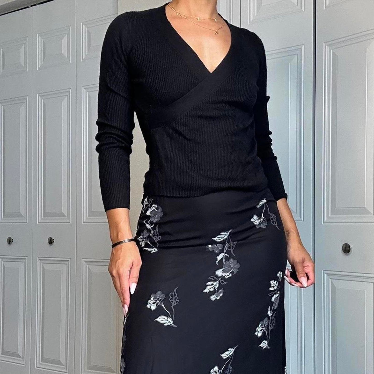 522. Banana Republic black silk cashmere wrap top #cashmereknit