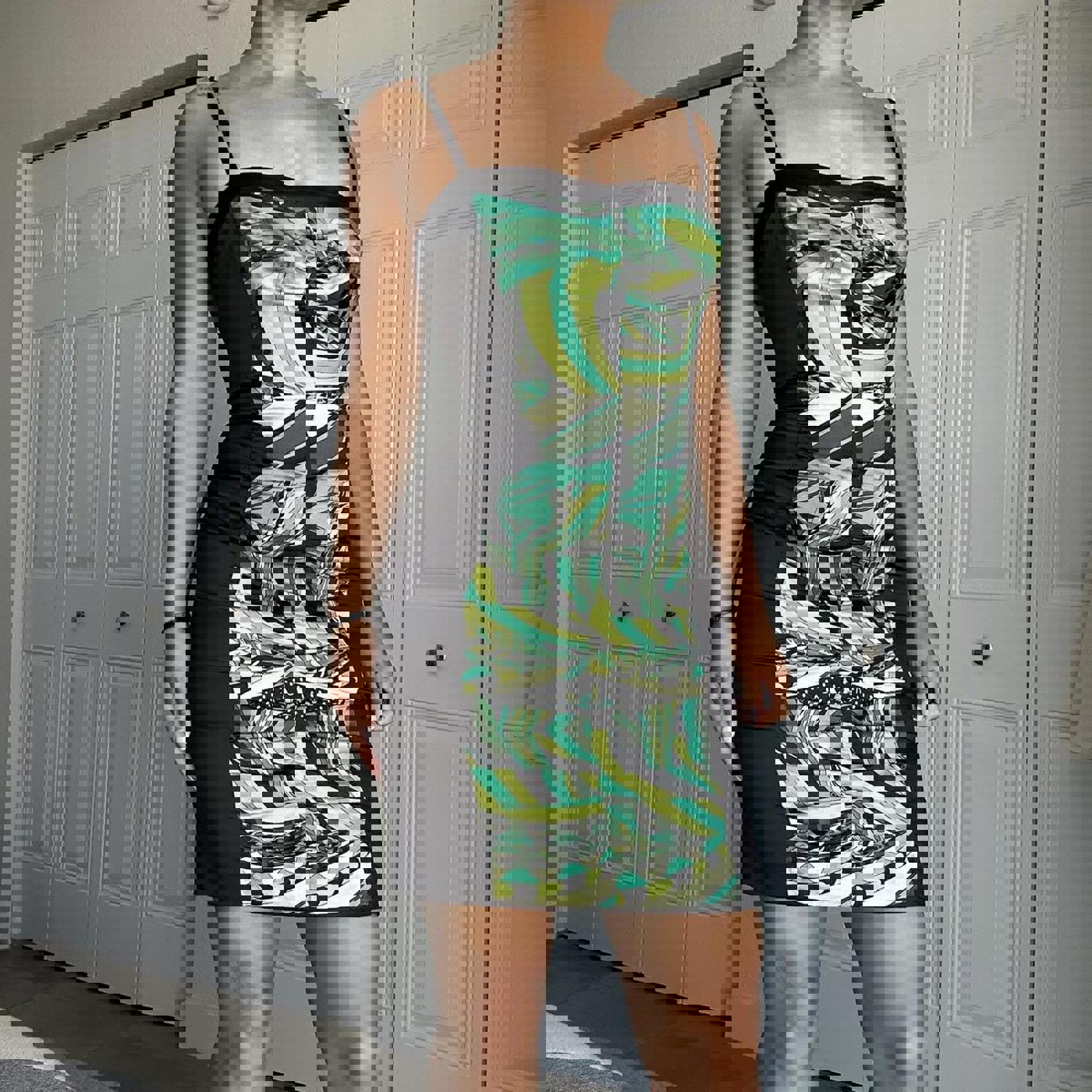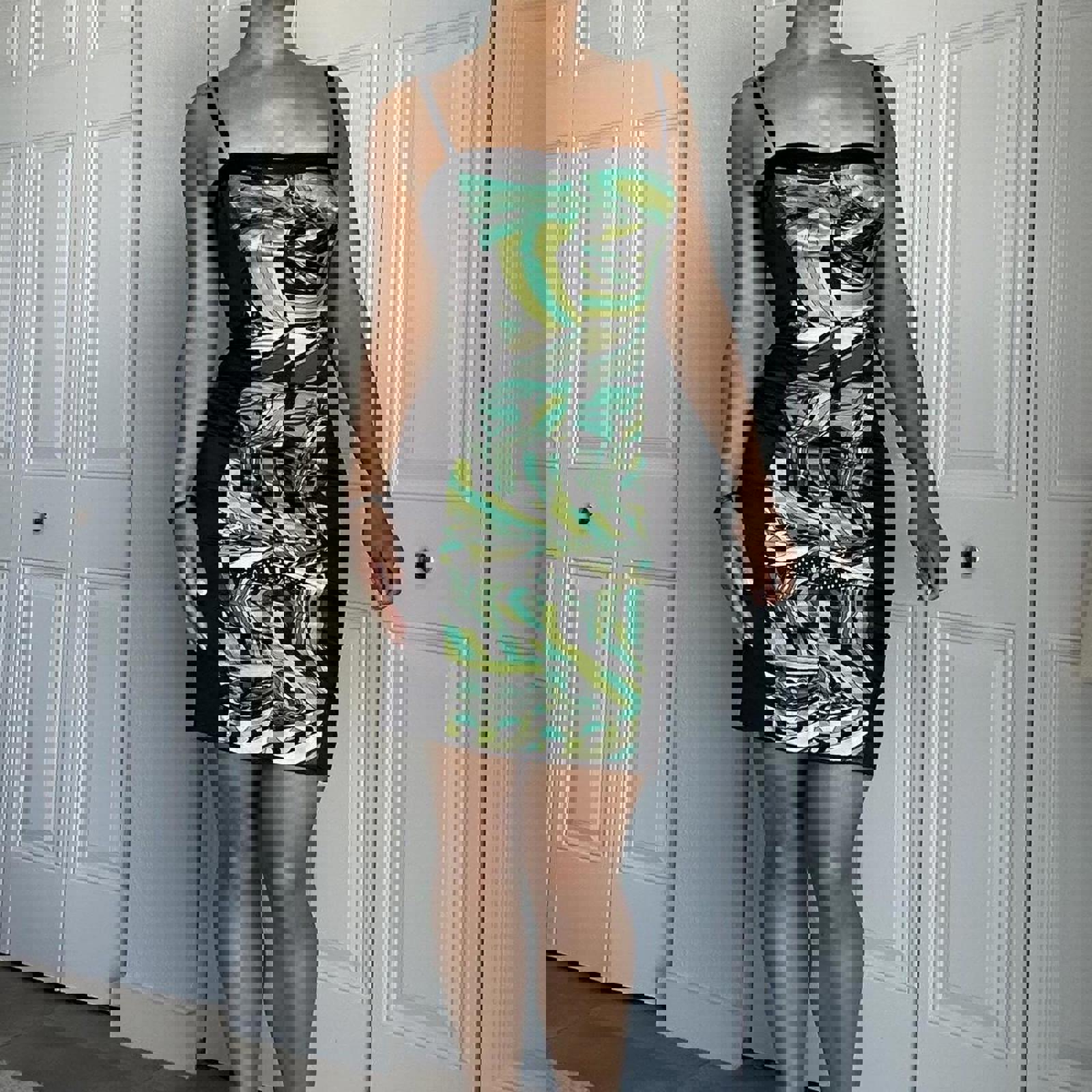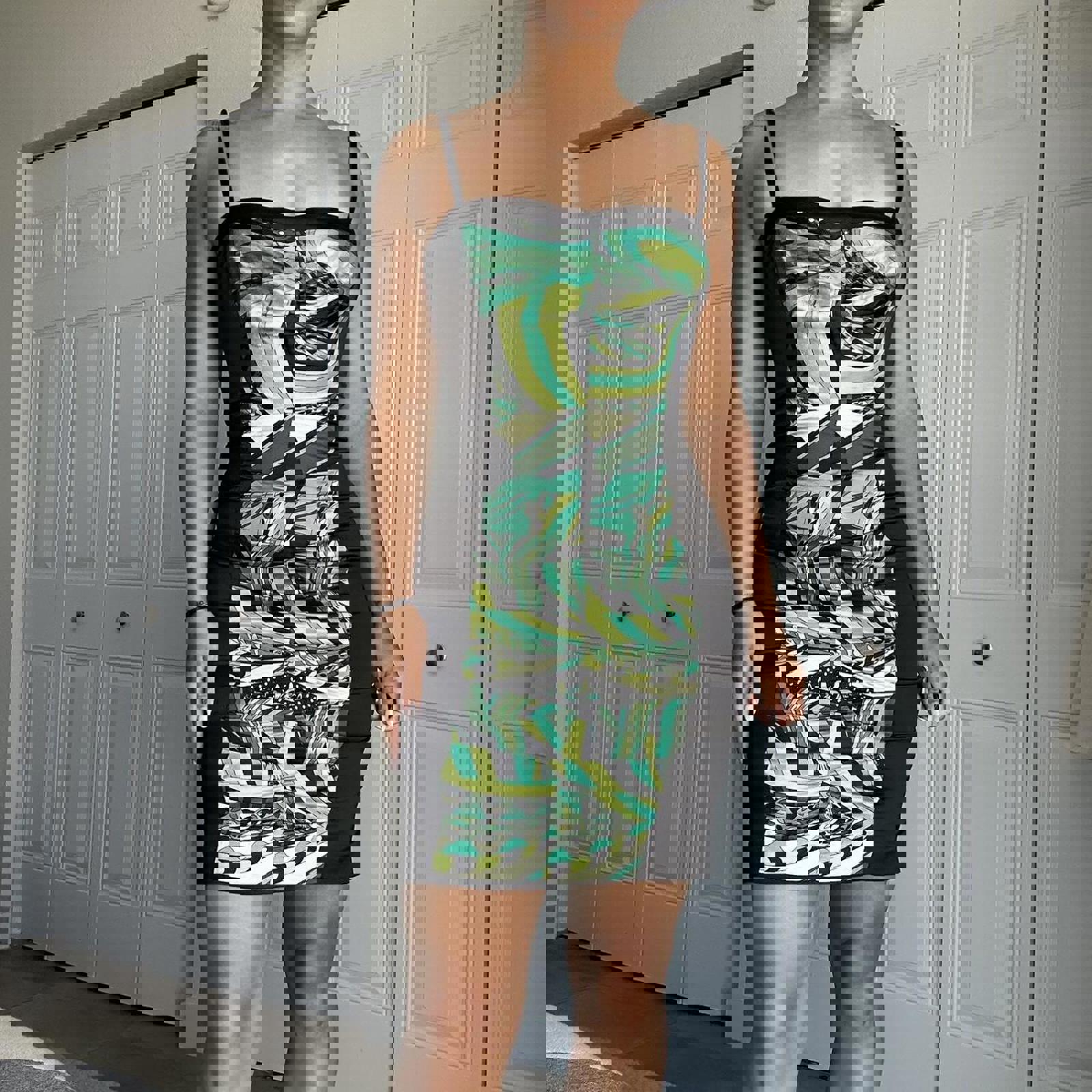 375. Bebe black and green print dress. Reminds me of Pucci! Perfect condition, adjustable straps.