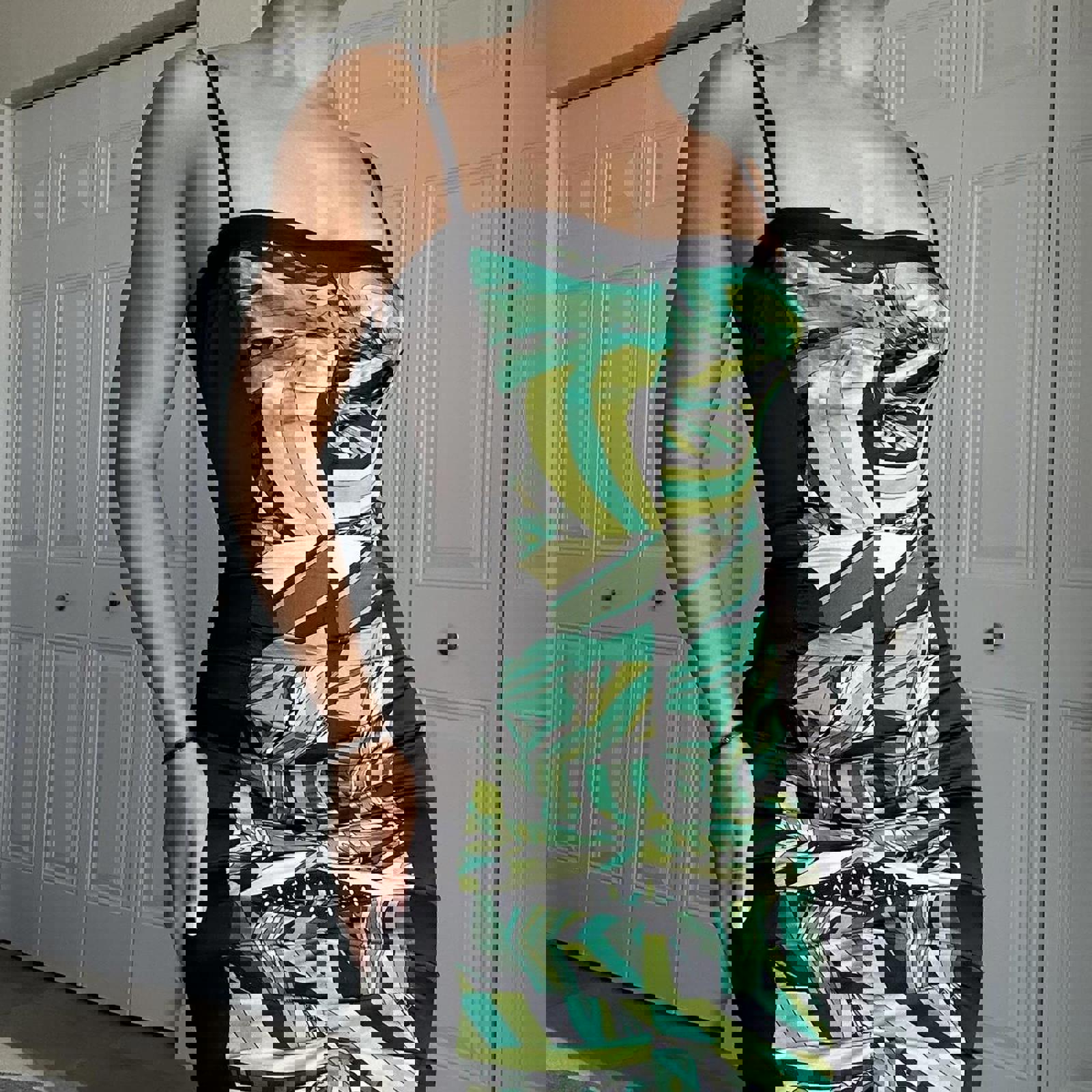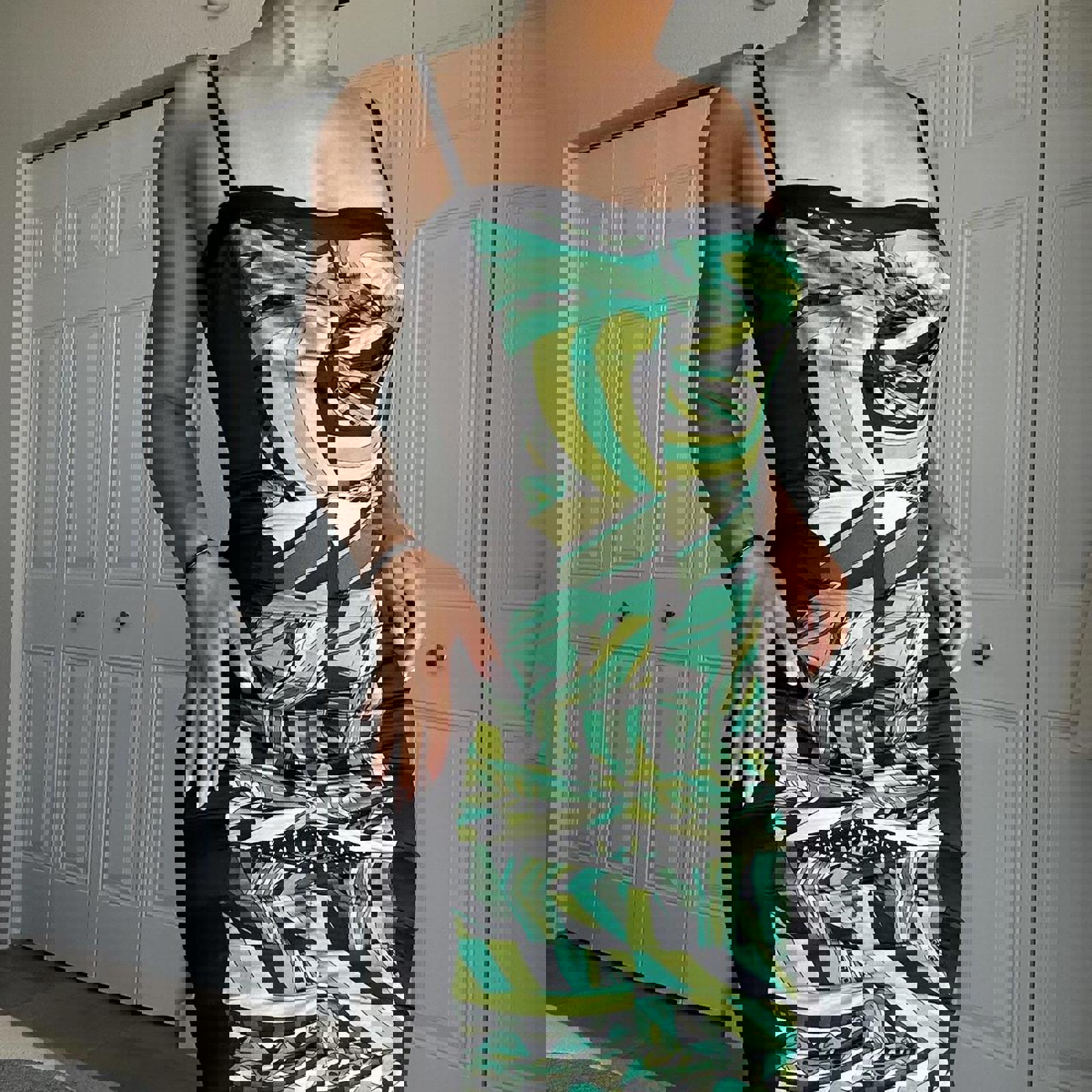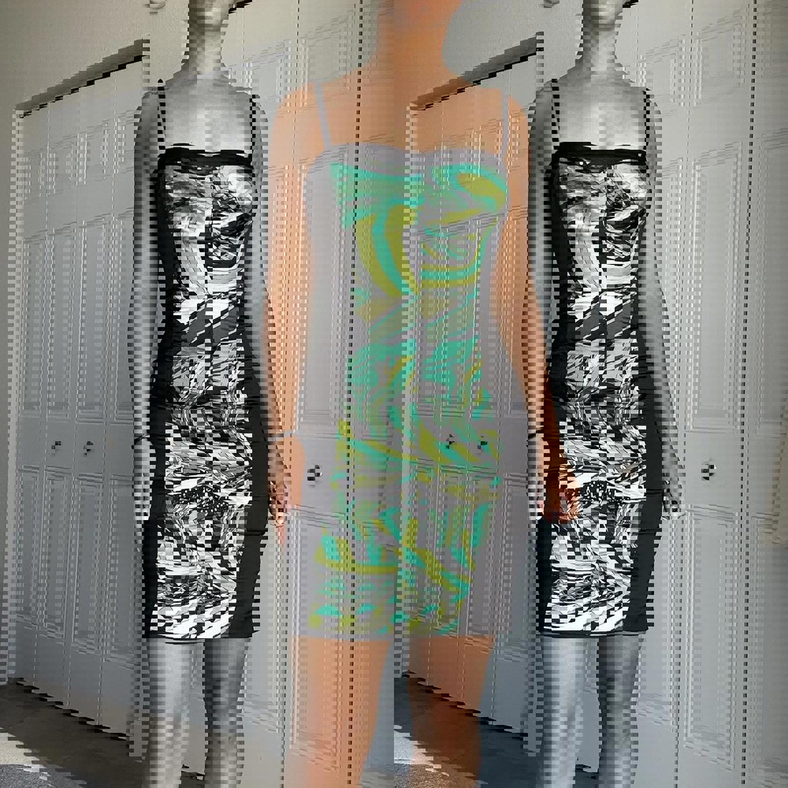 375. Bebe black and green print dress. Reminds me of Pucci! Perfect condition, adjustable straps.