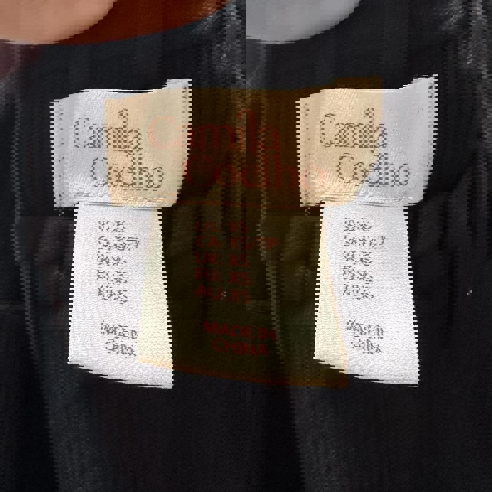 684. Camila Coelho black midi dress. This is labeled a size extra small, but it could also fit a small as shown. It's very stretchy material and has a really unique neckline.