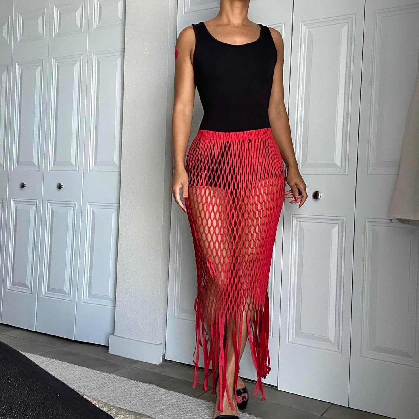 787. Kai Collective laser-cut red skirt in a size small. Perfect condition, only worn a few times. Measurements listed below: