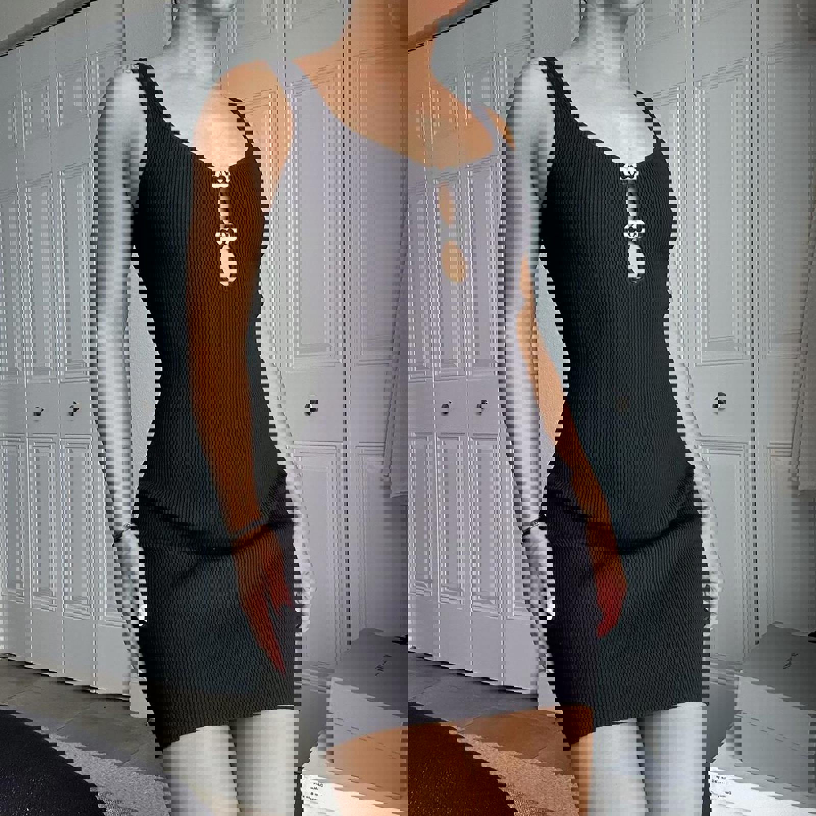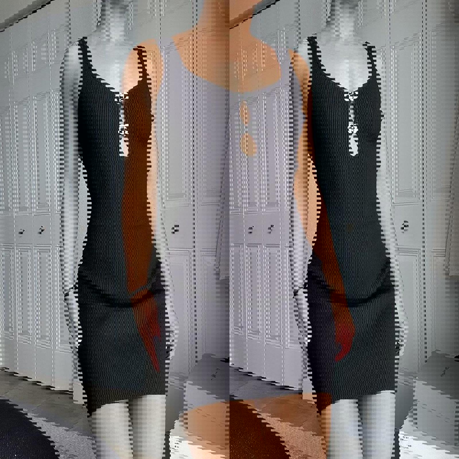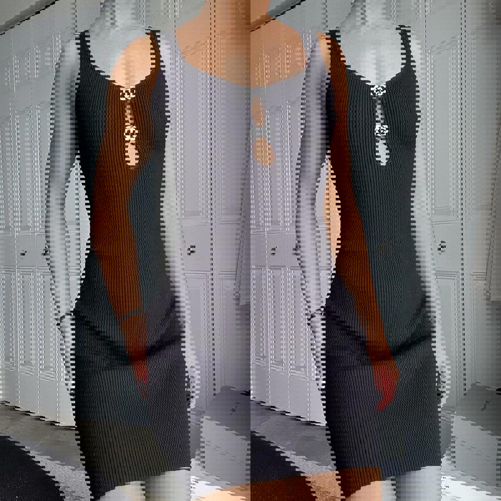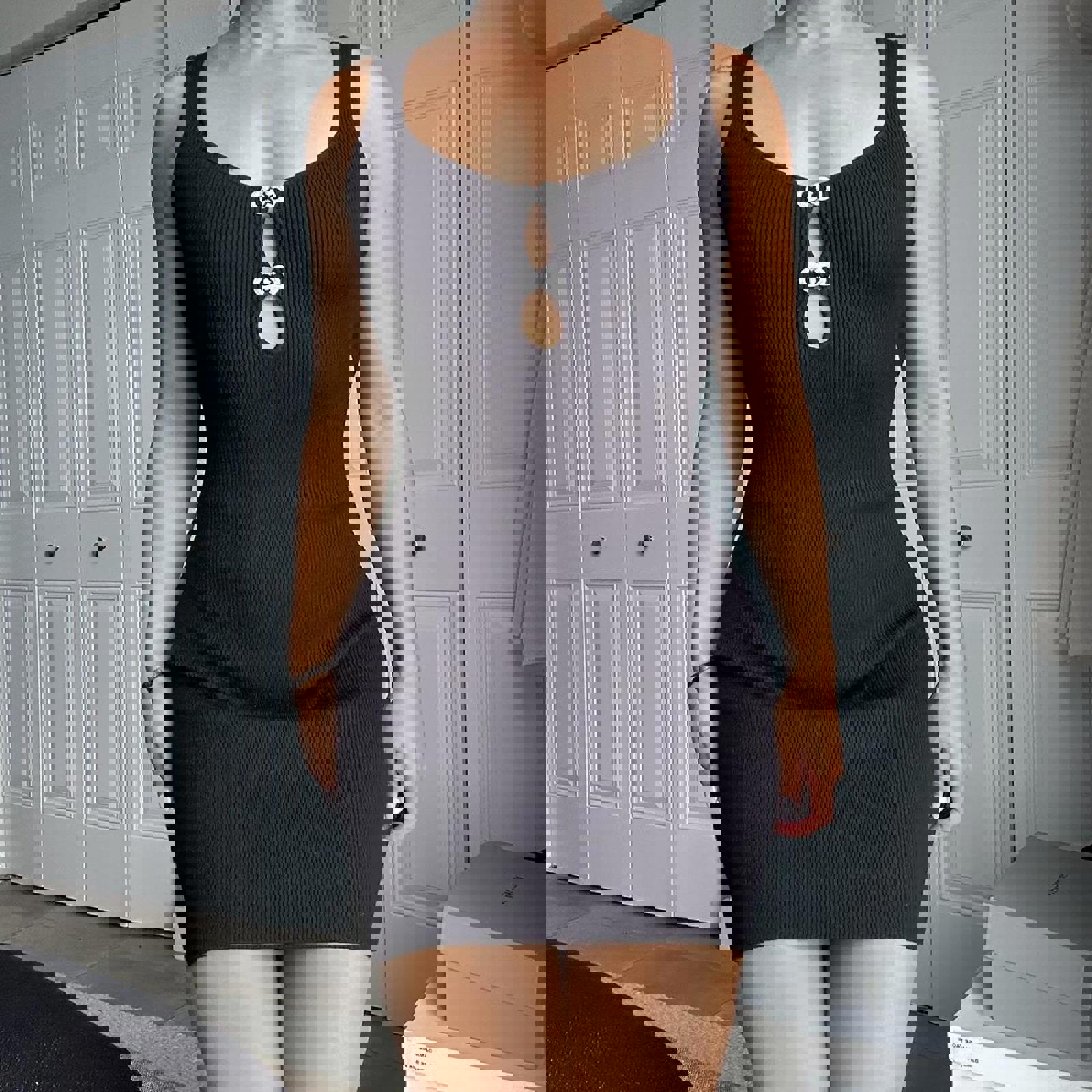 324. Christian Lacrox black mini dress with cutout detail. Perfect condition. Super stretch. Size XS fits like a small