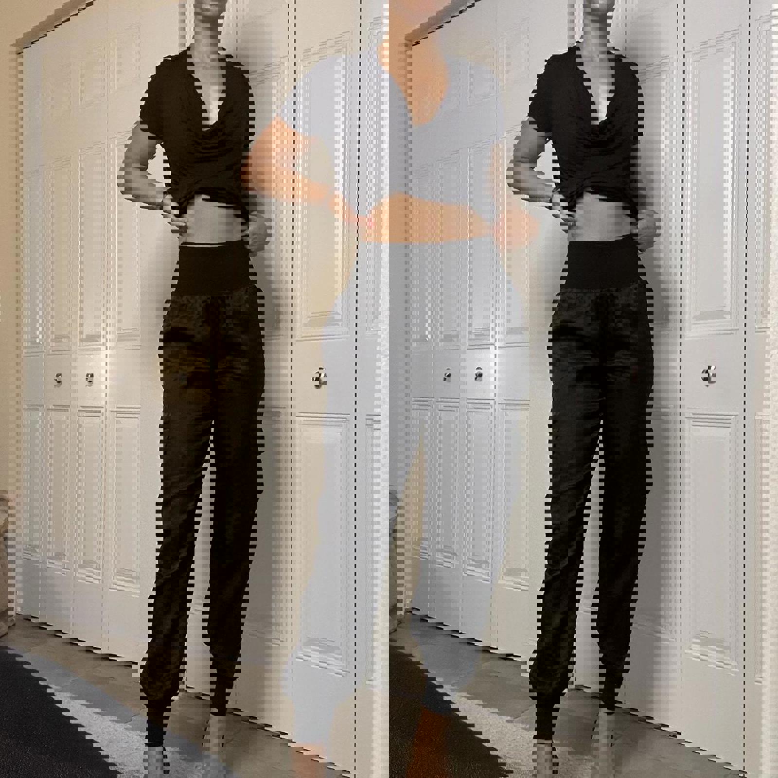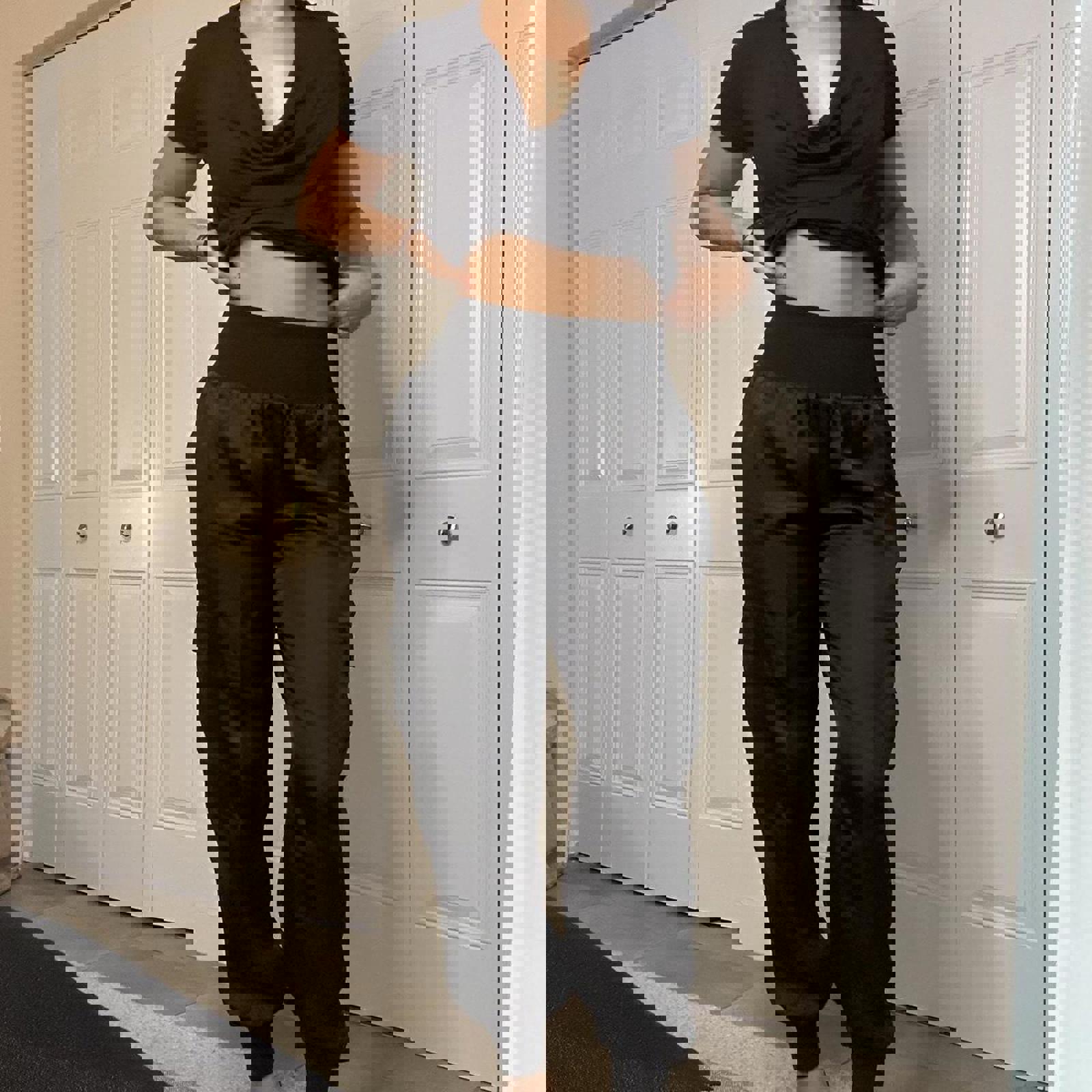 708. 5à7 cinq à sept black satin cargo pants in absolutely perfect condition. These are a size medium and they do fit as such, however measurements are below.