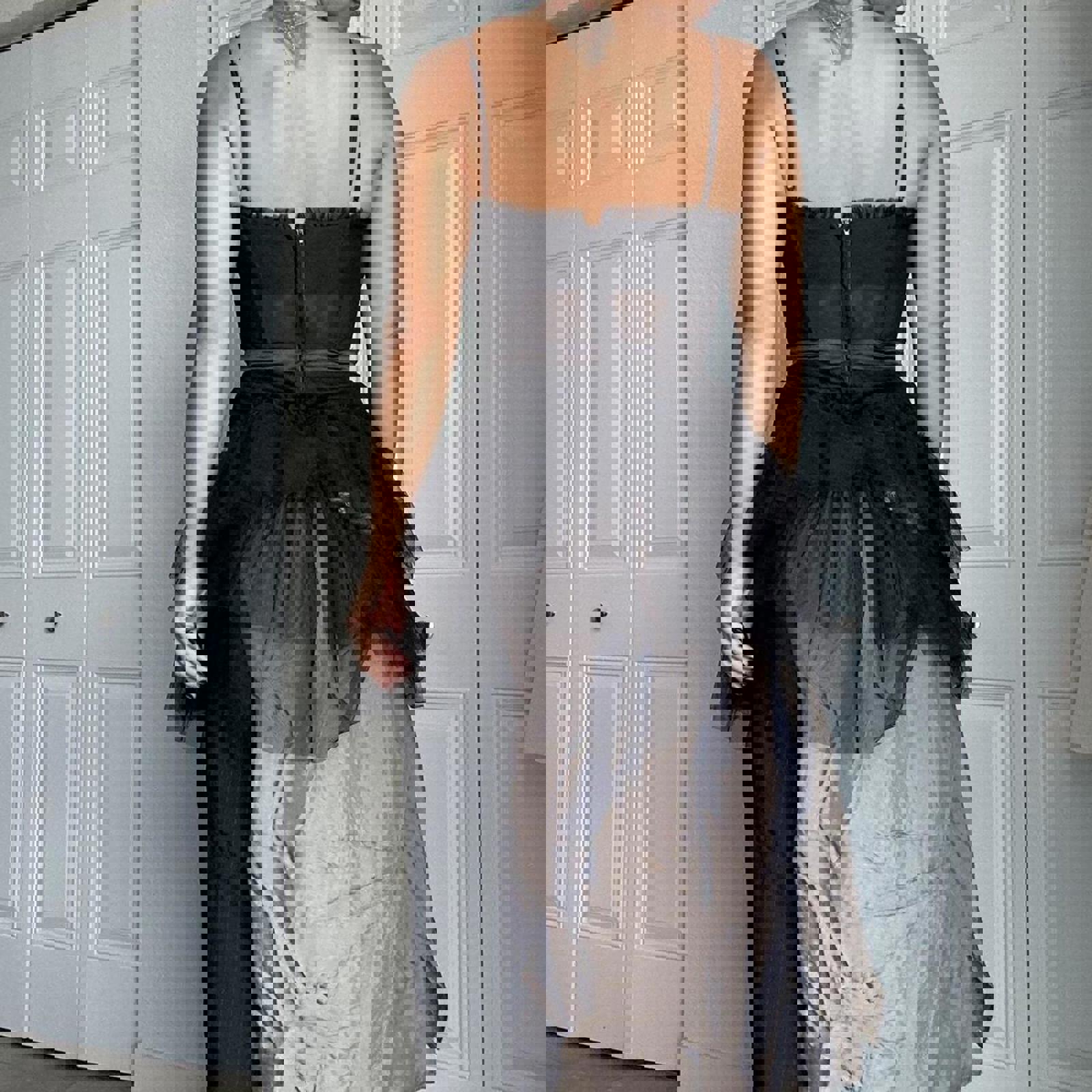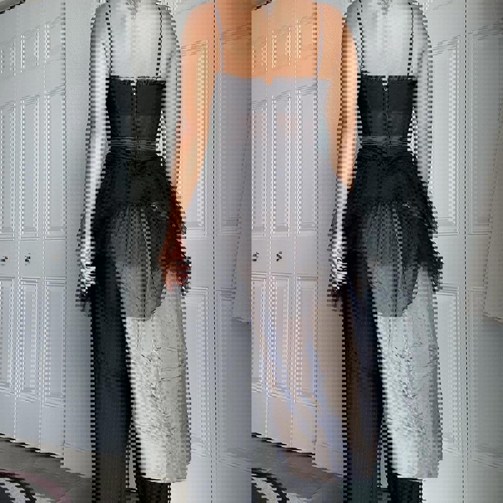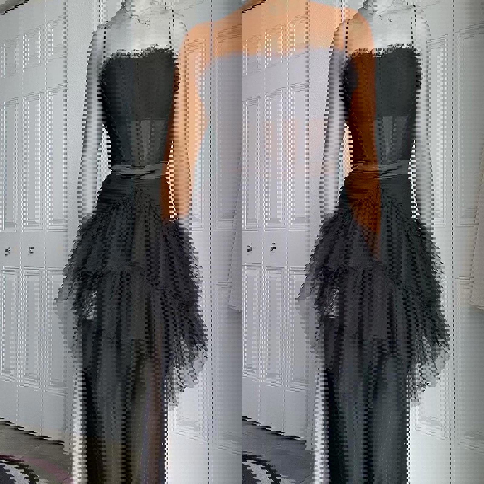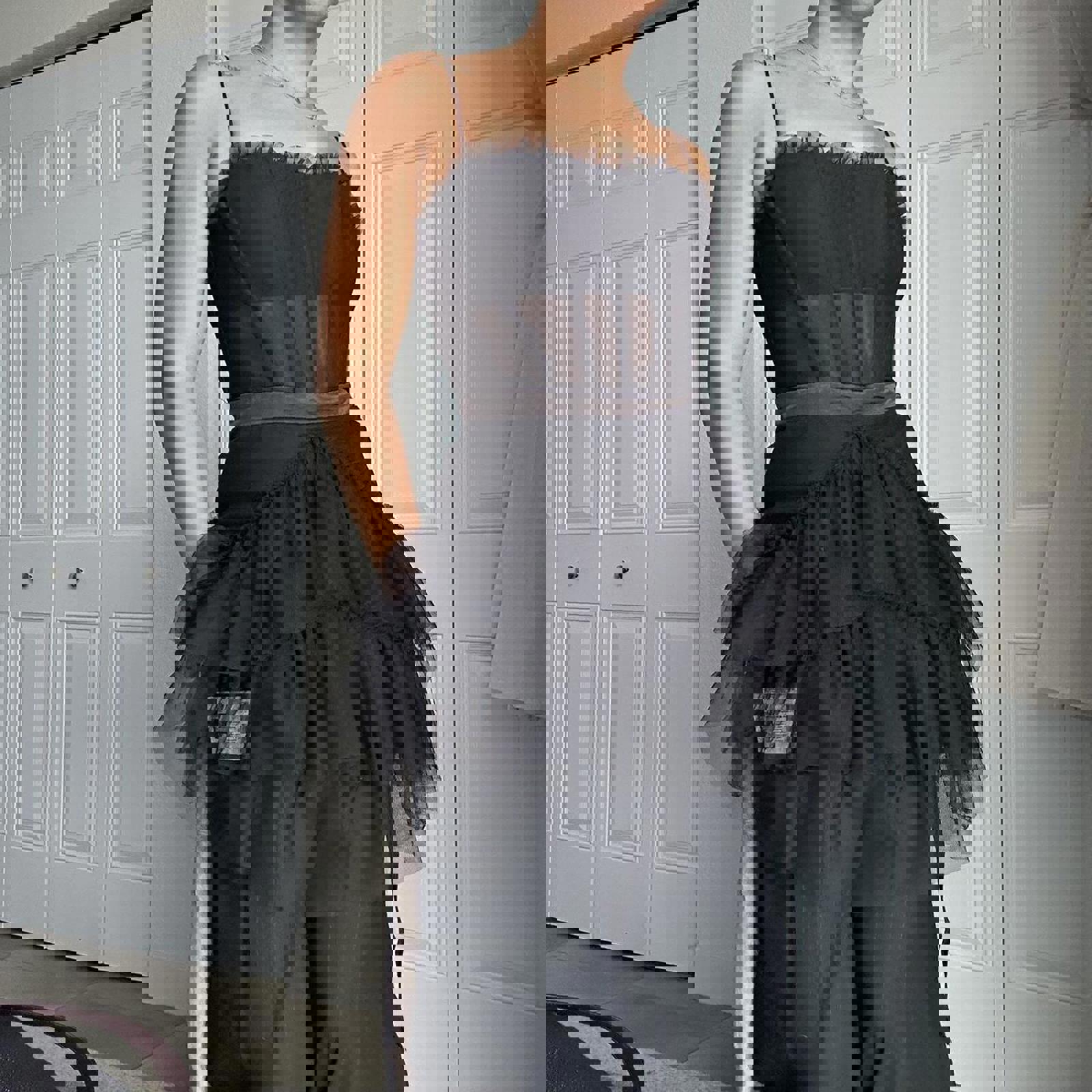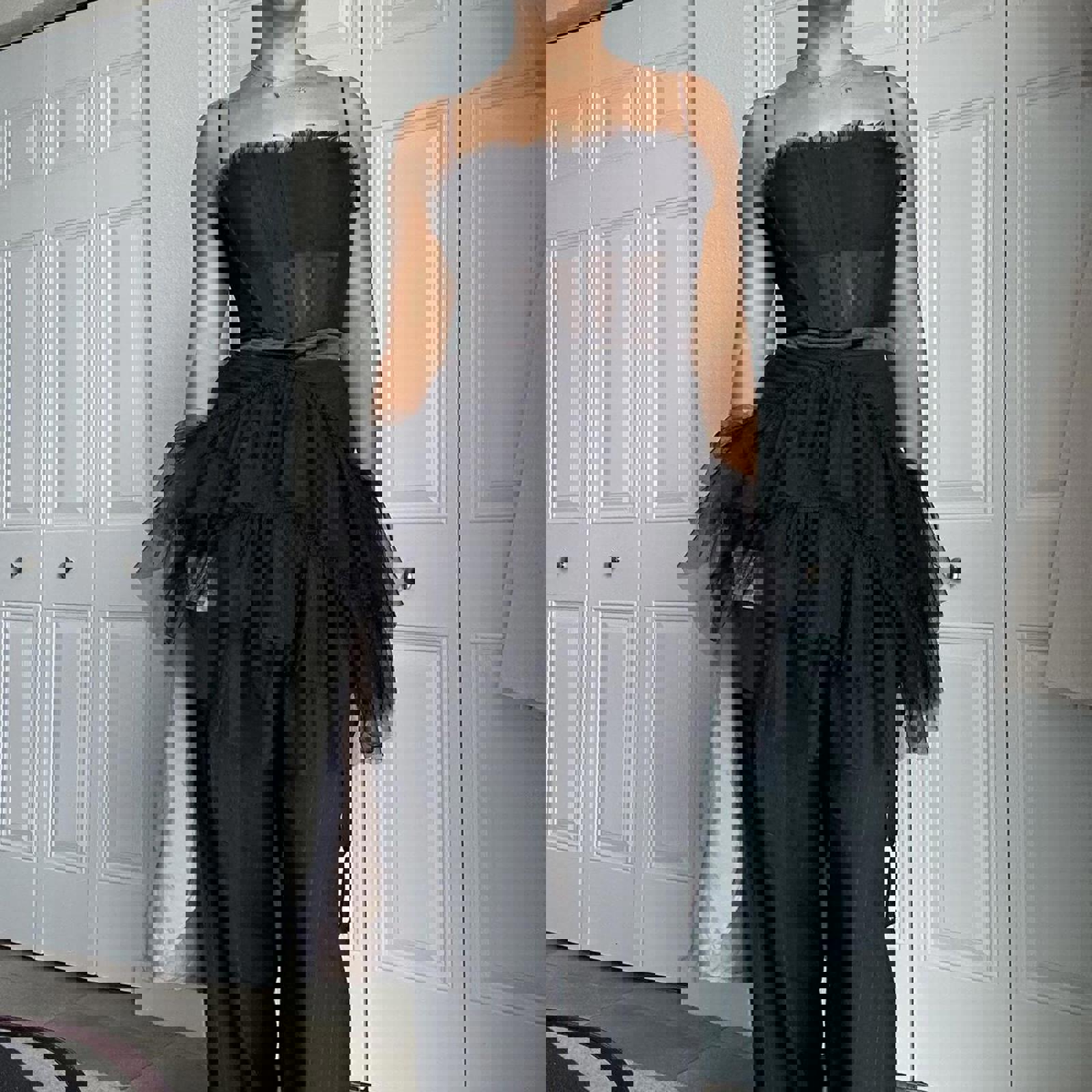 595. Black City Stufio corset top dress with tulle skirt in perfect condition. Shown styled with pants.