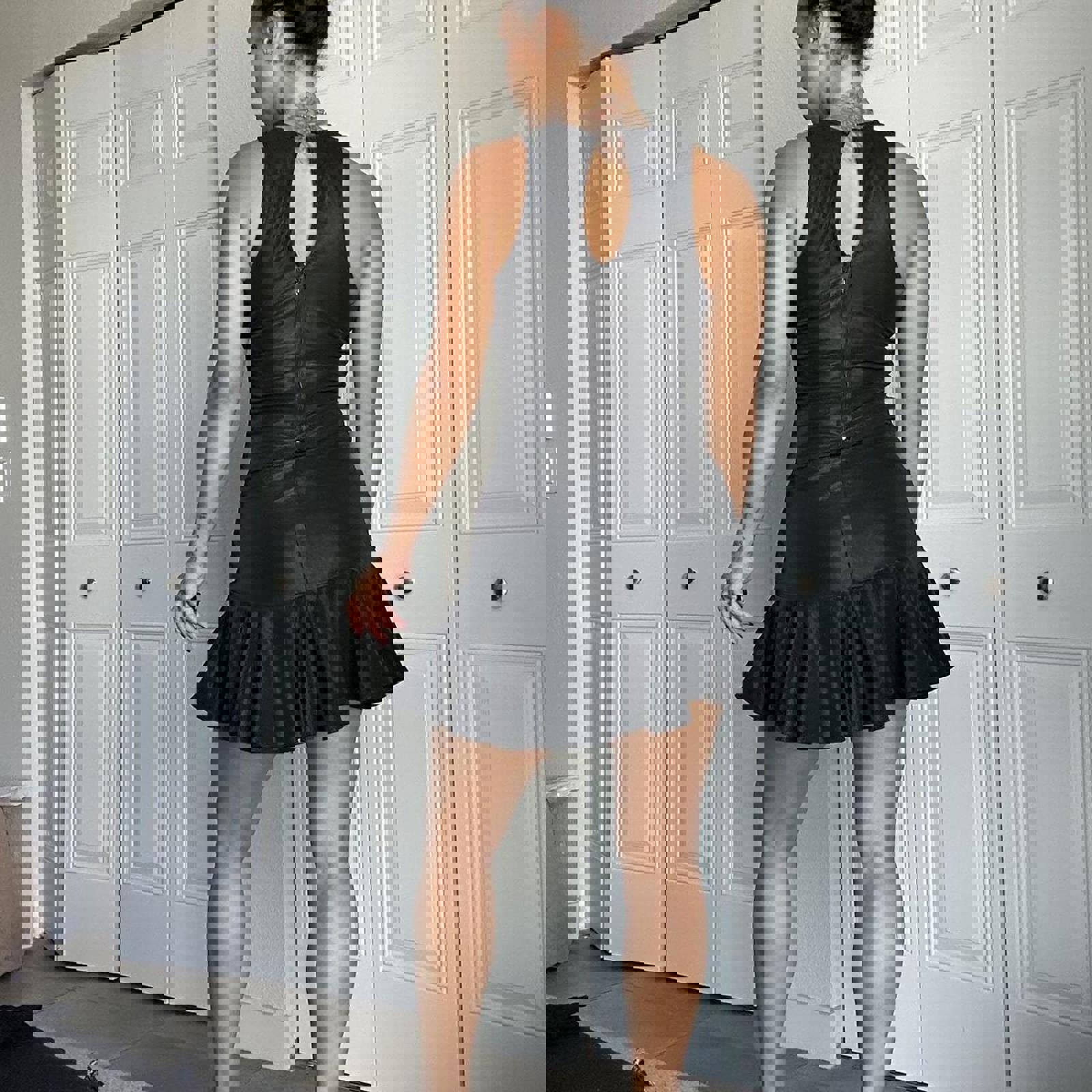 560. Cloude mini dress in black color perfect condition. Soooo flattering - labeled petite I would say it fits like an xs/s.