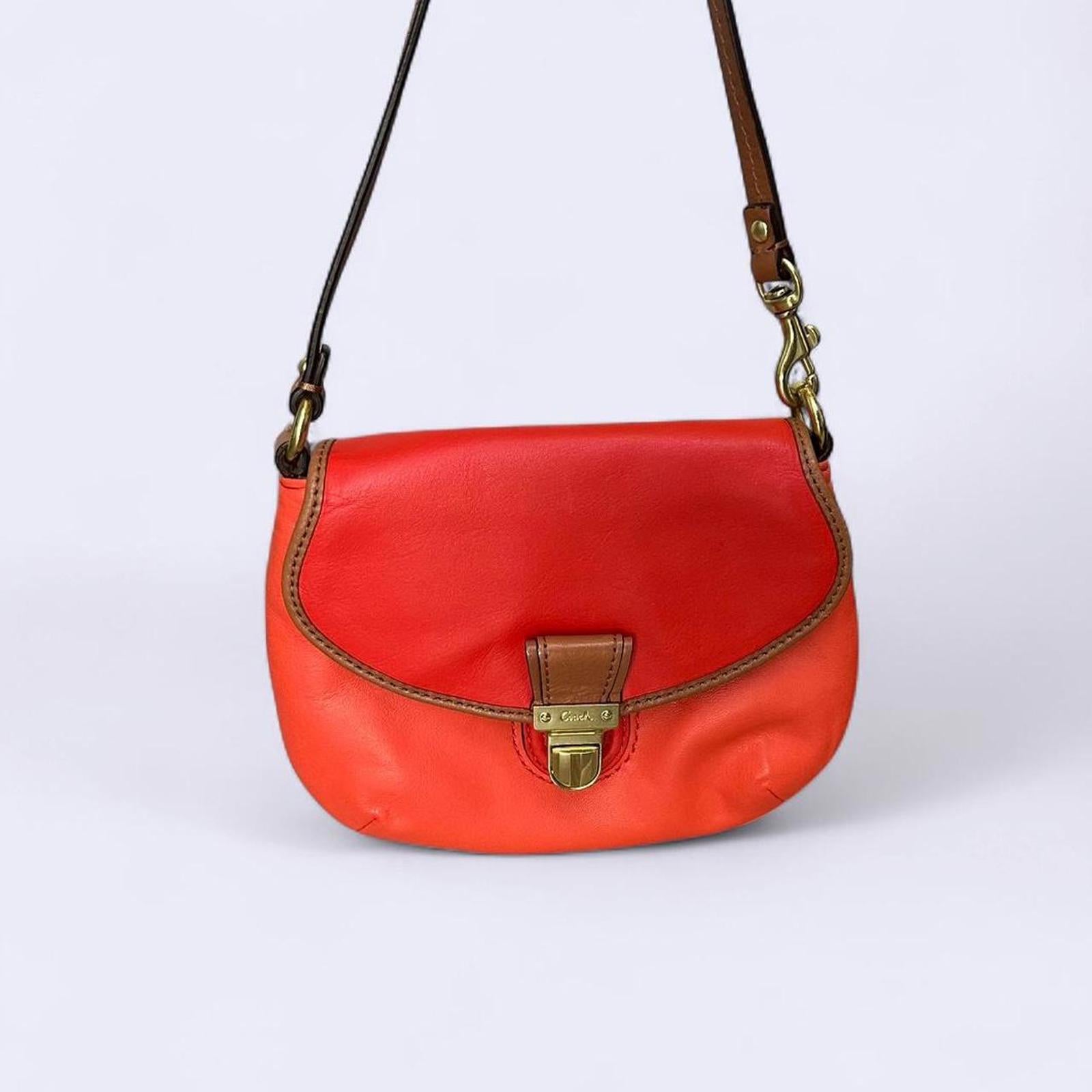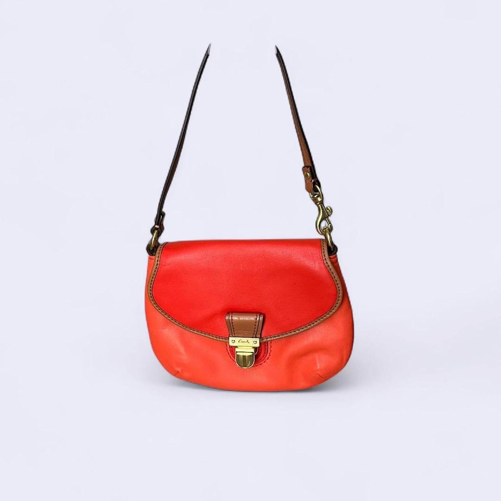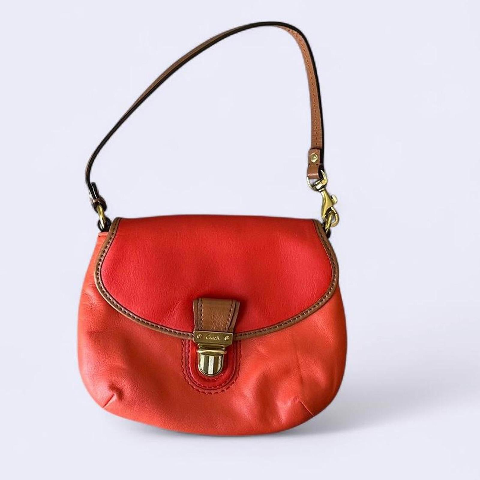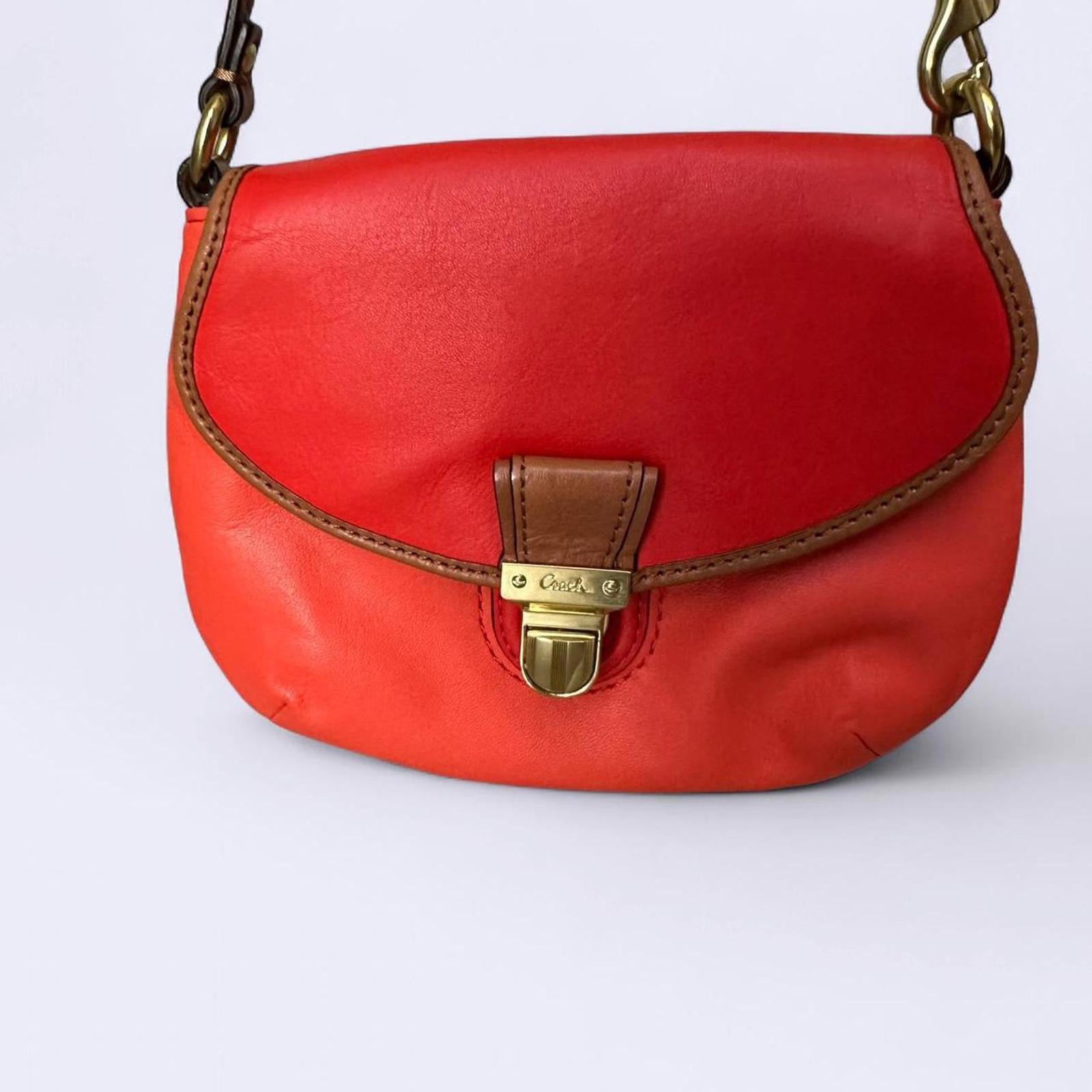 579. Mini leather coach bag with gold hardware and two toned leather. In excellent condition