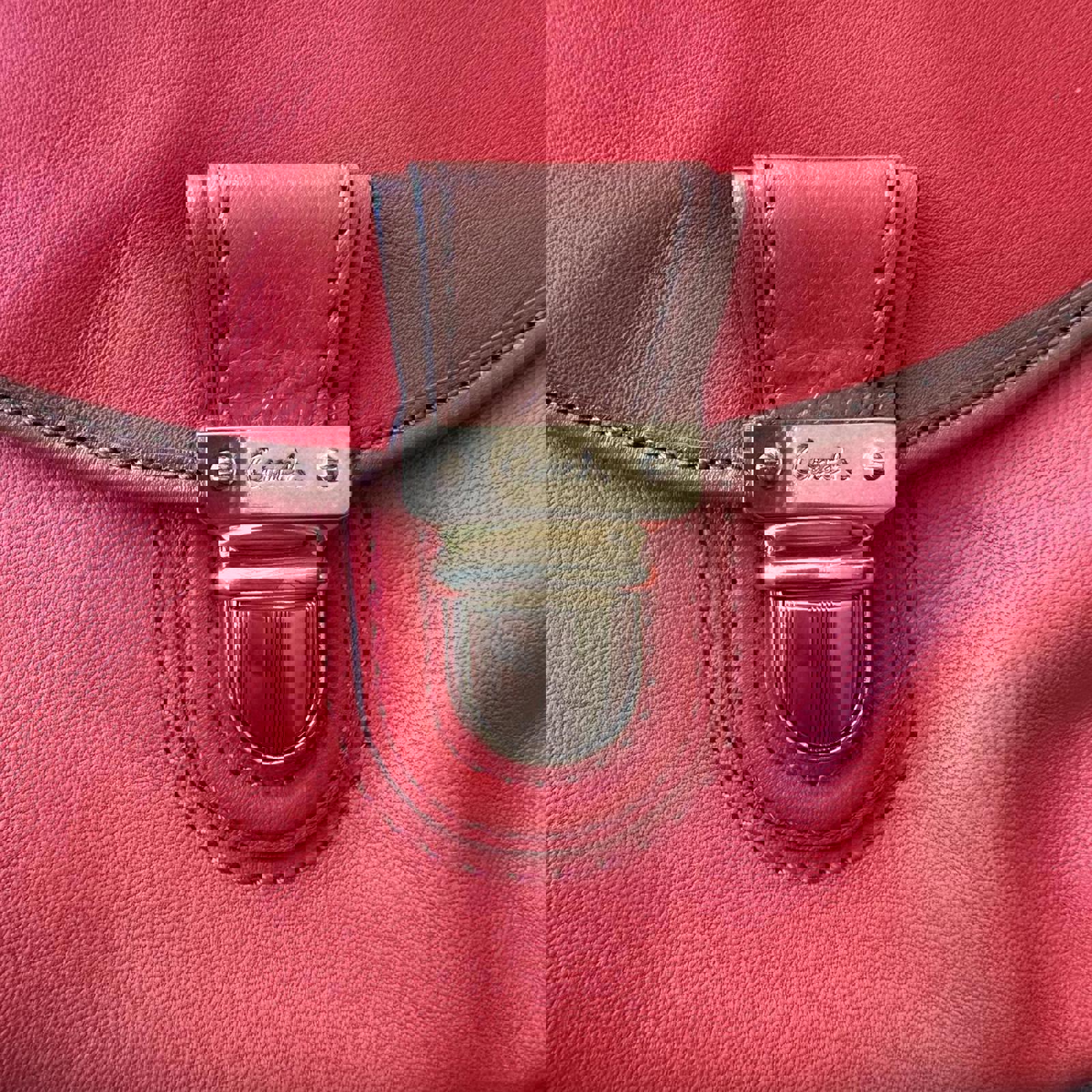 mini leather bag, two-tone leather, gold hardware, shoulder strap, compact purse, designer-inspired, croc pattern details, vibrant red, polished finish, evening bag