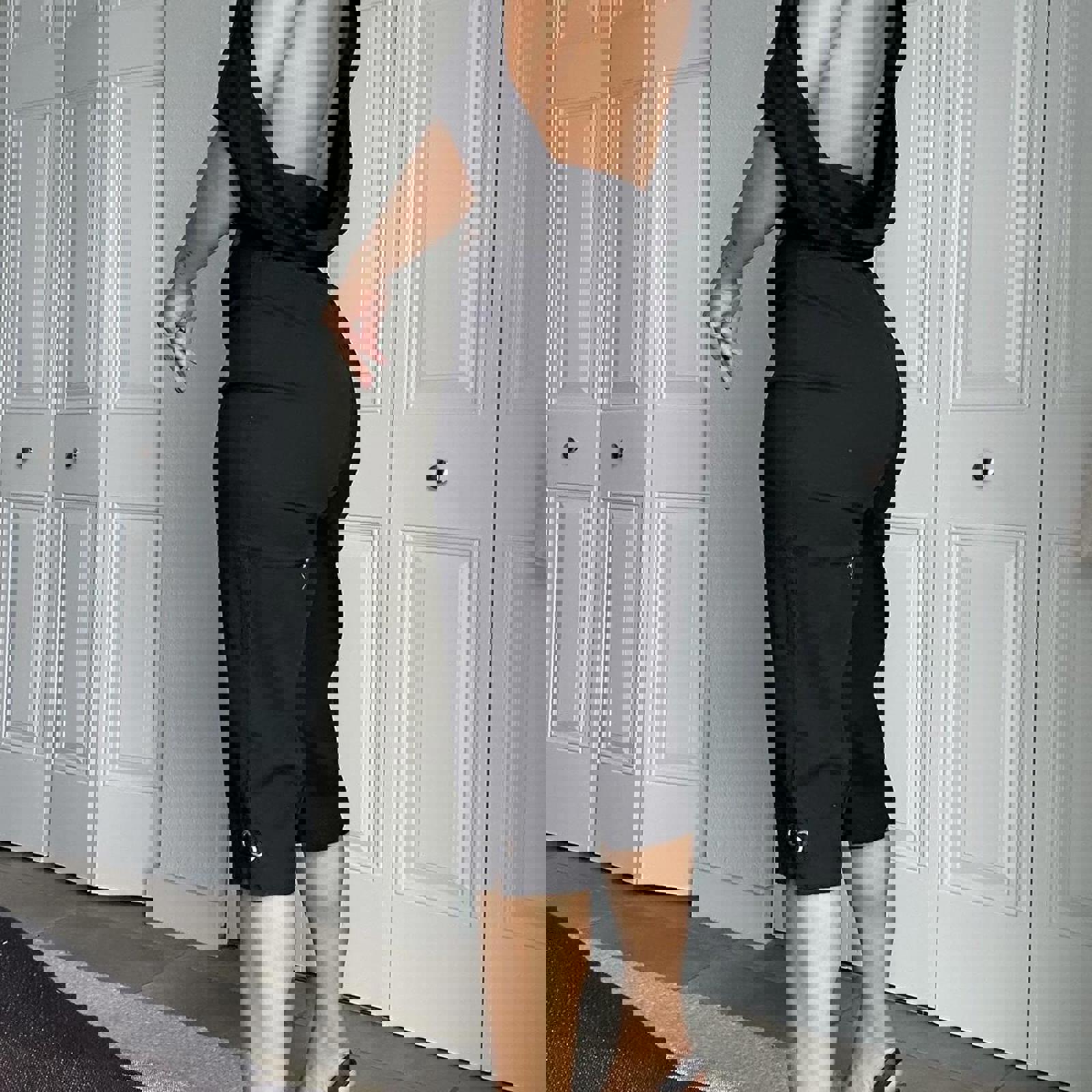 black, cropped, grommet details, tailored fit, casual chic, breathable fabric, cuff embellishments, versatile style, summer wear, everyday essentials