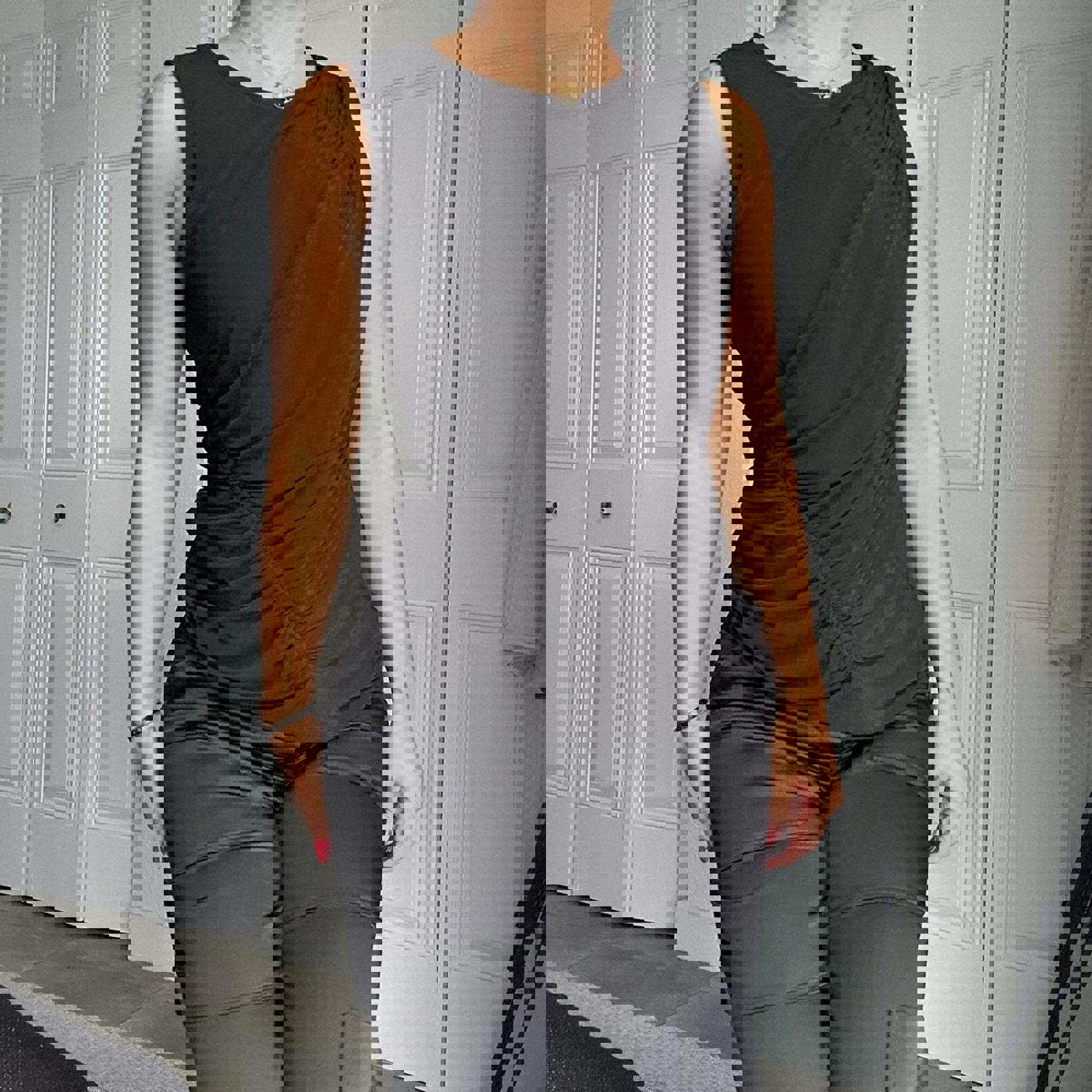 653. DKNY Top in a size small. I actually just pulled the tag off this one, it's never been worn, and it's in a really great condition. Has cinching detail on the top and the bottom. Super amazing basic.