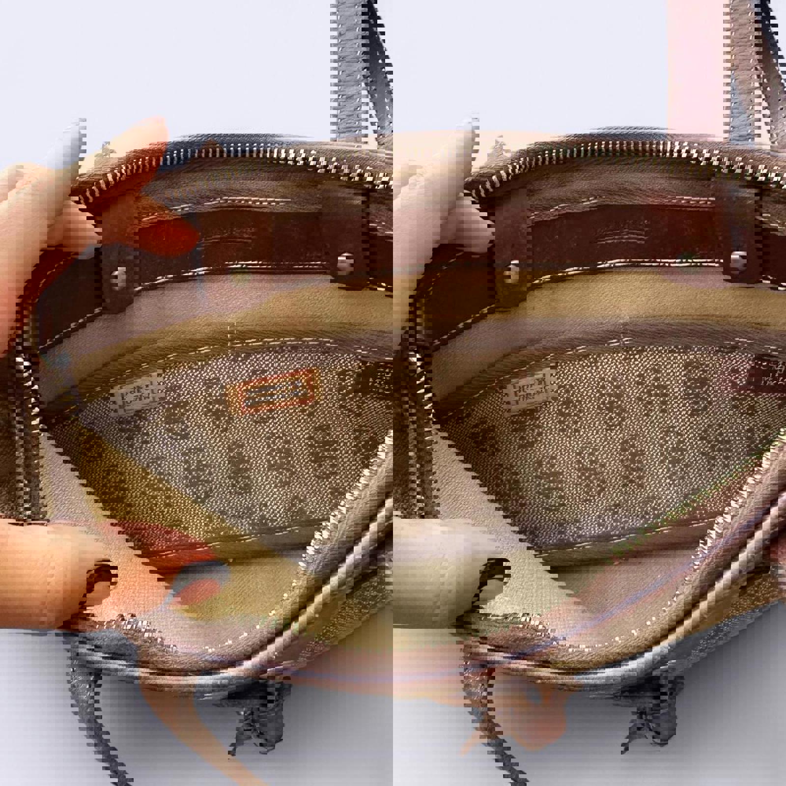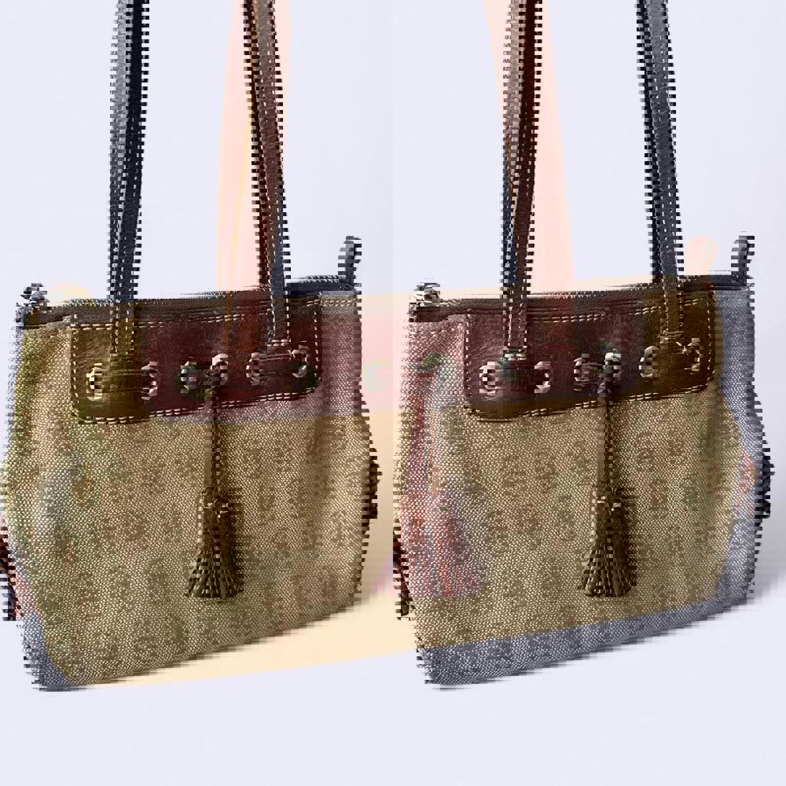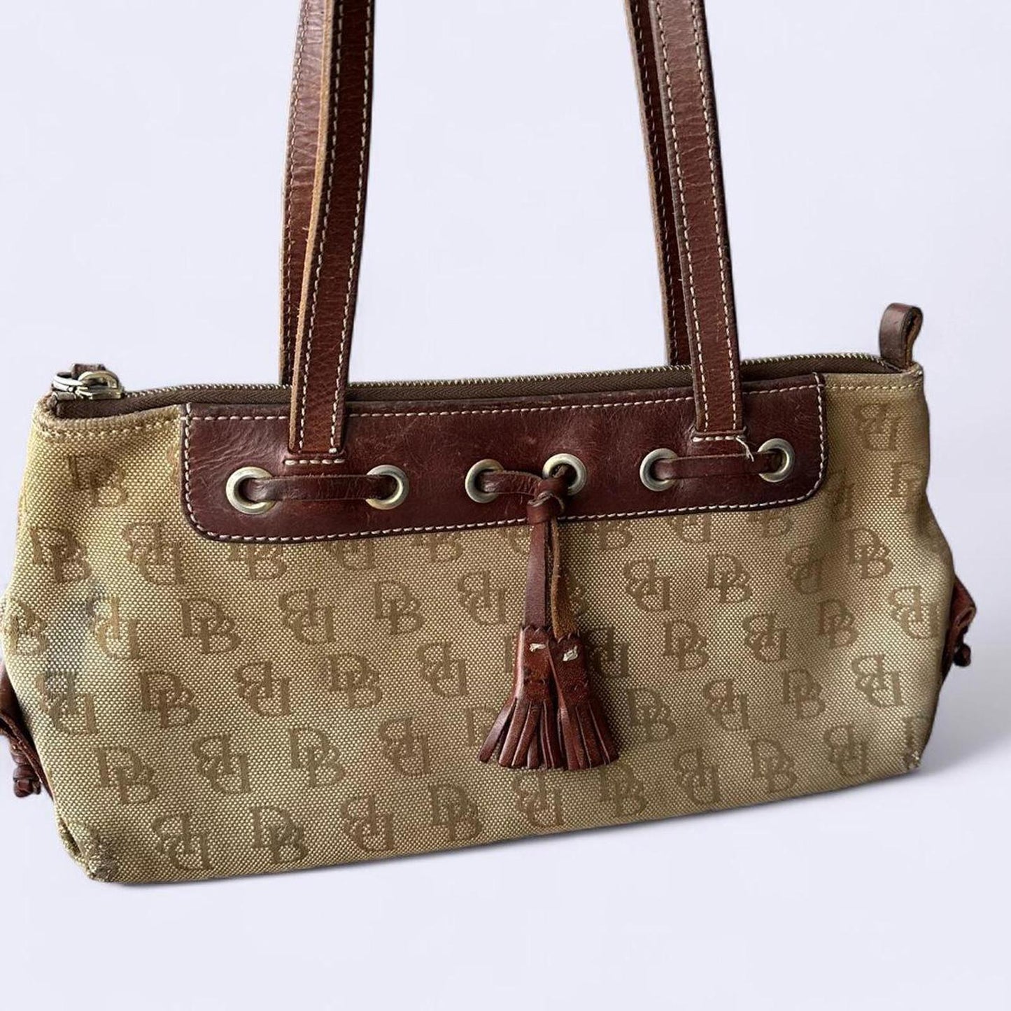 569. Vintage brown Dooney & Bourke bag with tassel detail in the front. Some visible wear shown in photos but otherwise great condition.