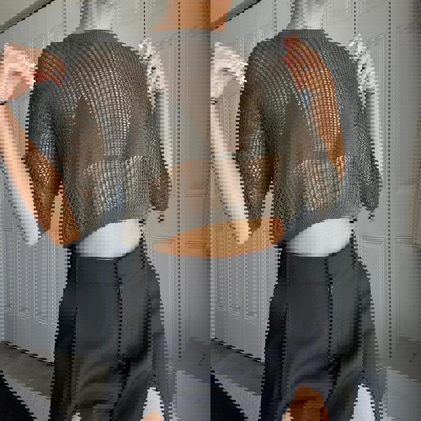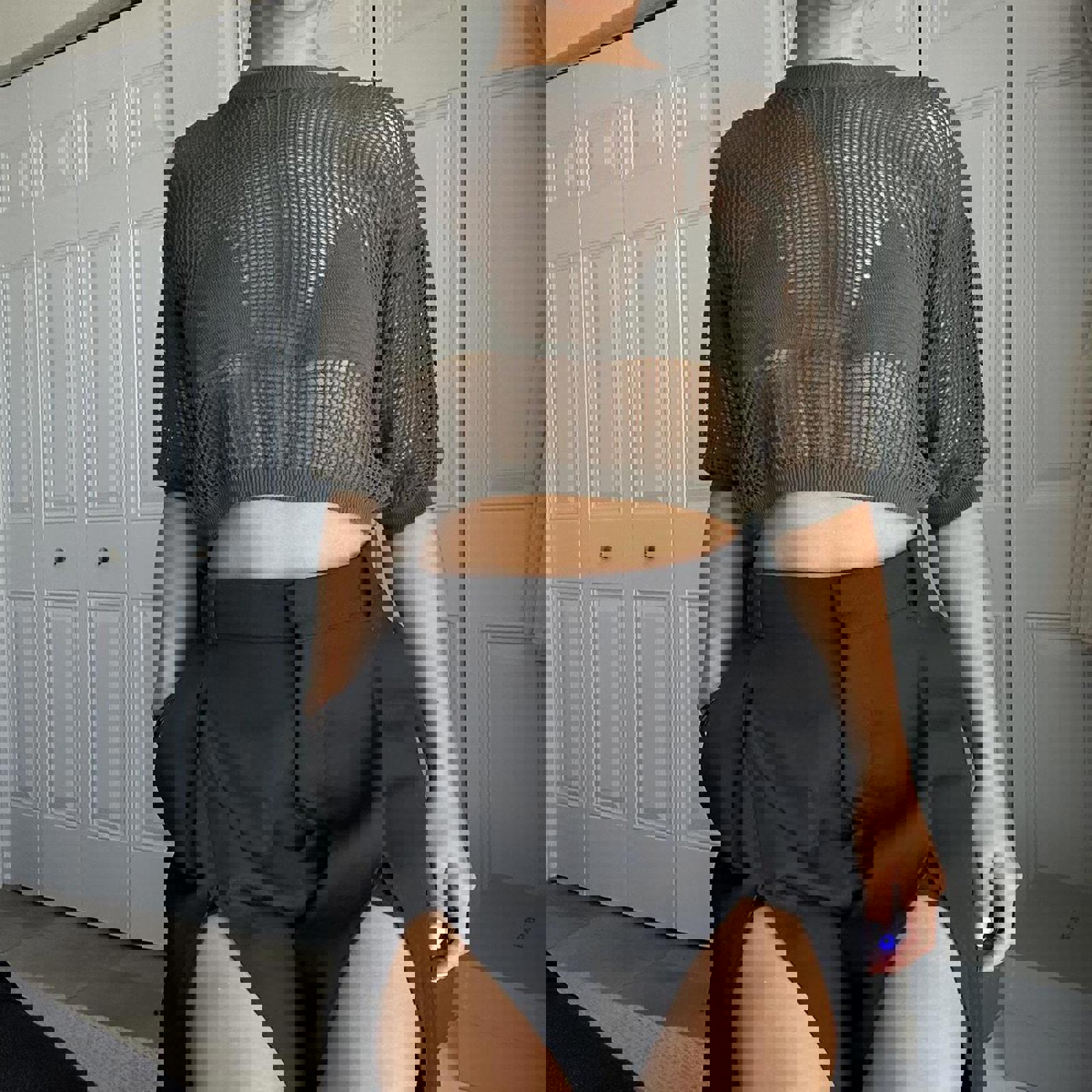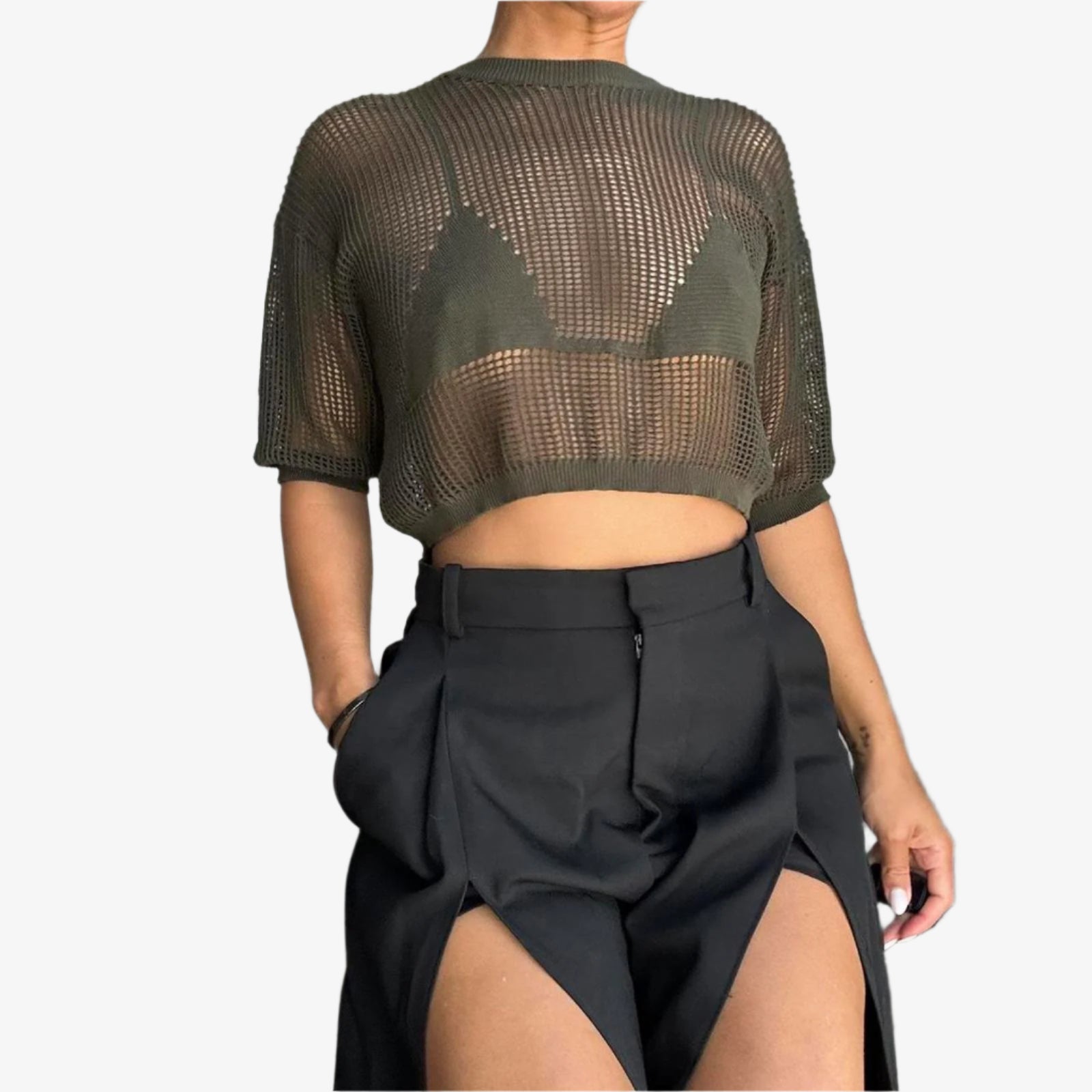 Khaki and green Dsquared2 knit top with bikini like area to cover nipples