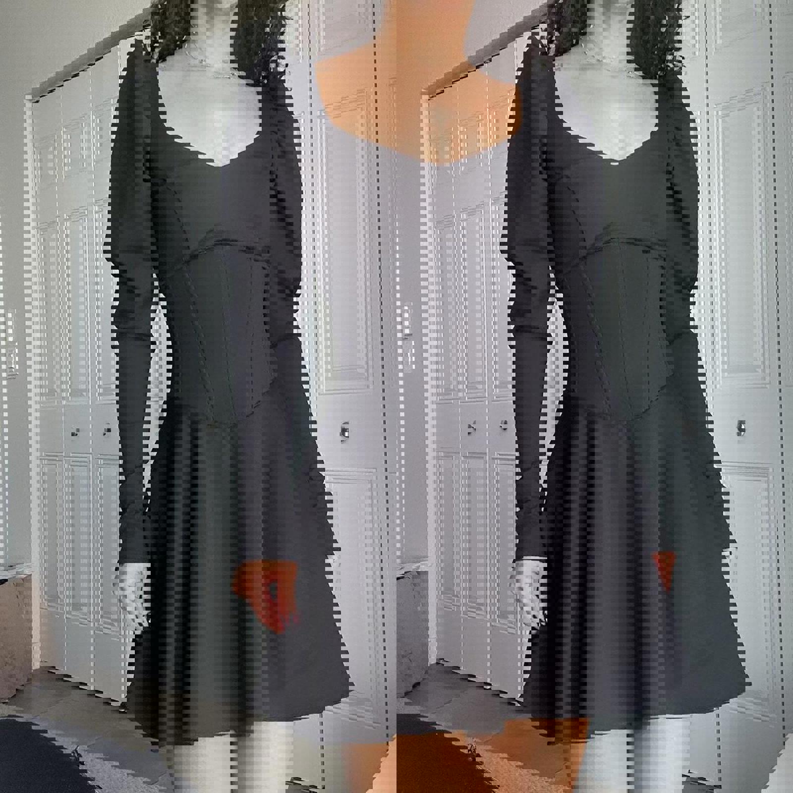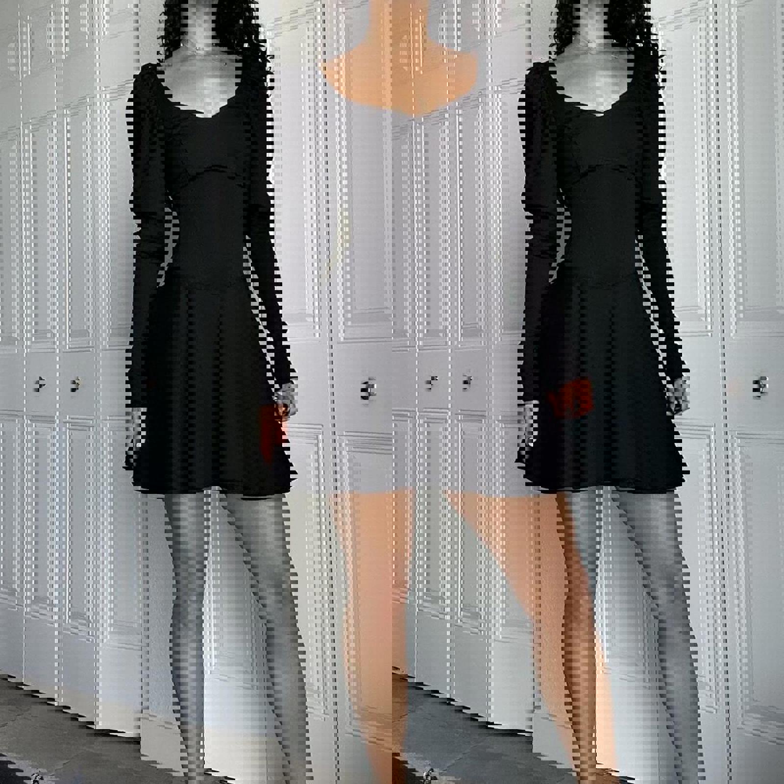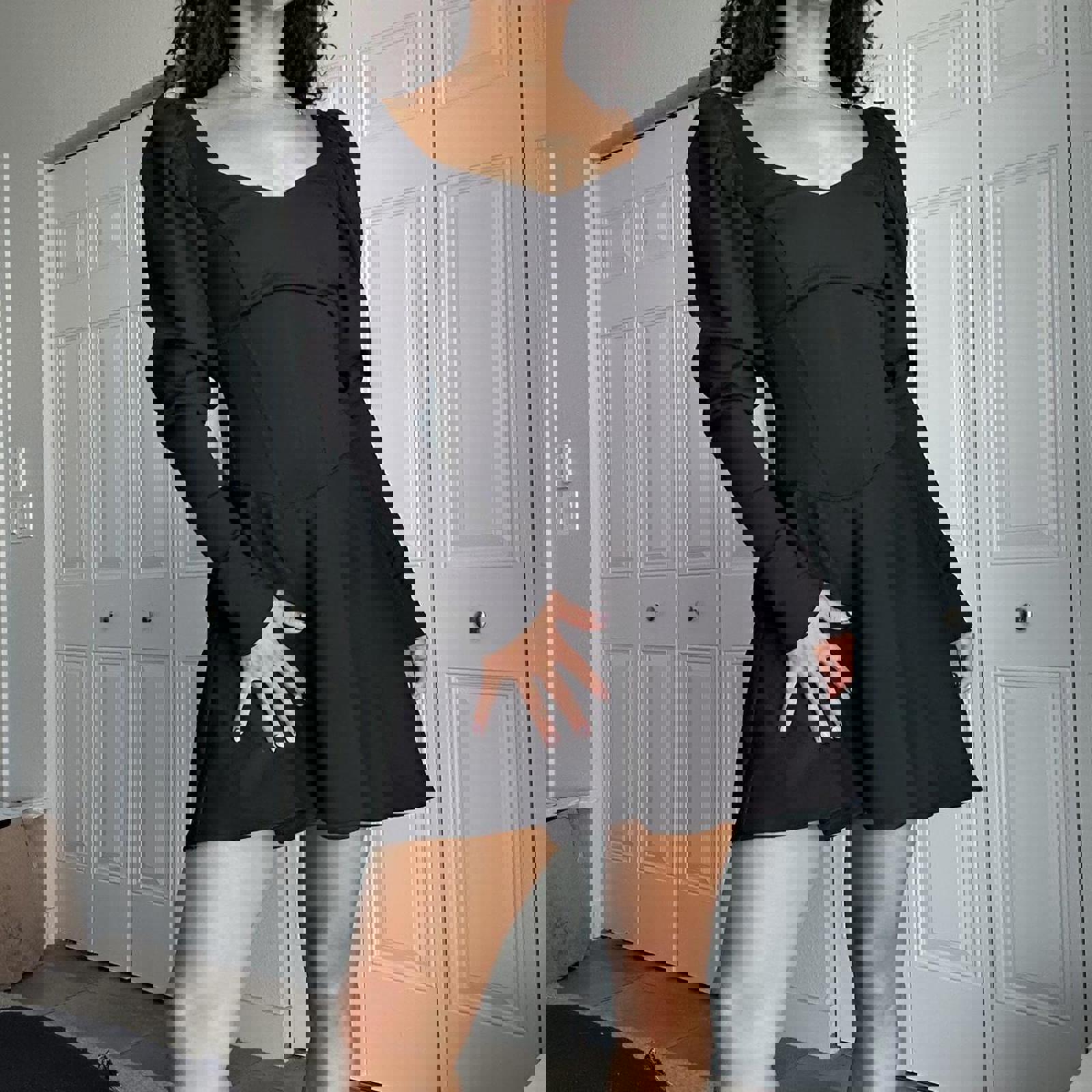 564. EL.MILAS.BRAND black long sleeve dress with exaggerated shoulders. Perfect condition. Has boning in the corset which really shapes the body!