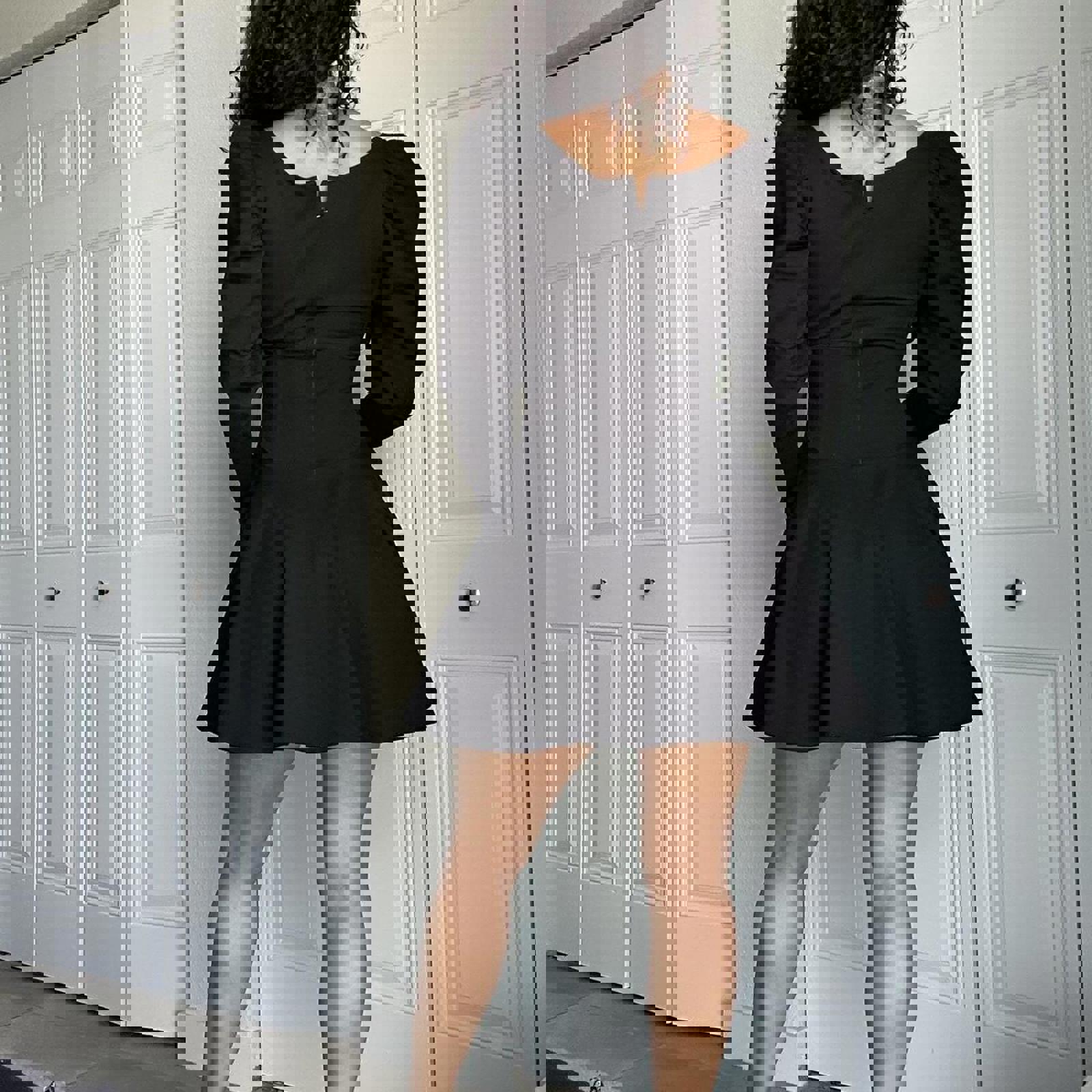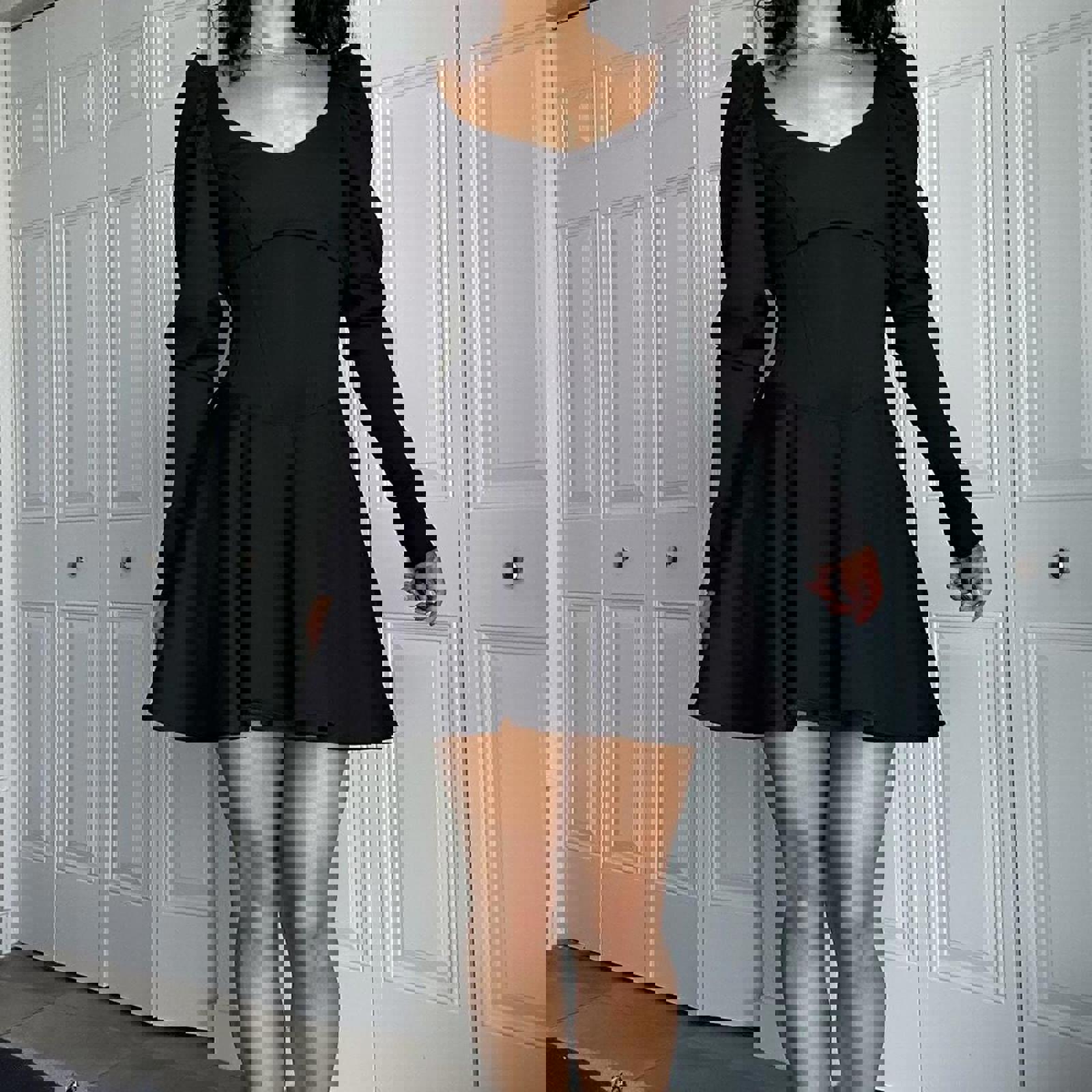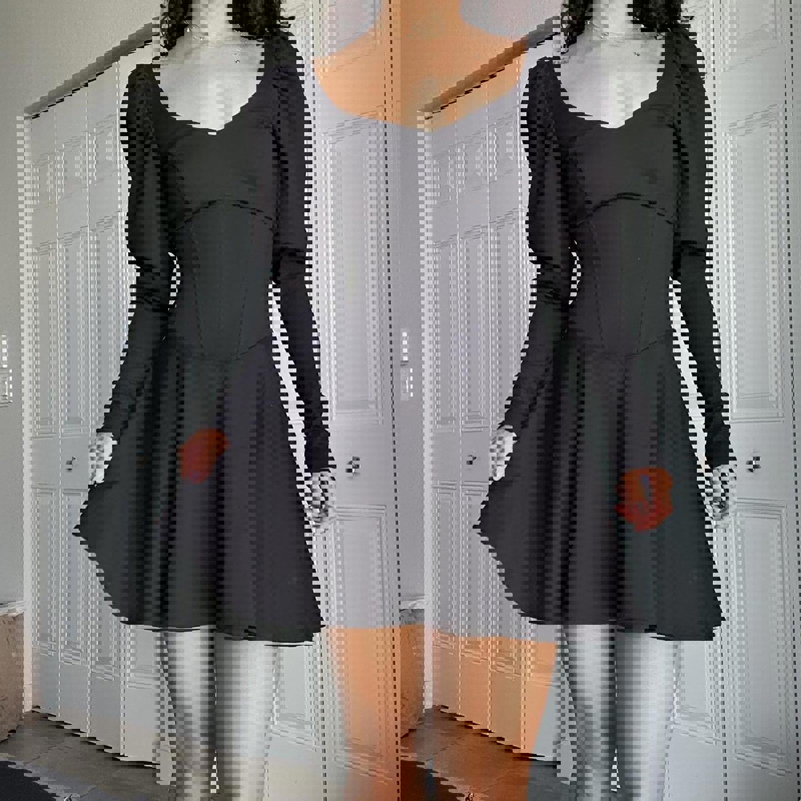 564. EL.MILAS.BRAND black long sleeve dress with exaggerated shoulders. Perfect condition. Has boning in the corset which really shapes the body!