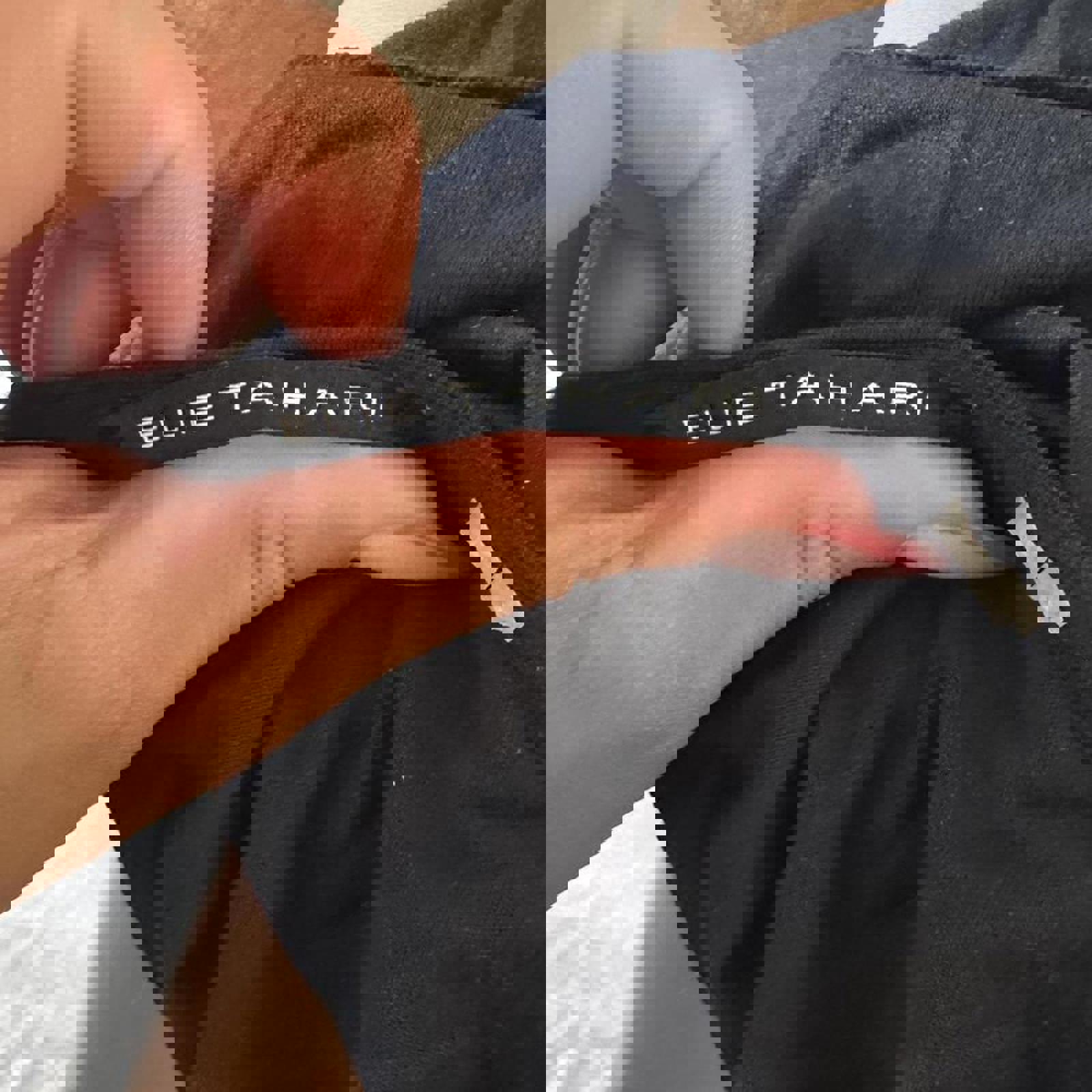 428. Eli Tahari top with draped detail. Perfect condition. No size tag, fits like a small