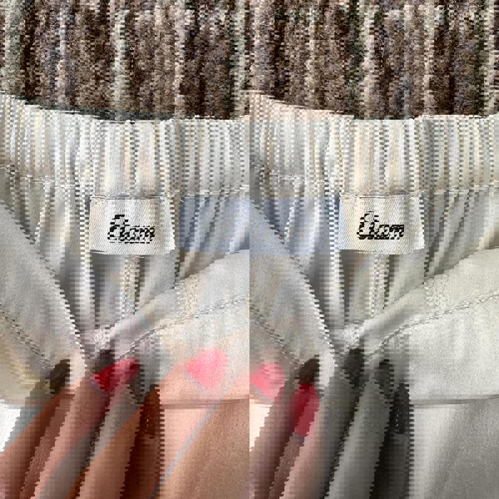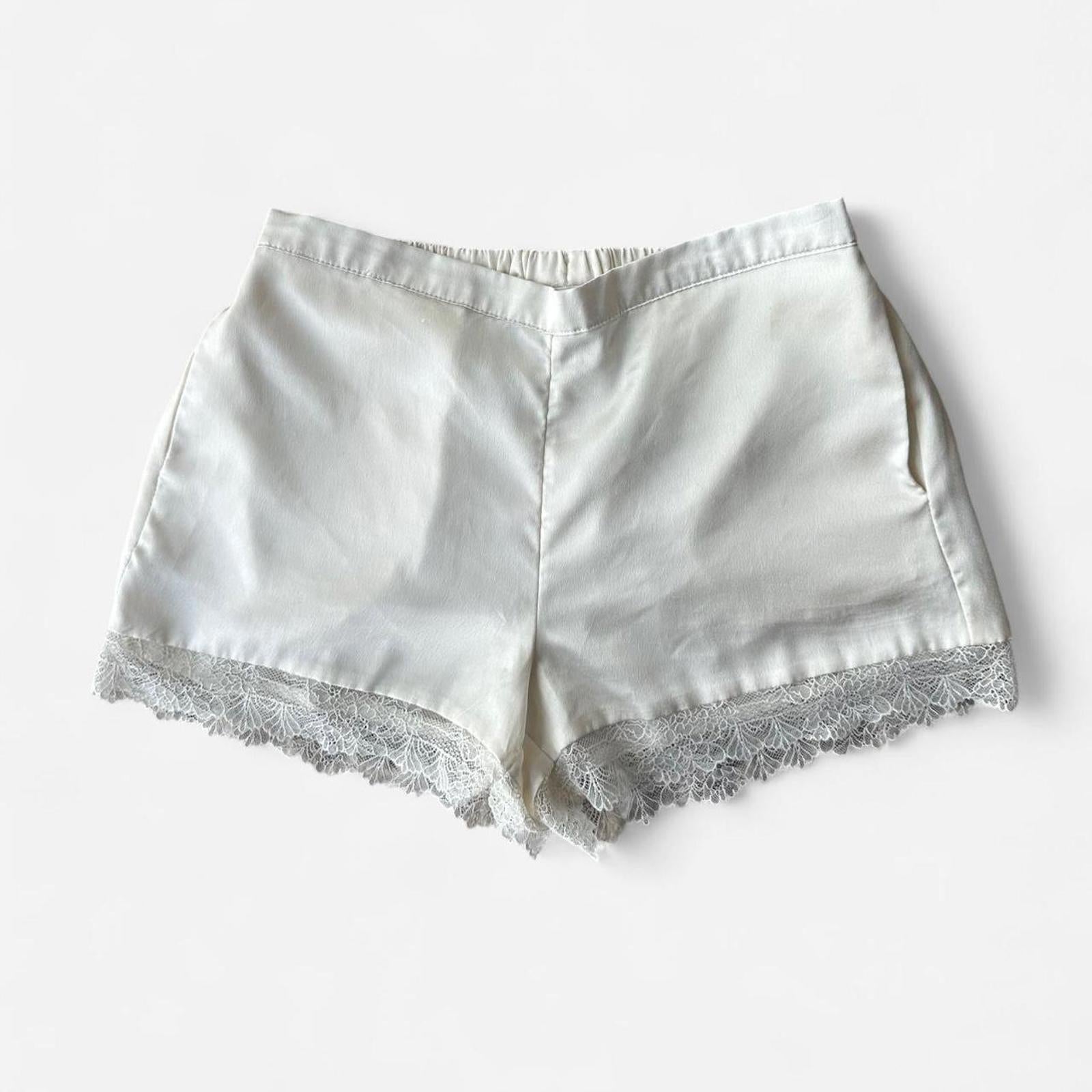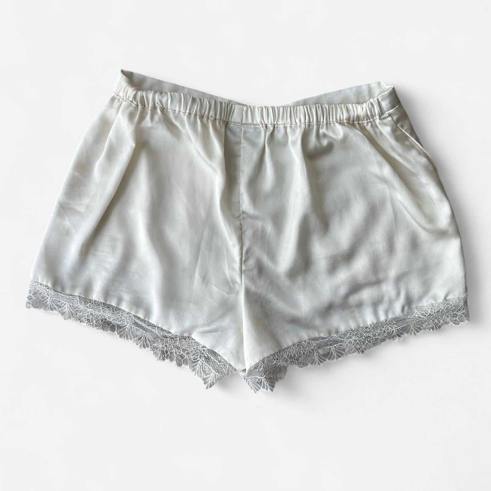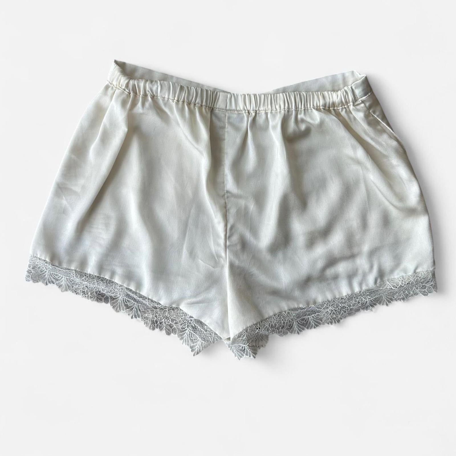 702. Etam sleep shorts in cream color satin material, perfect condition, does have pockets, no size tag. Fit like an extra small in my opinion or a small with a smaller butt.Measurements listed below:
