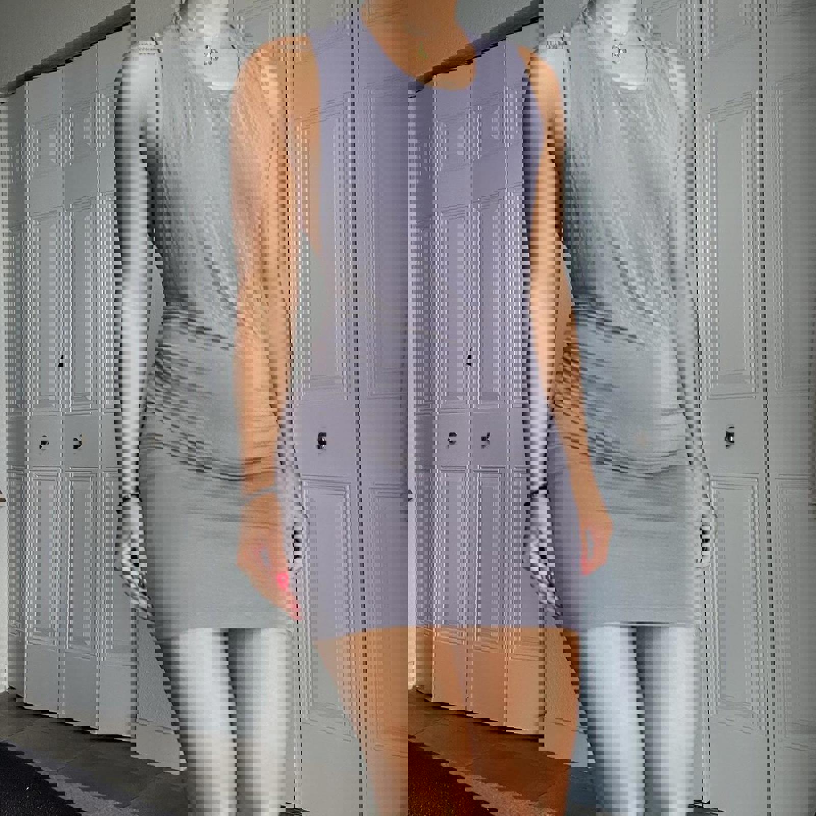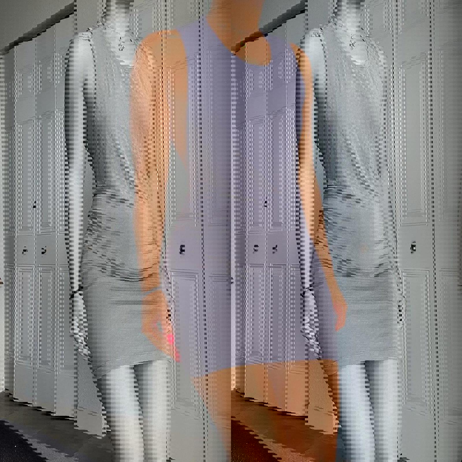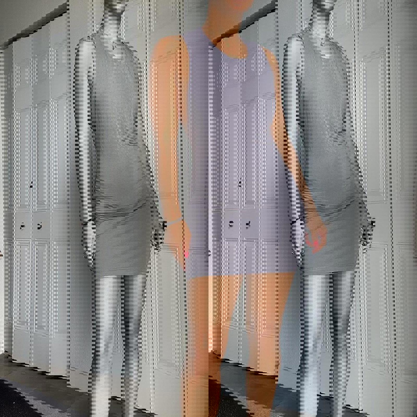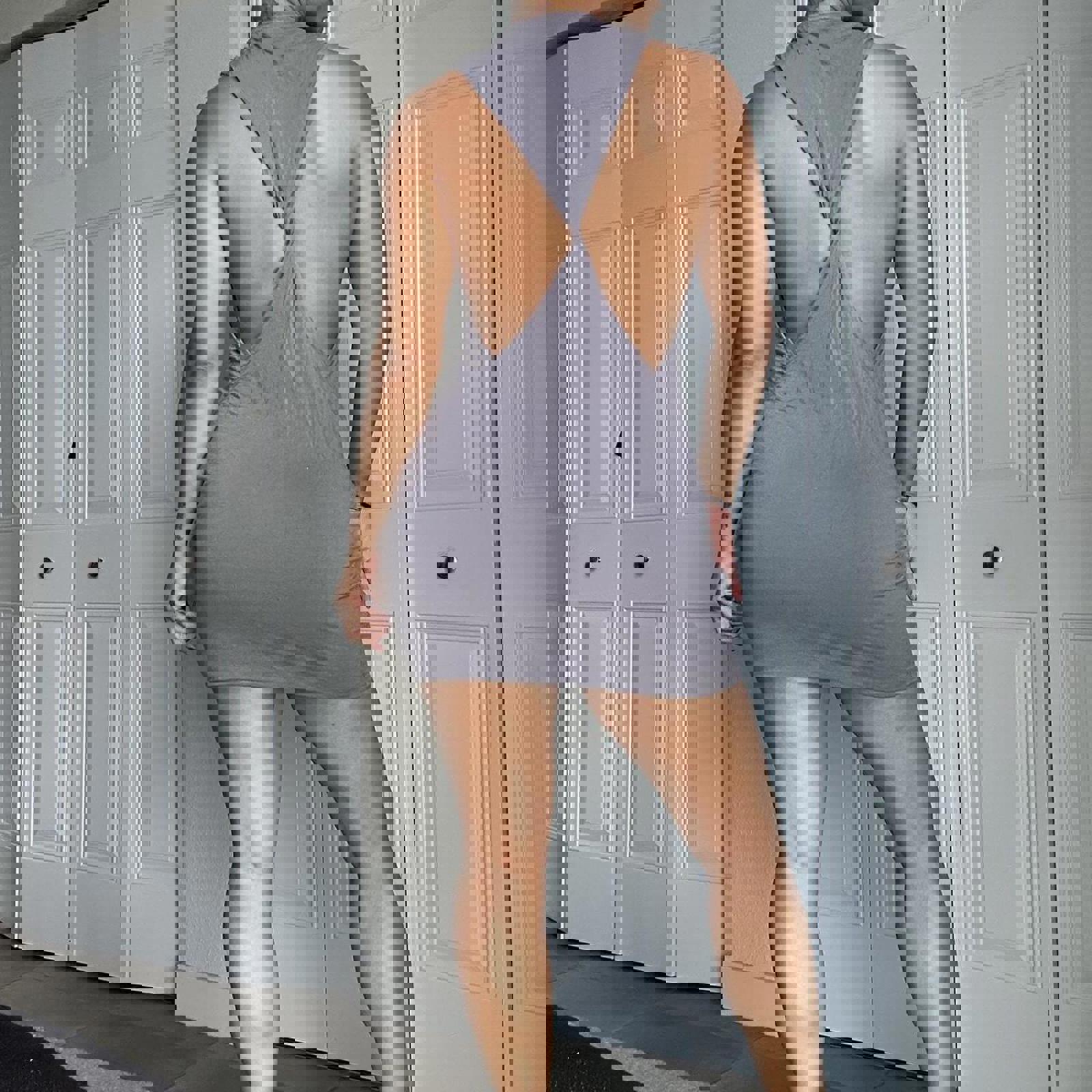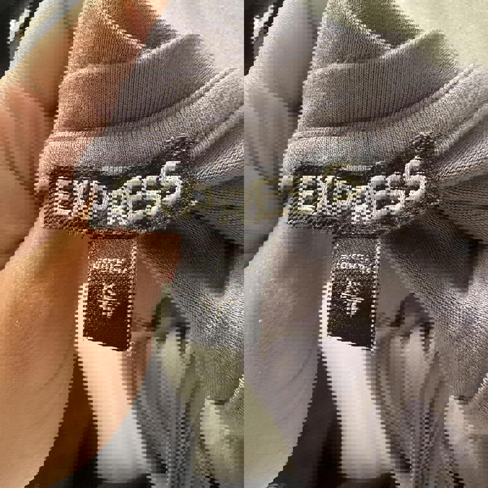 654. Express gray twist back dress in a size extra small shown on a size small. It's cotton, so it has a little bit of stretch. This dress is so amazing - it makes the body look snatched.