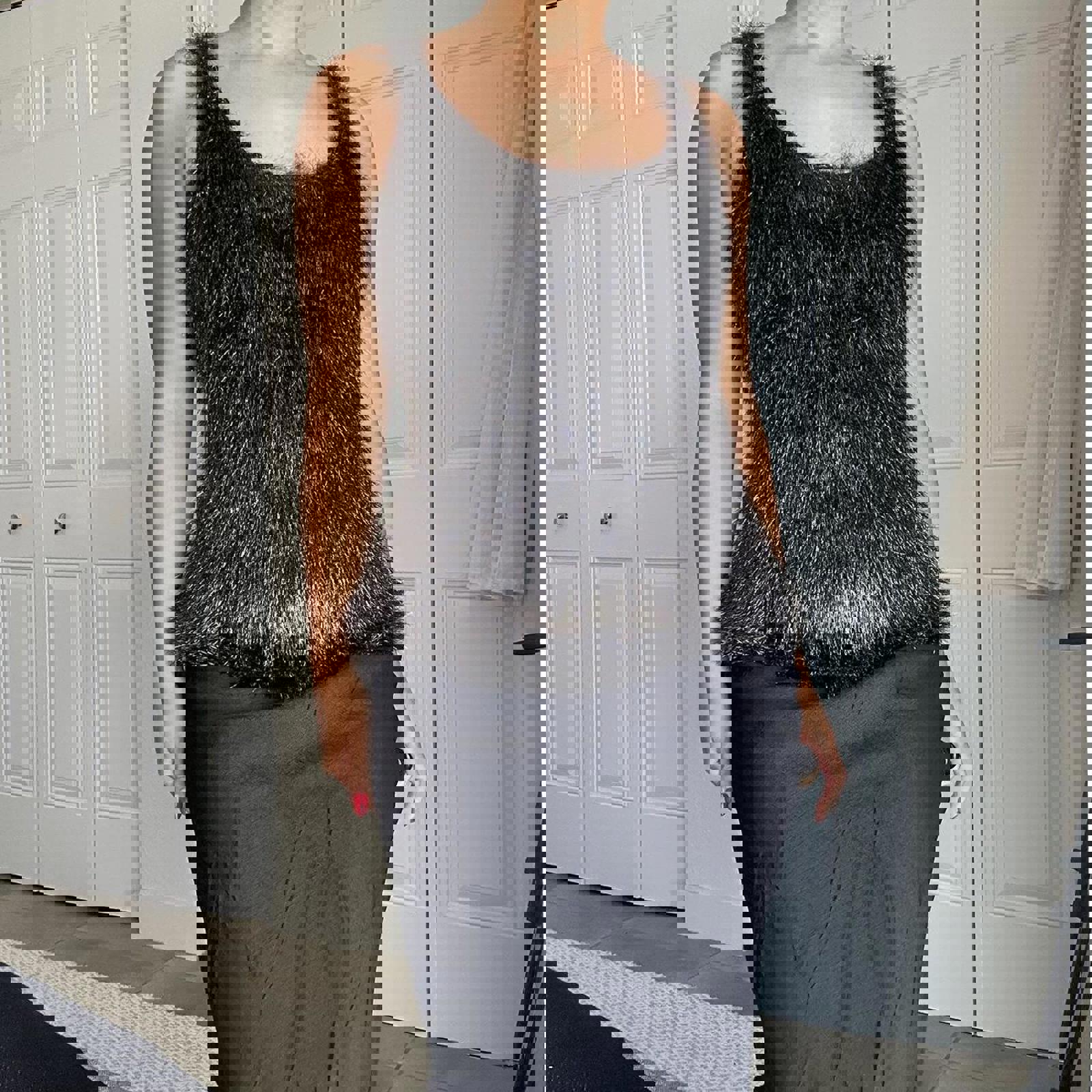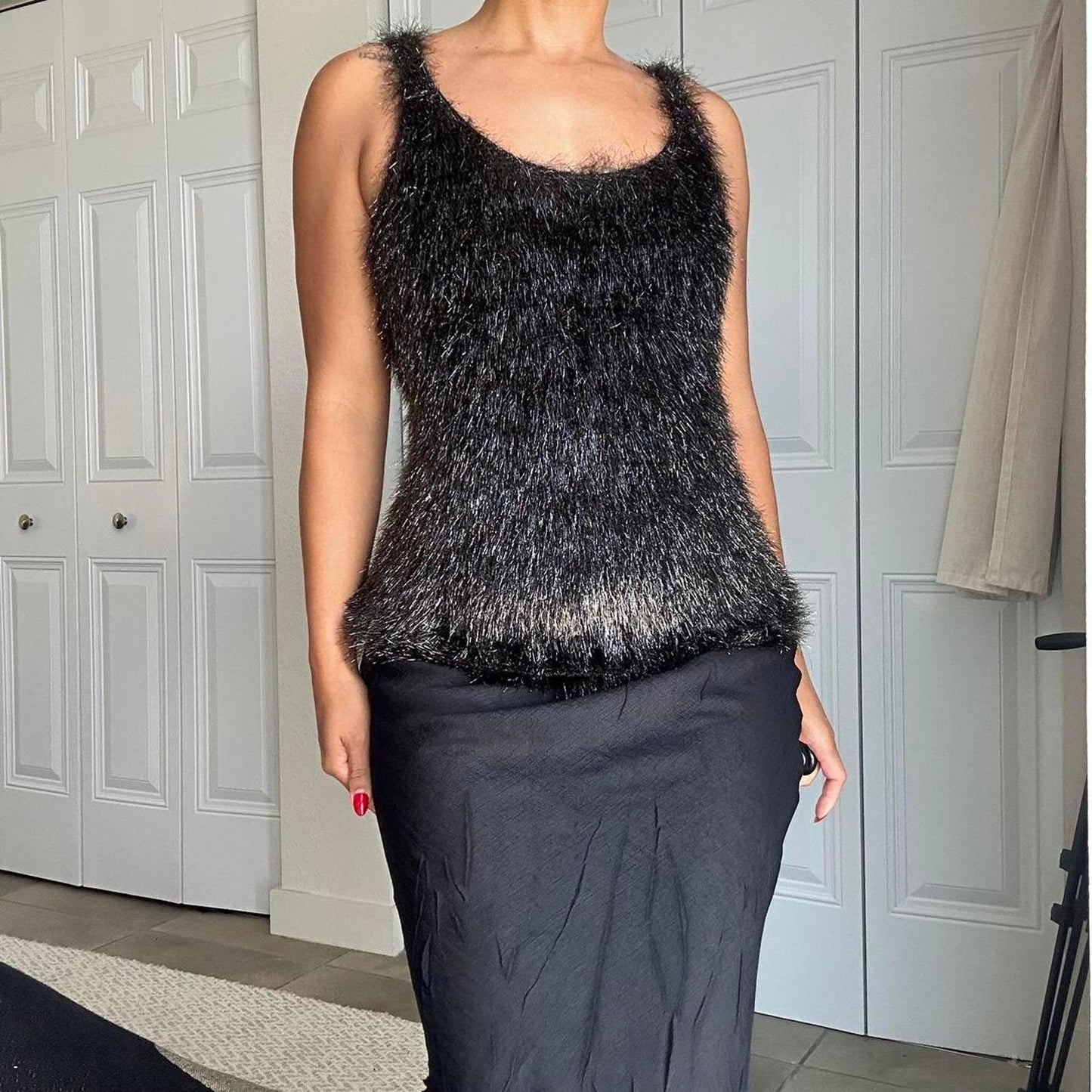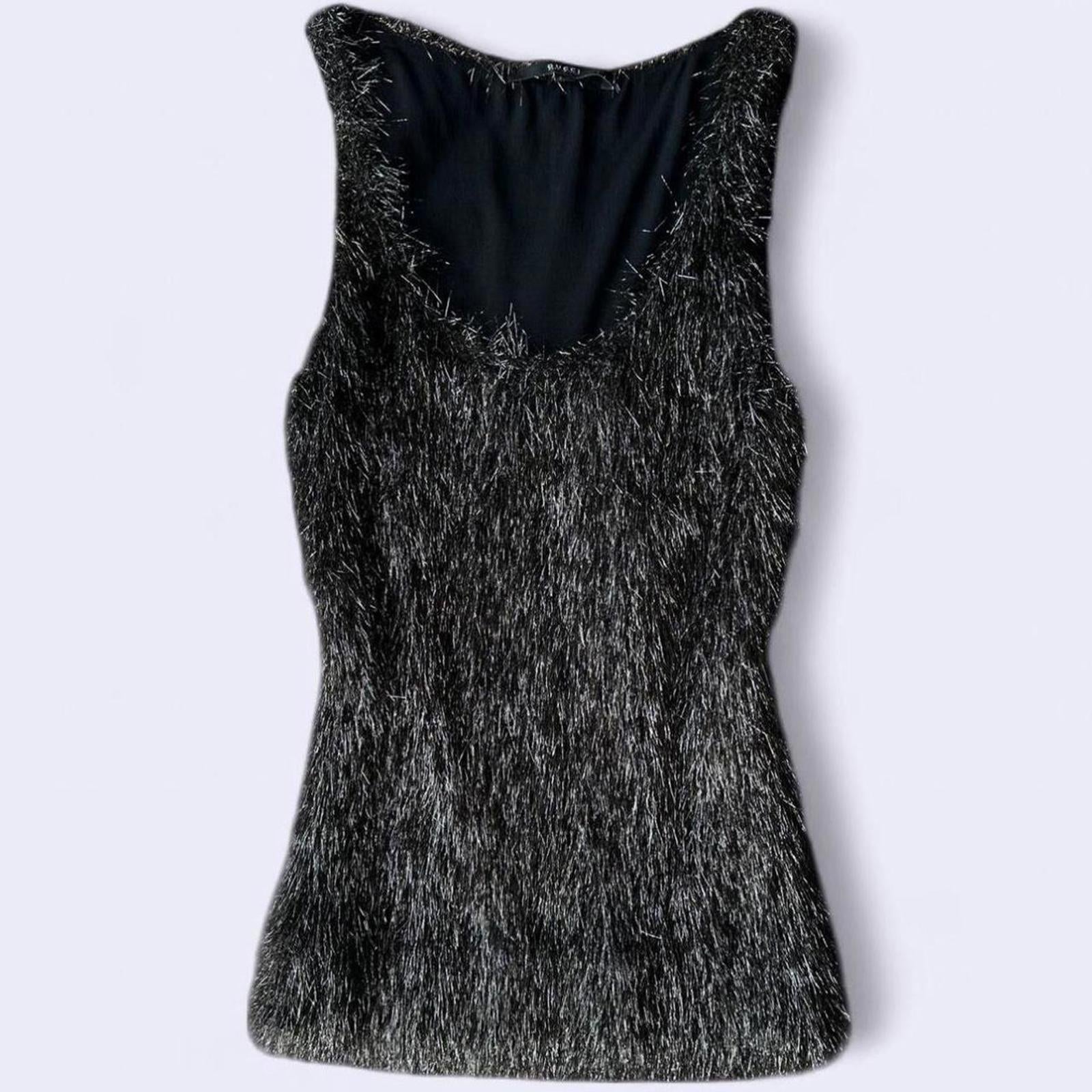 458. Vintage Gucci x Tom Ford Black and Silver Tinsel Fringe Tank Top Size XS Women's. Absolutely perfect condition, a true statement piece