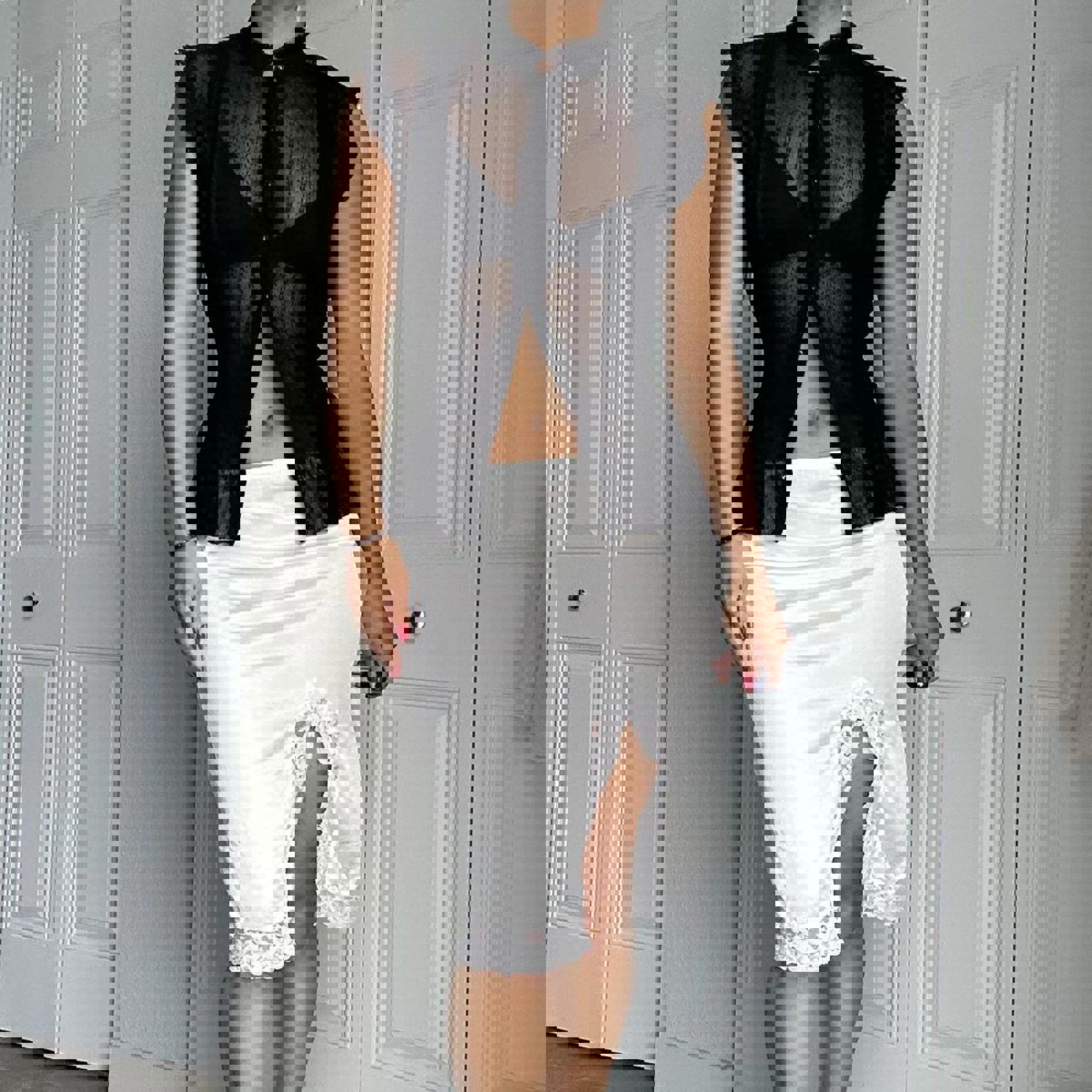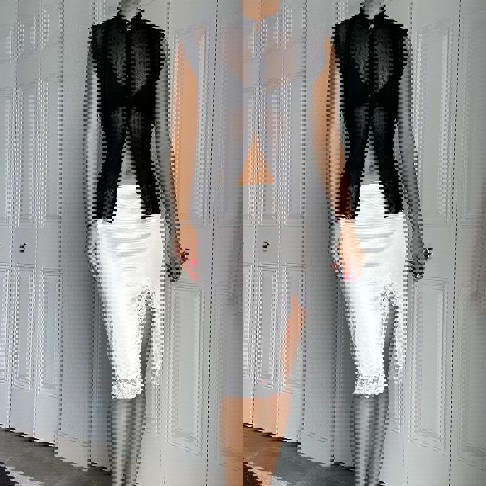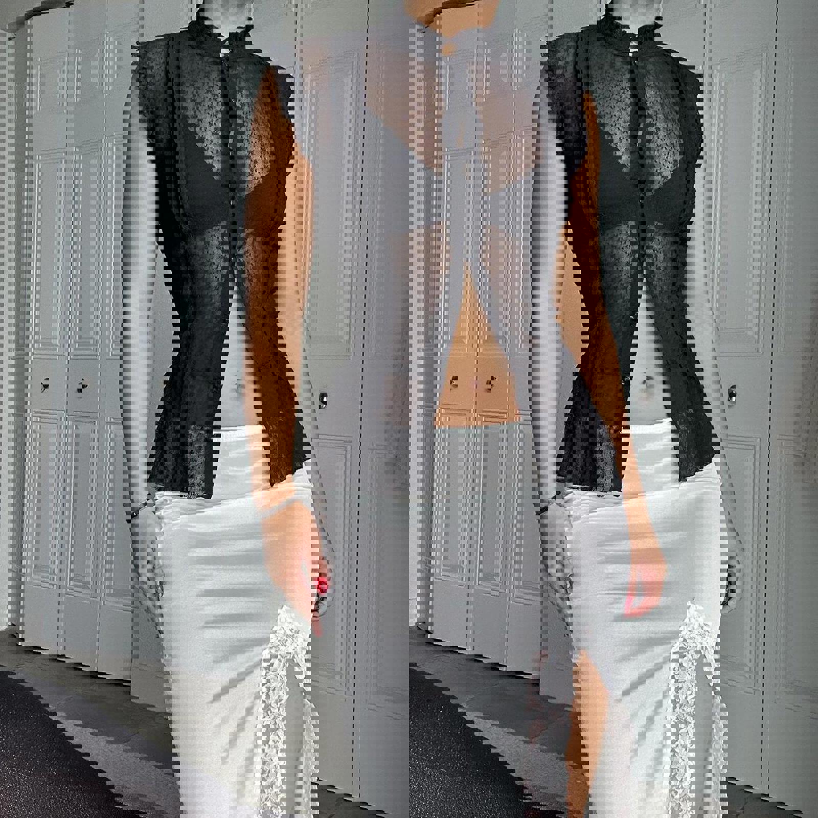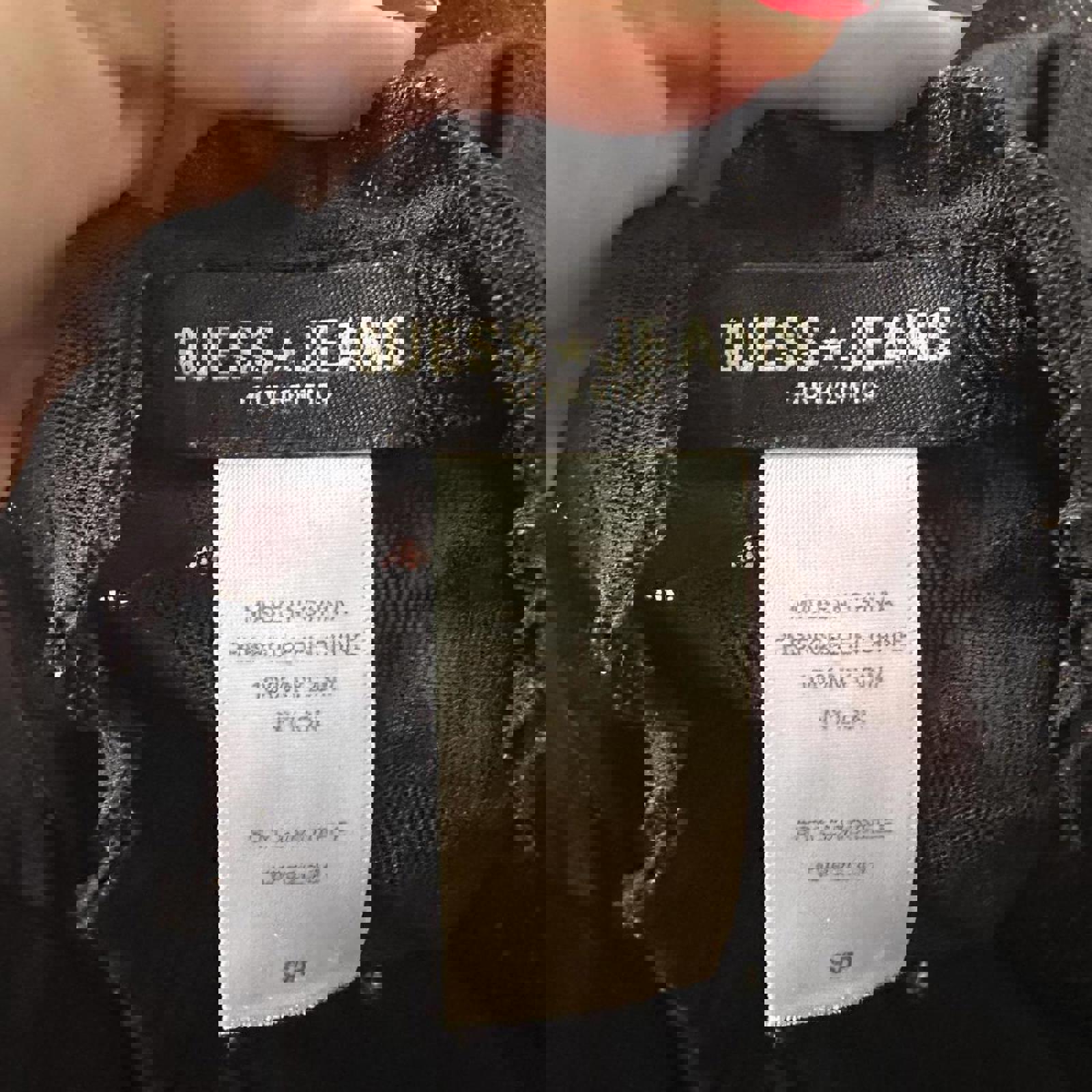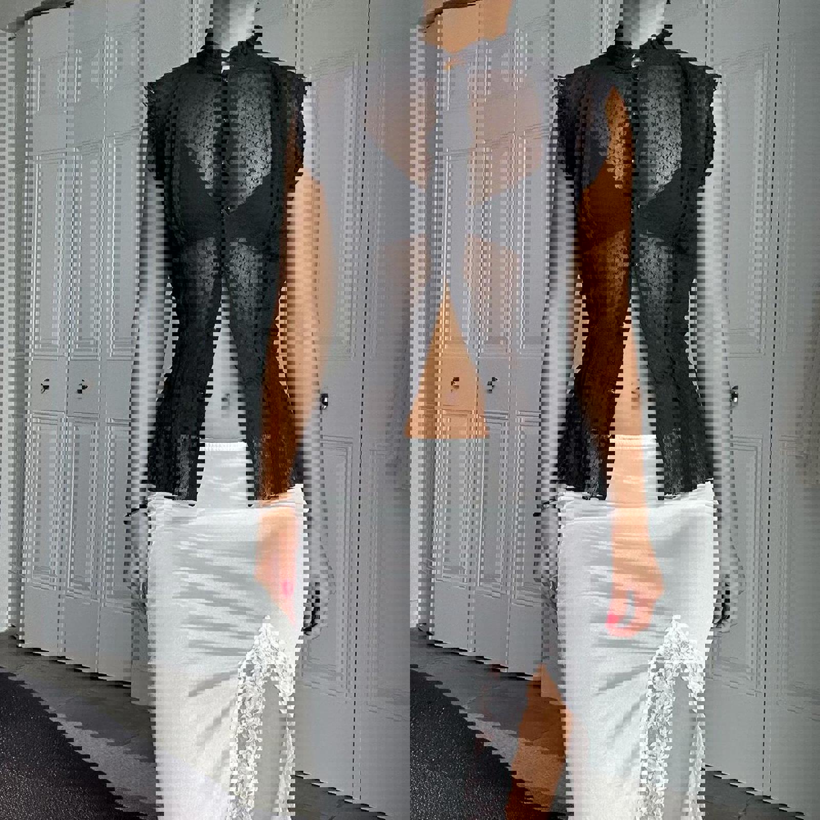 687. Guess jeans Black mesh blouse with lace trim and button up front