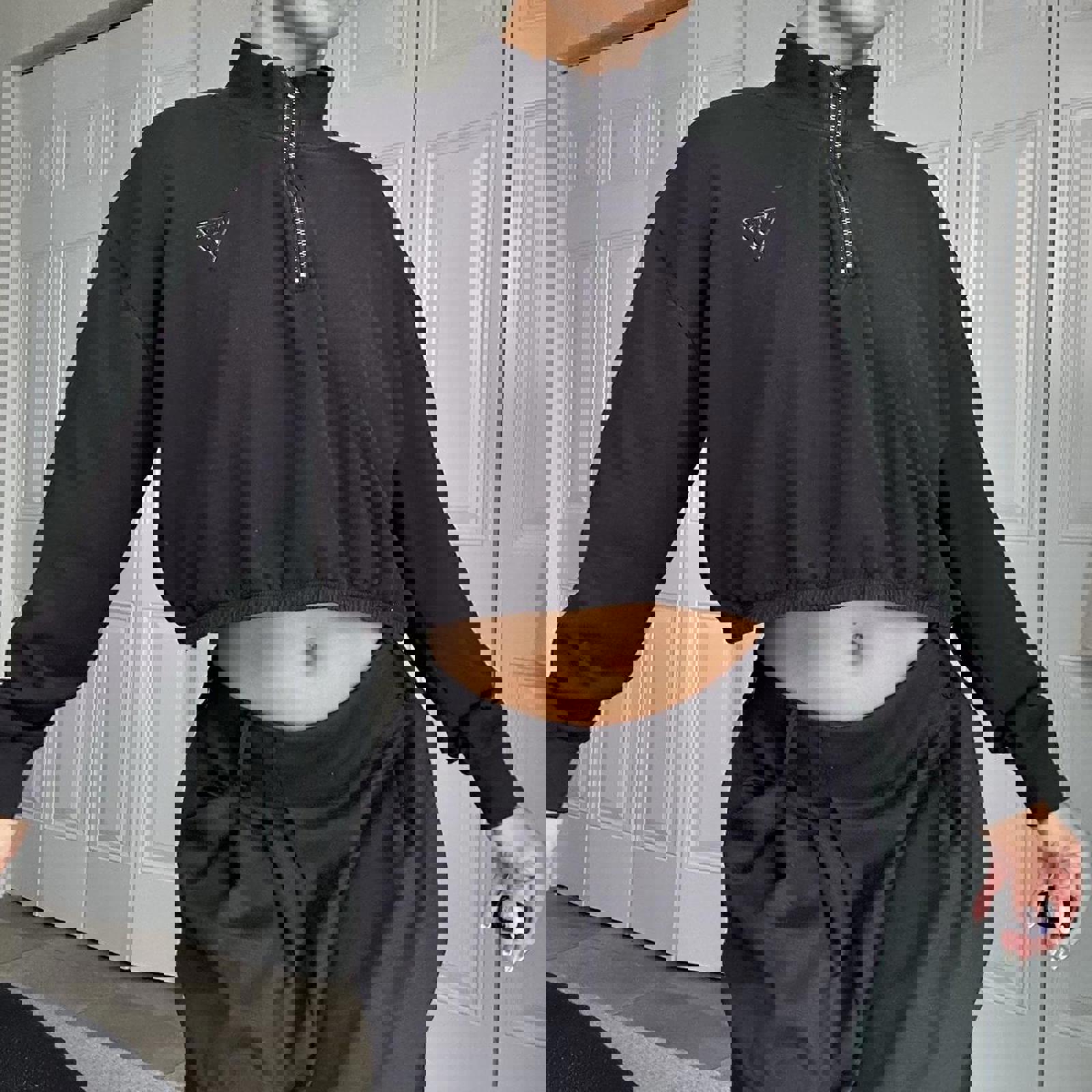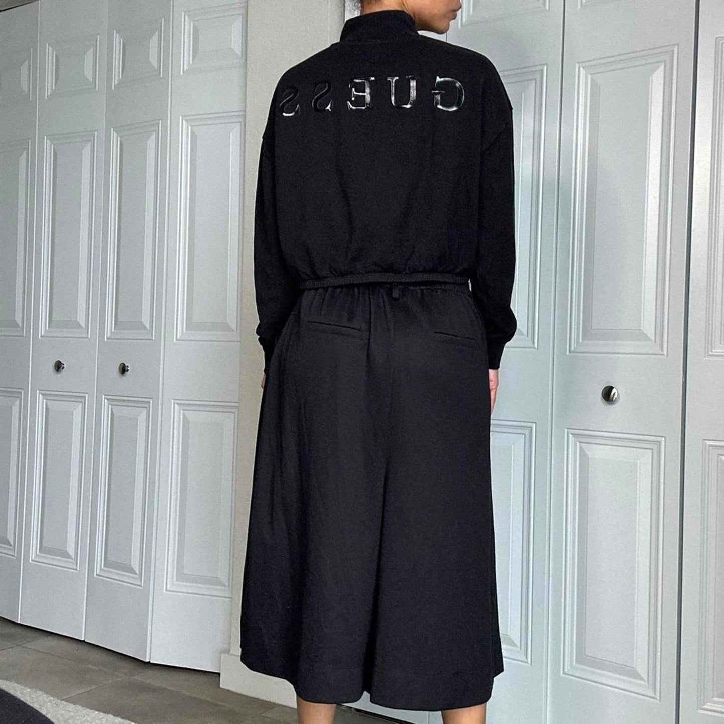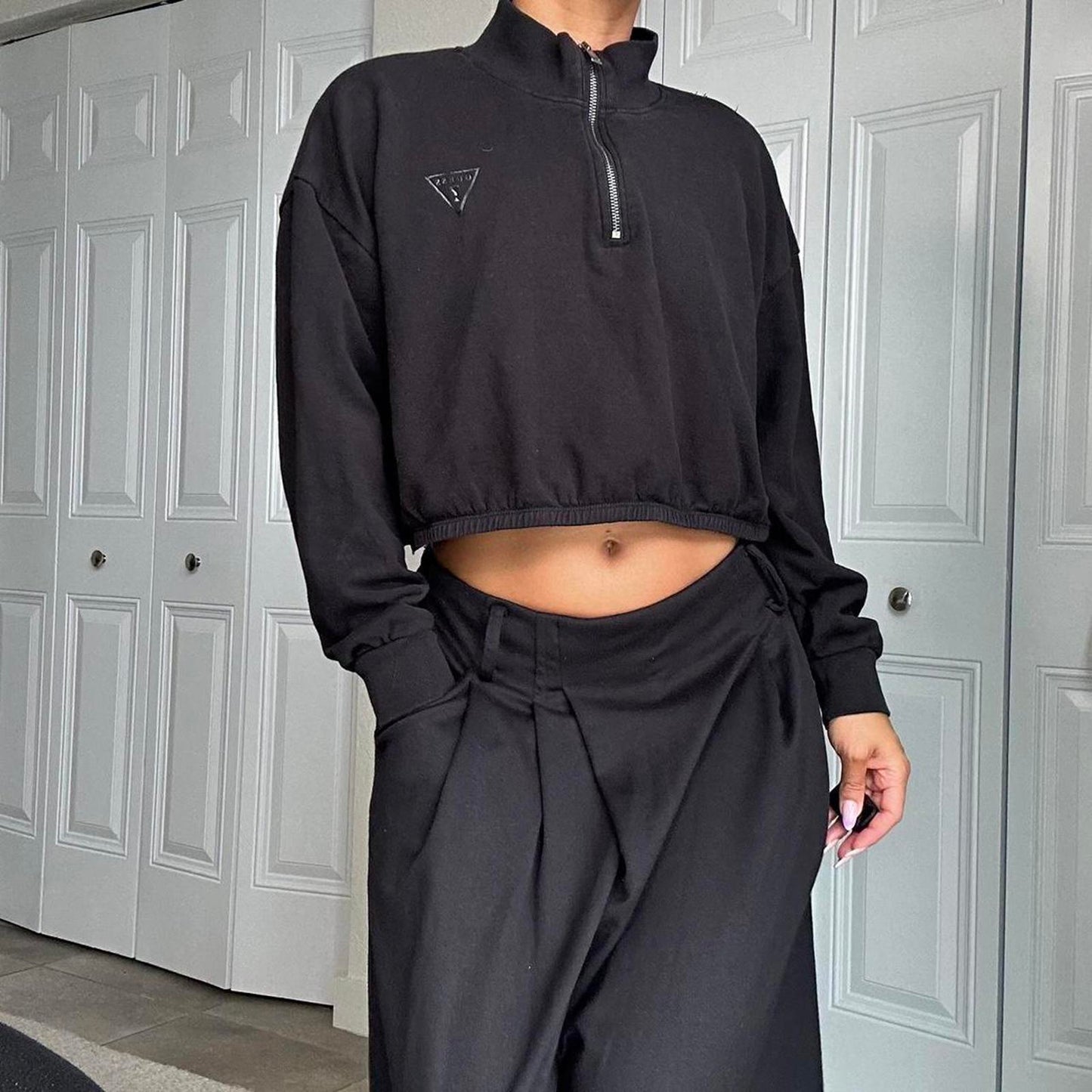 476. Guess black cropped quarter zip sweater it is a size large but shown on a small so depends on desired fit