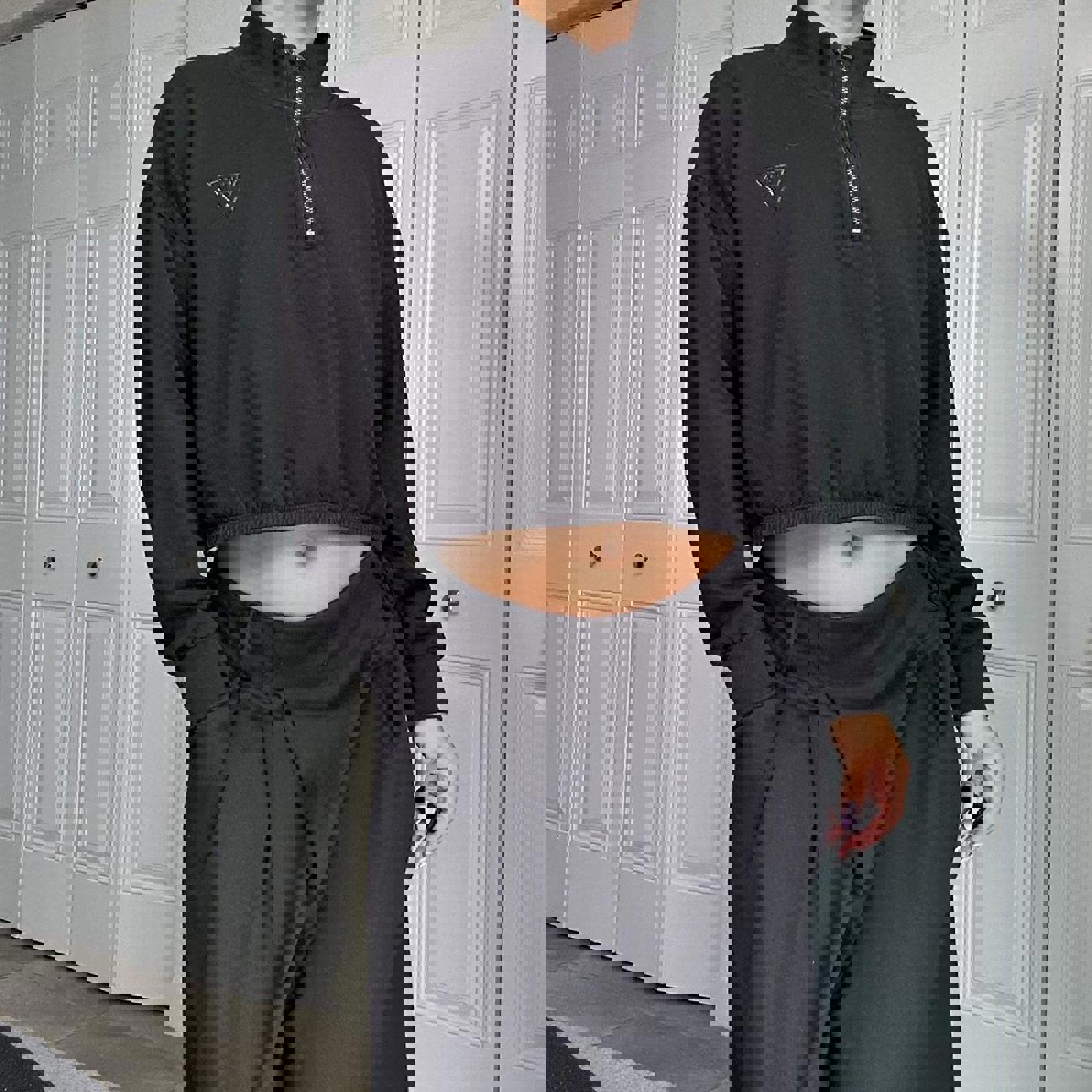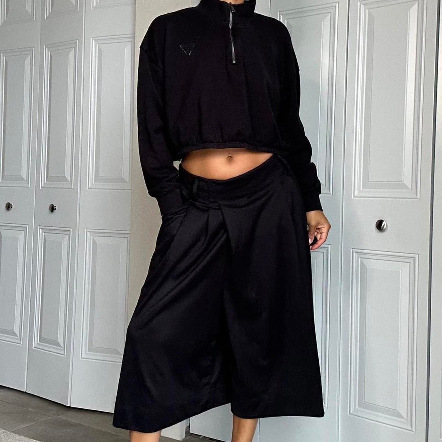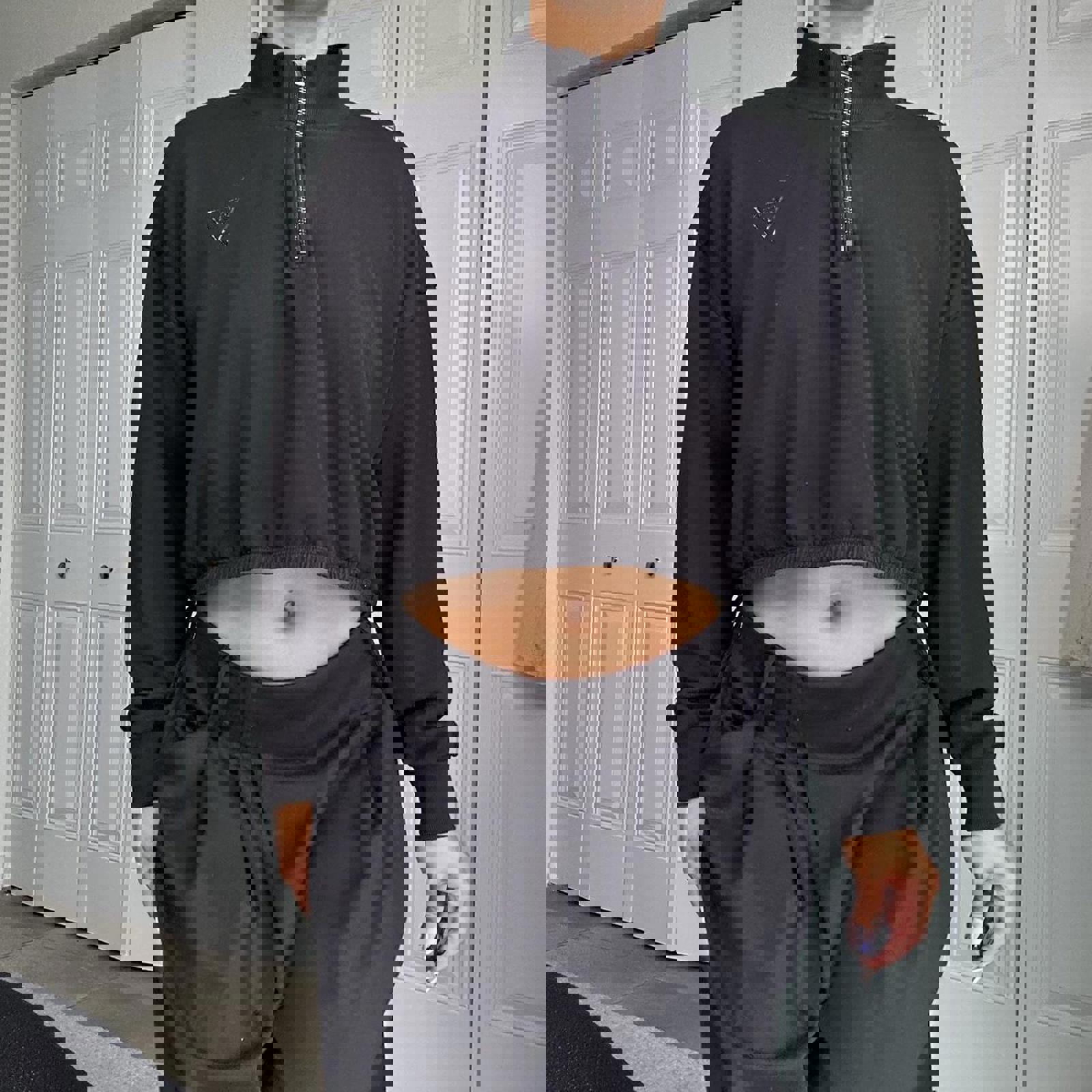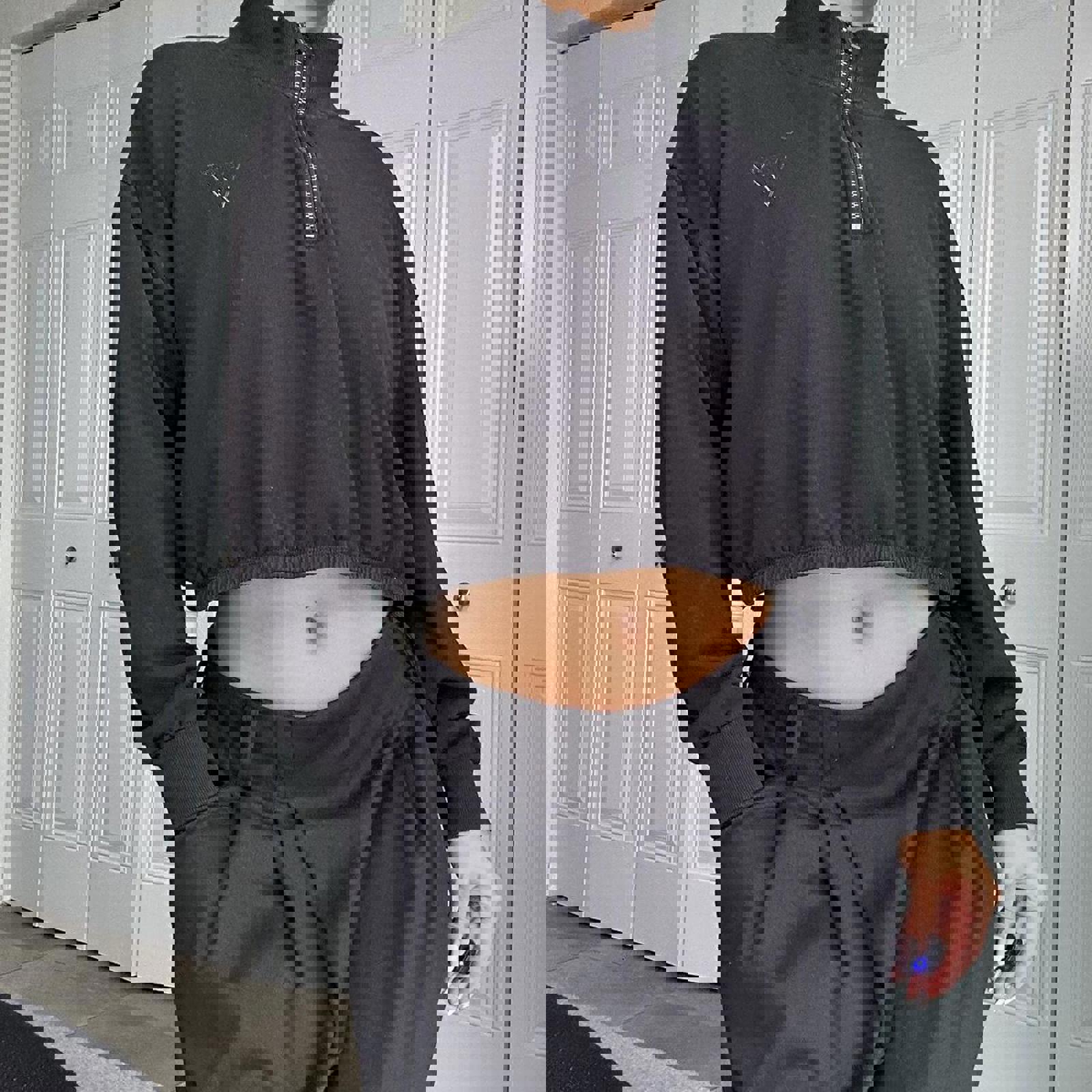 476. Guess black cropped quarter zip sweater it is a size large but shown on a small so depends on desired fit