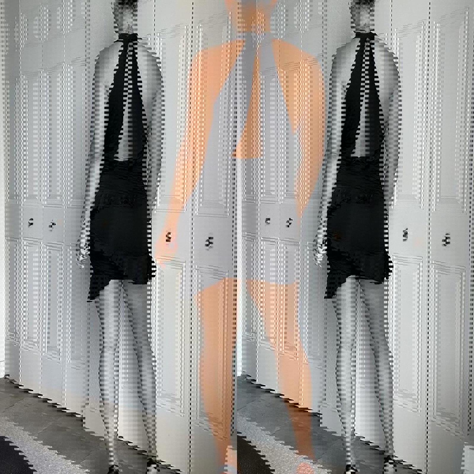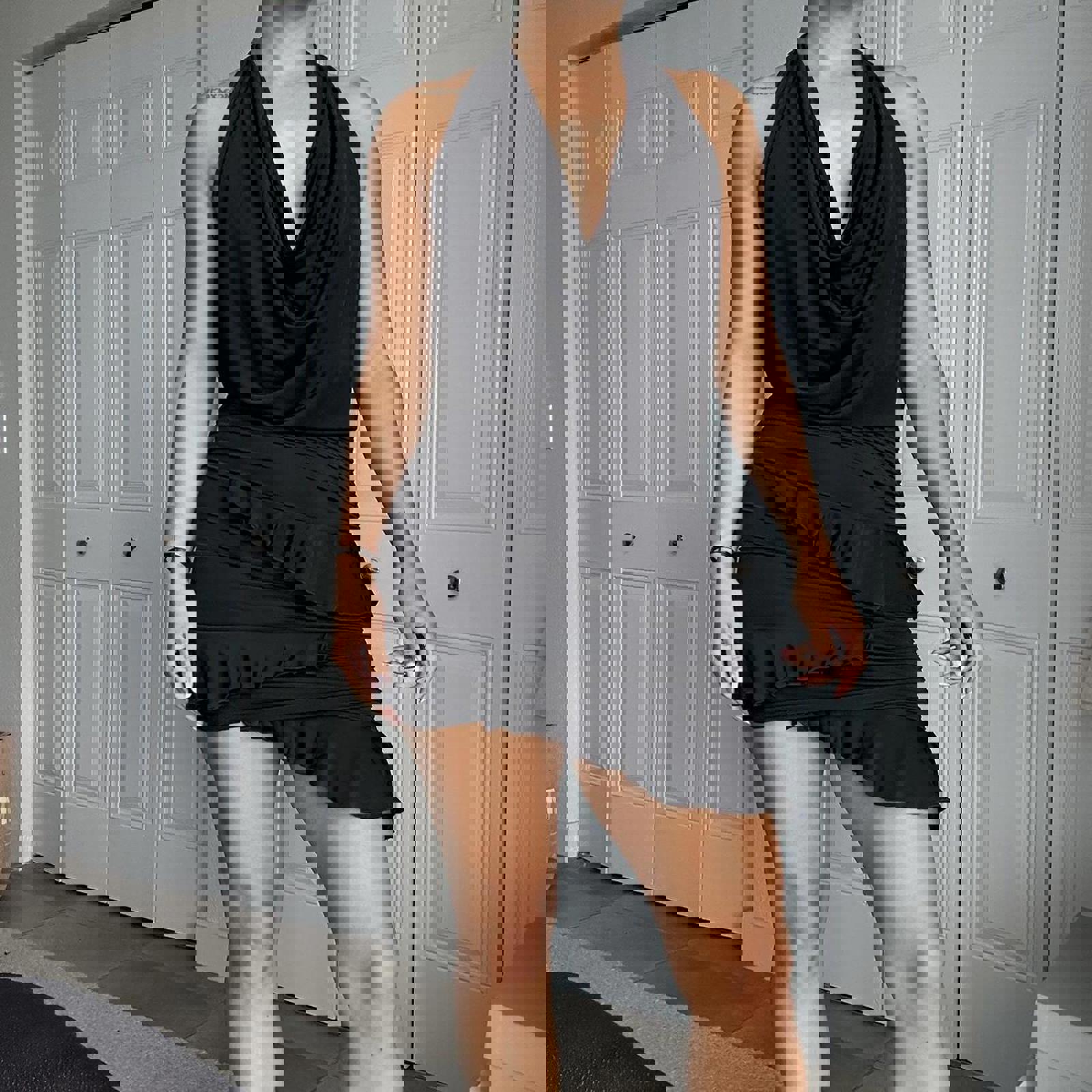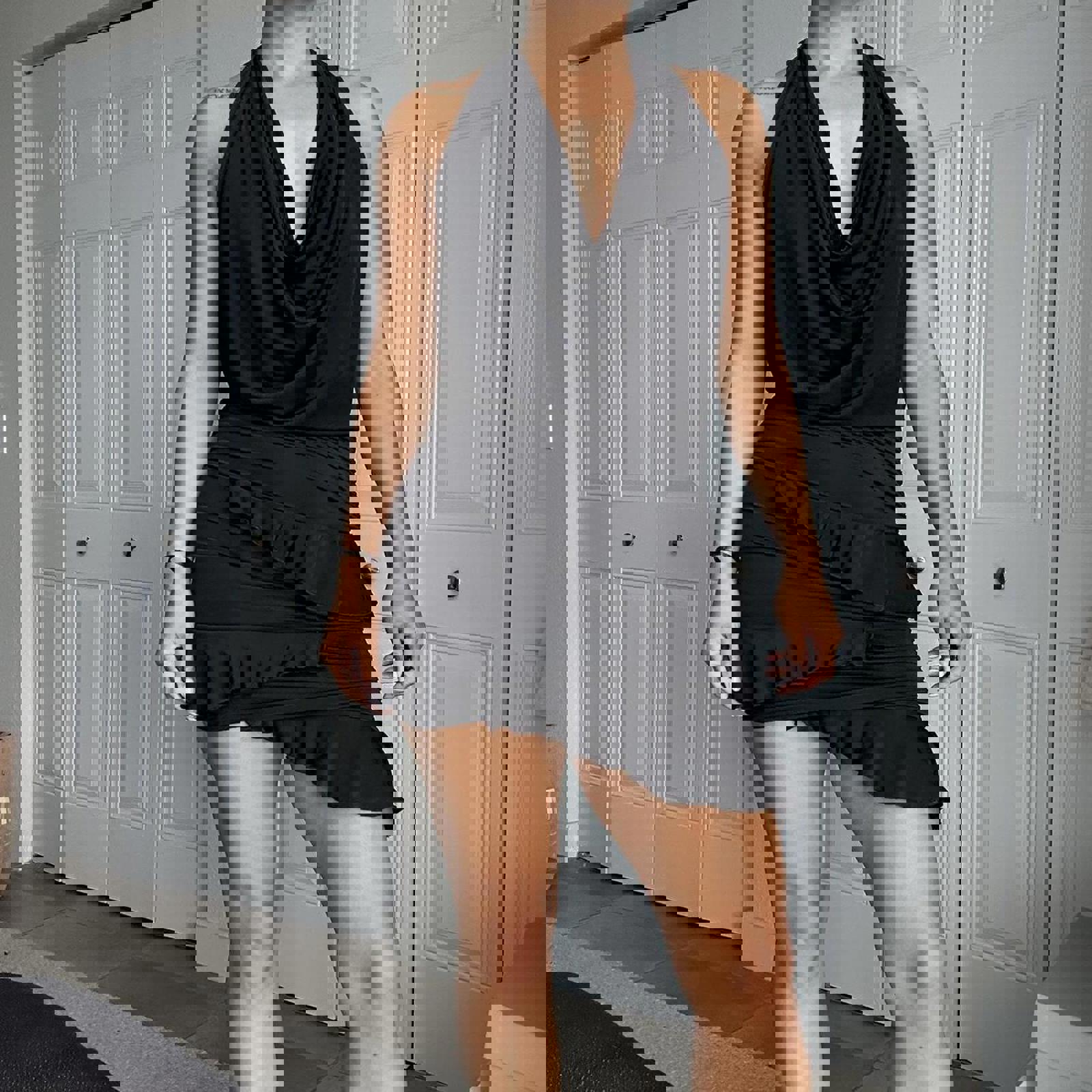 354. Vintage Guess Collection cowl neck dress with open back and ruffle skirt. Size xs fits as such