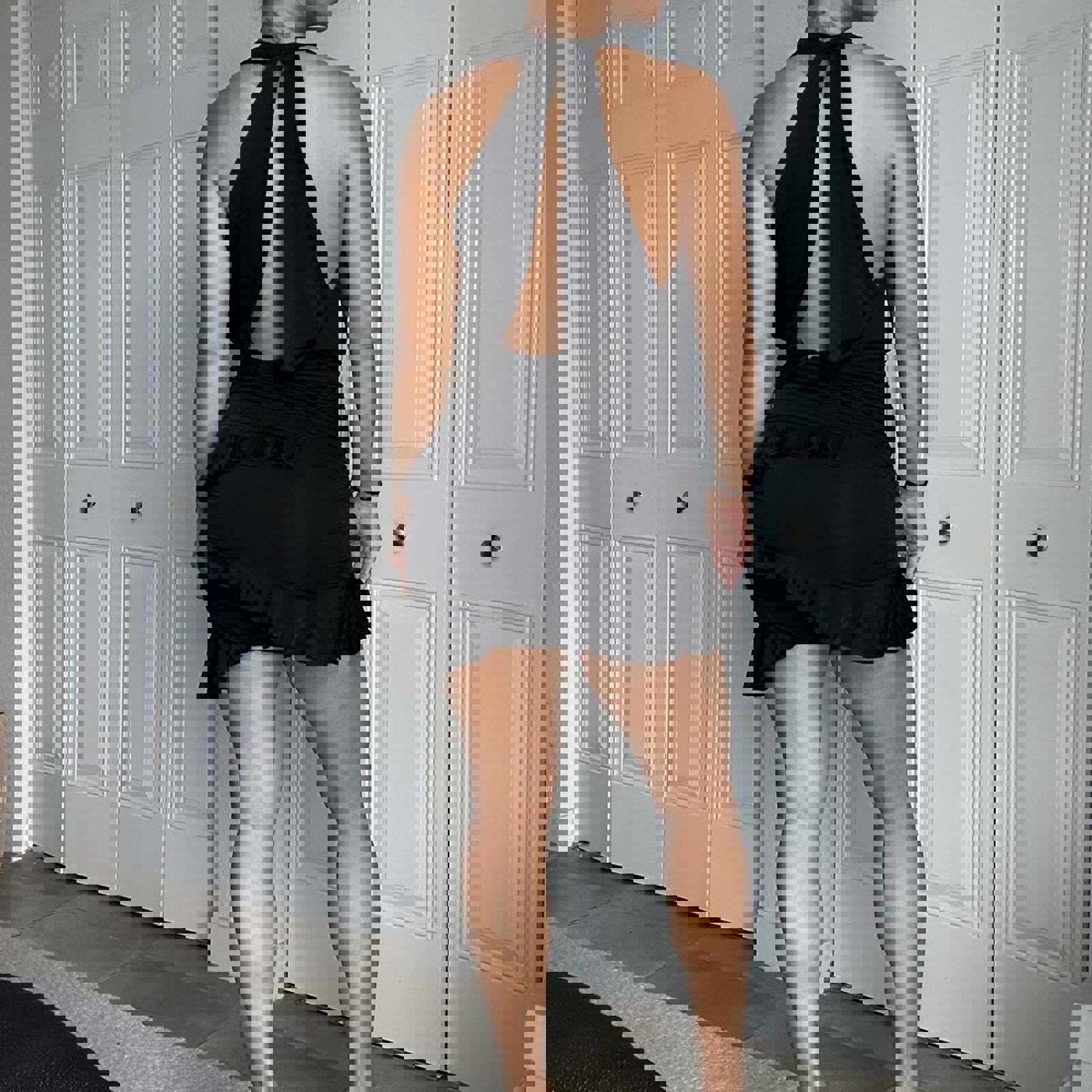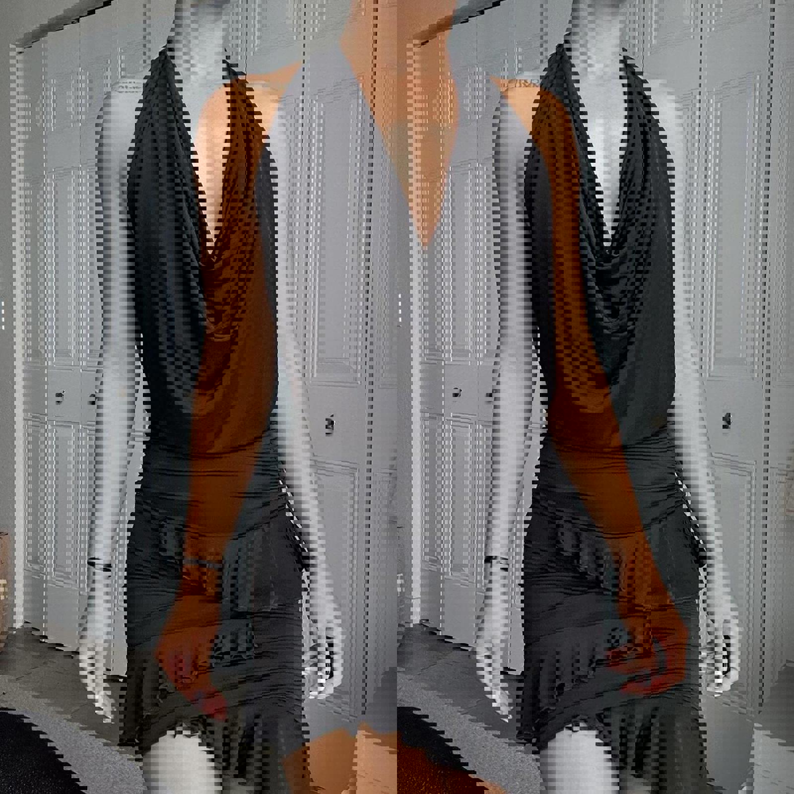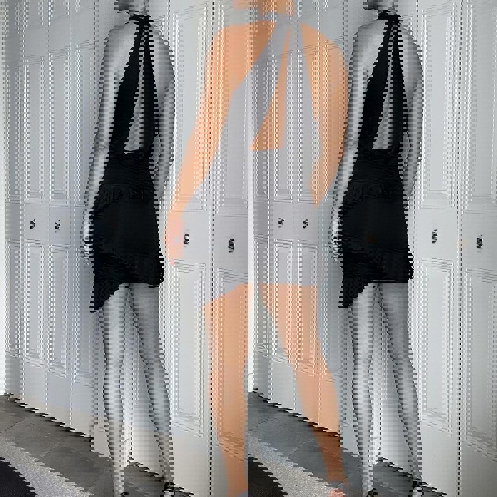 354. Vintage Guess Collection cowl neck dress with open back and ruffle skirt. Size xs fits as such