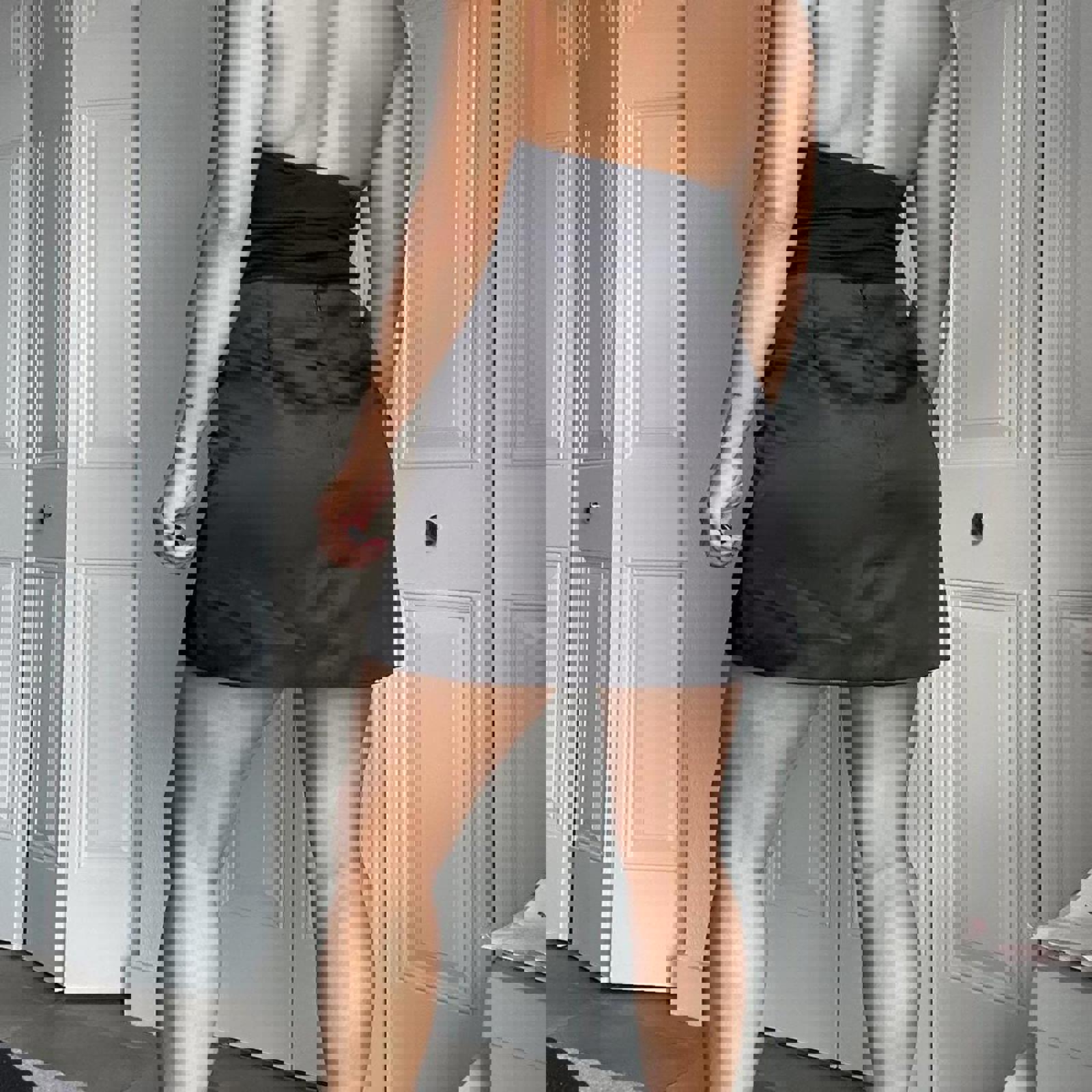 436. Black H&M satin miniskirt with bow detailing. Size 8, fits like a medium