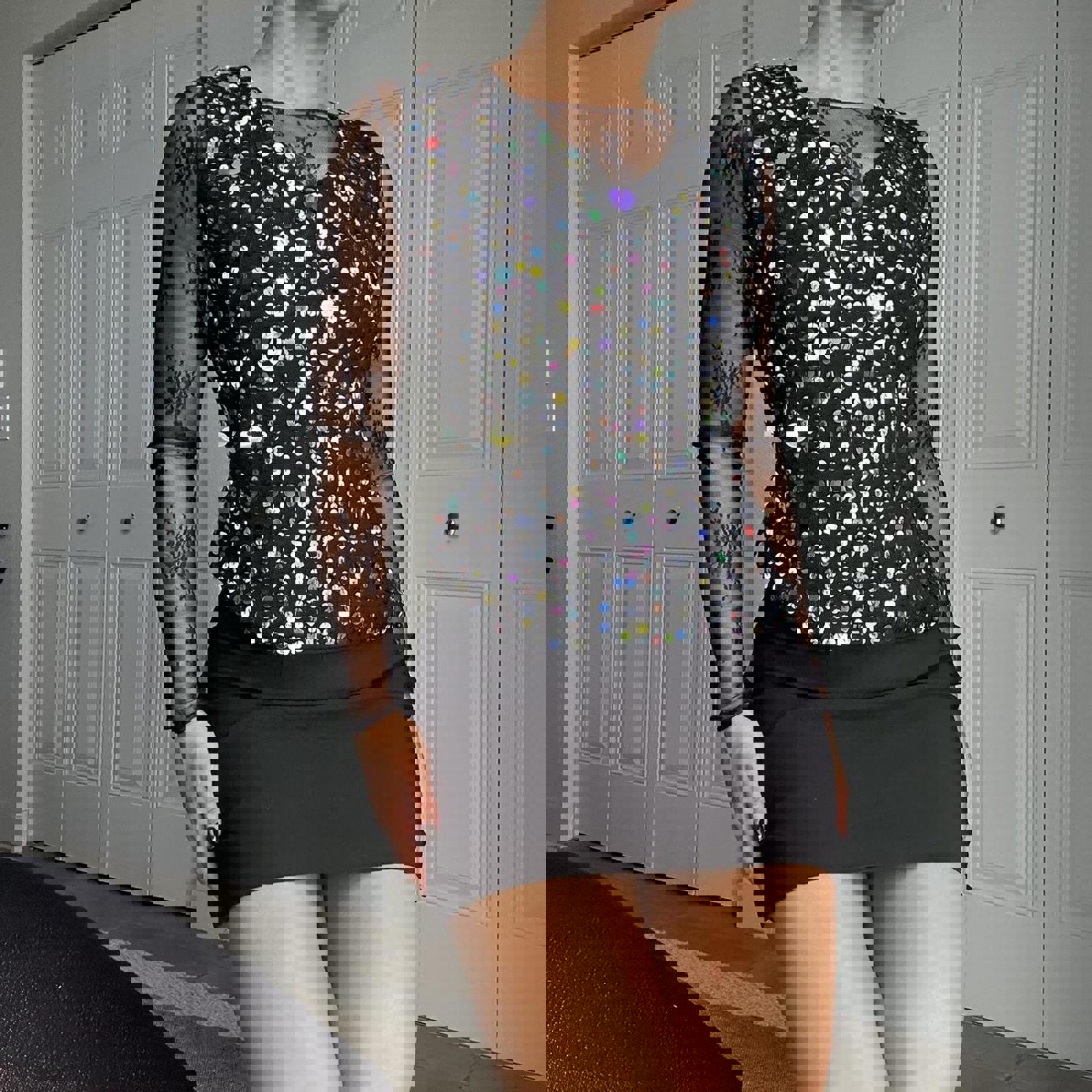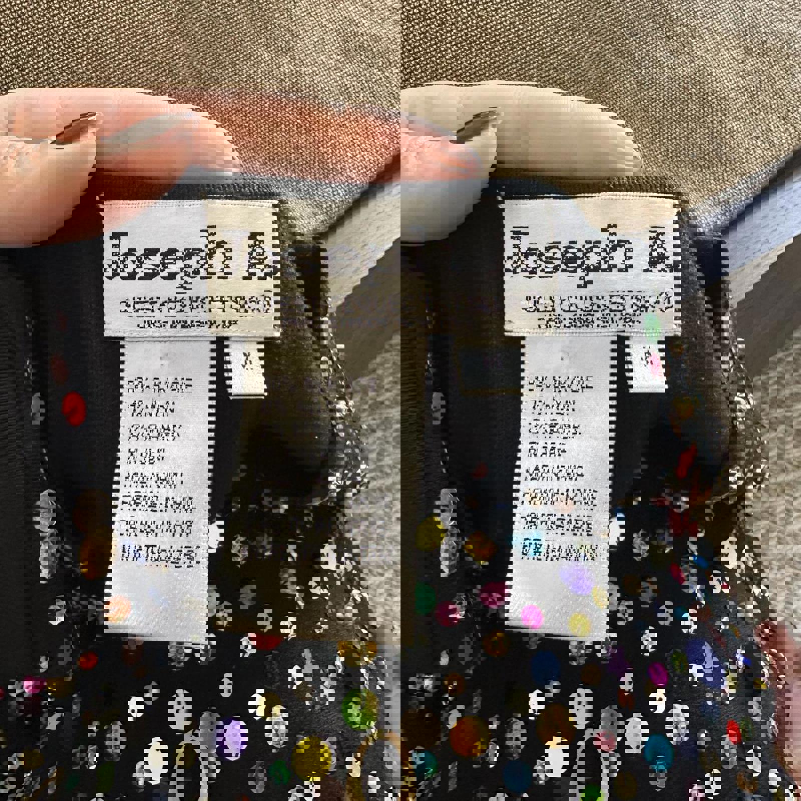 797. Joseph Colorful Sequin Best in Great Condition, True Vintage, Really Cute. Size Medium. 80% Silk, 17% Nylon, 3% Spandex. Measurements are listed below: