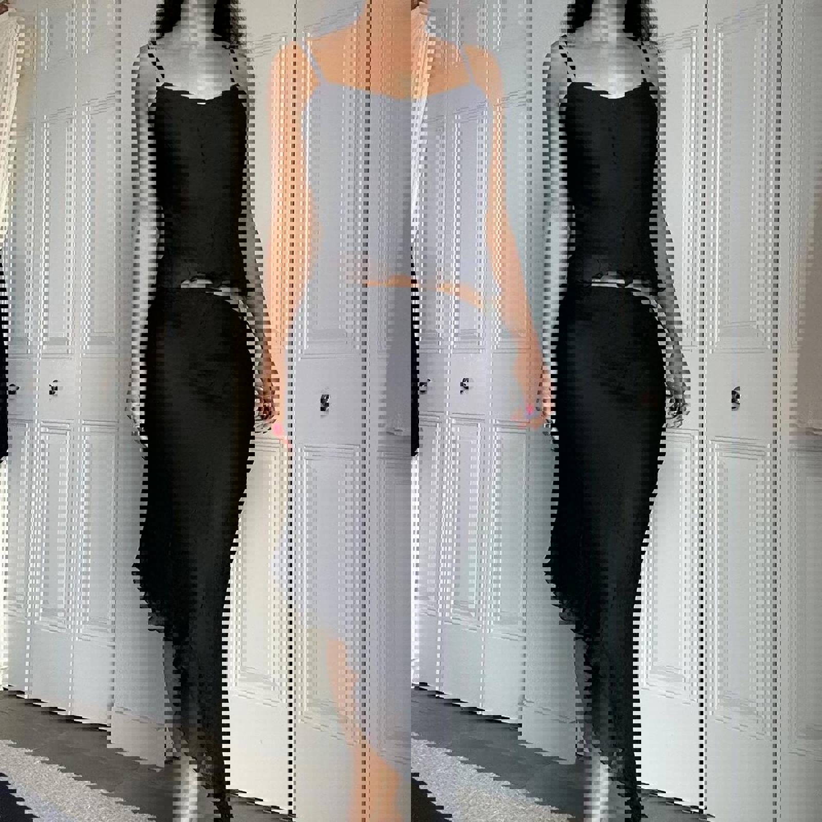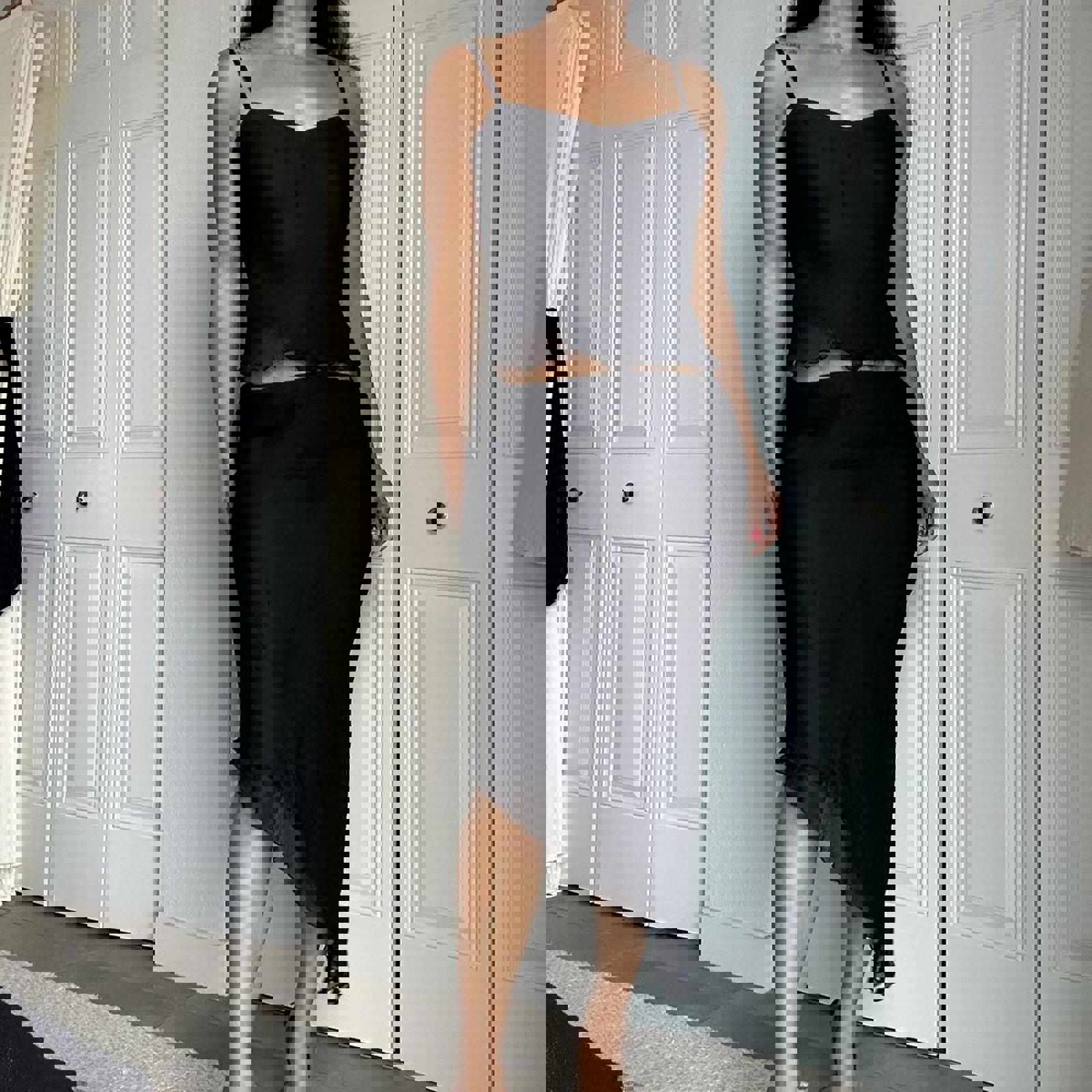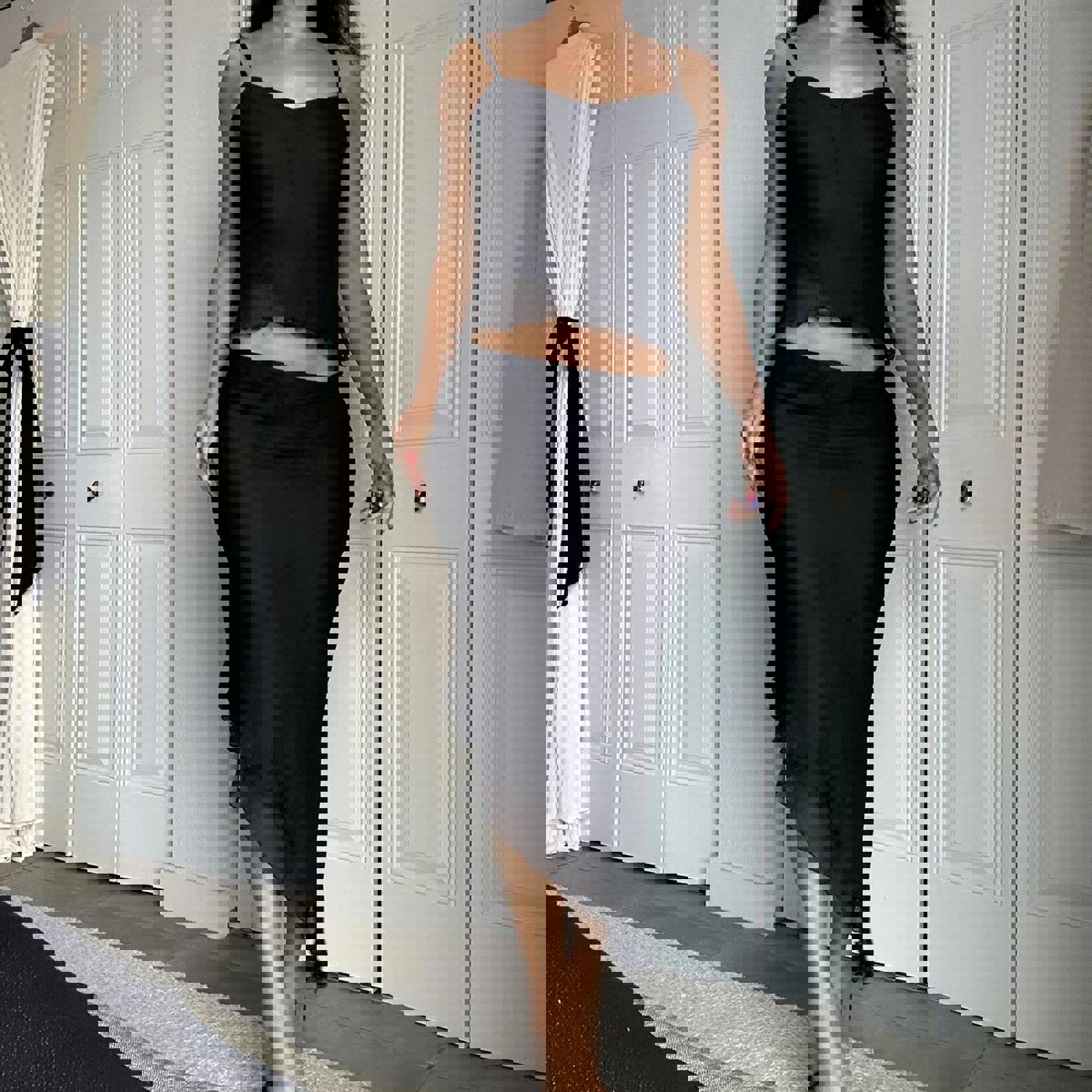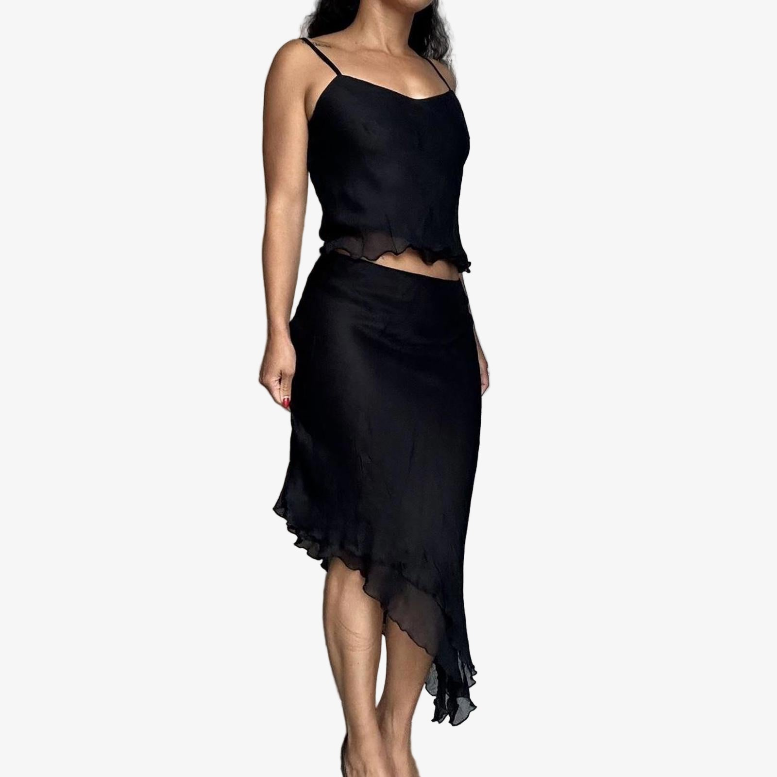 726. Just Cavalli black mesh material skirt set in absolutely perfect condition. True vintage top is a size 40 and bottom is a size 42. Just the cutest set ever there. Bottom does have an elastic waistband as well. Measurements listed below for bottom: