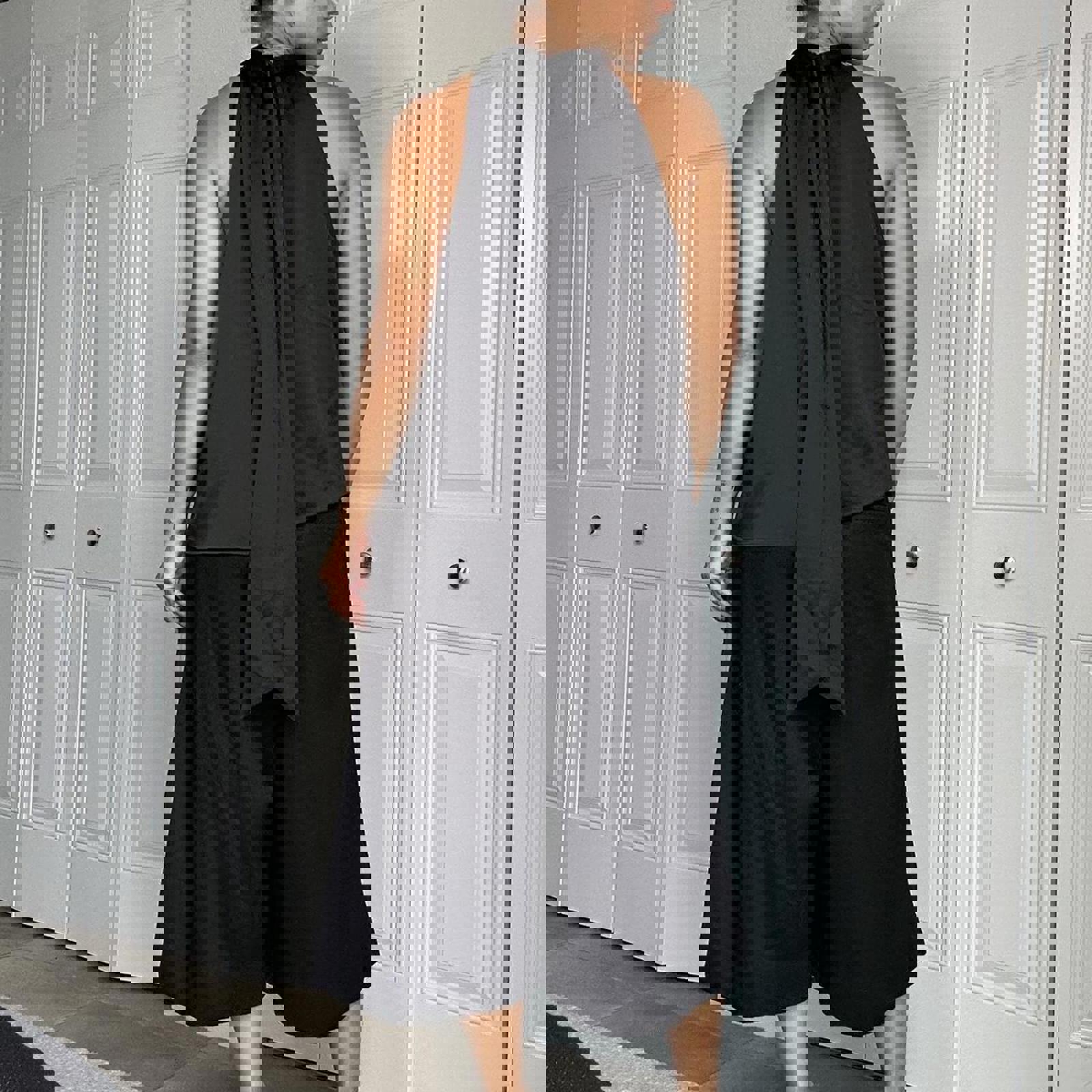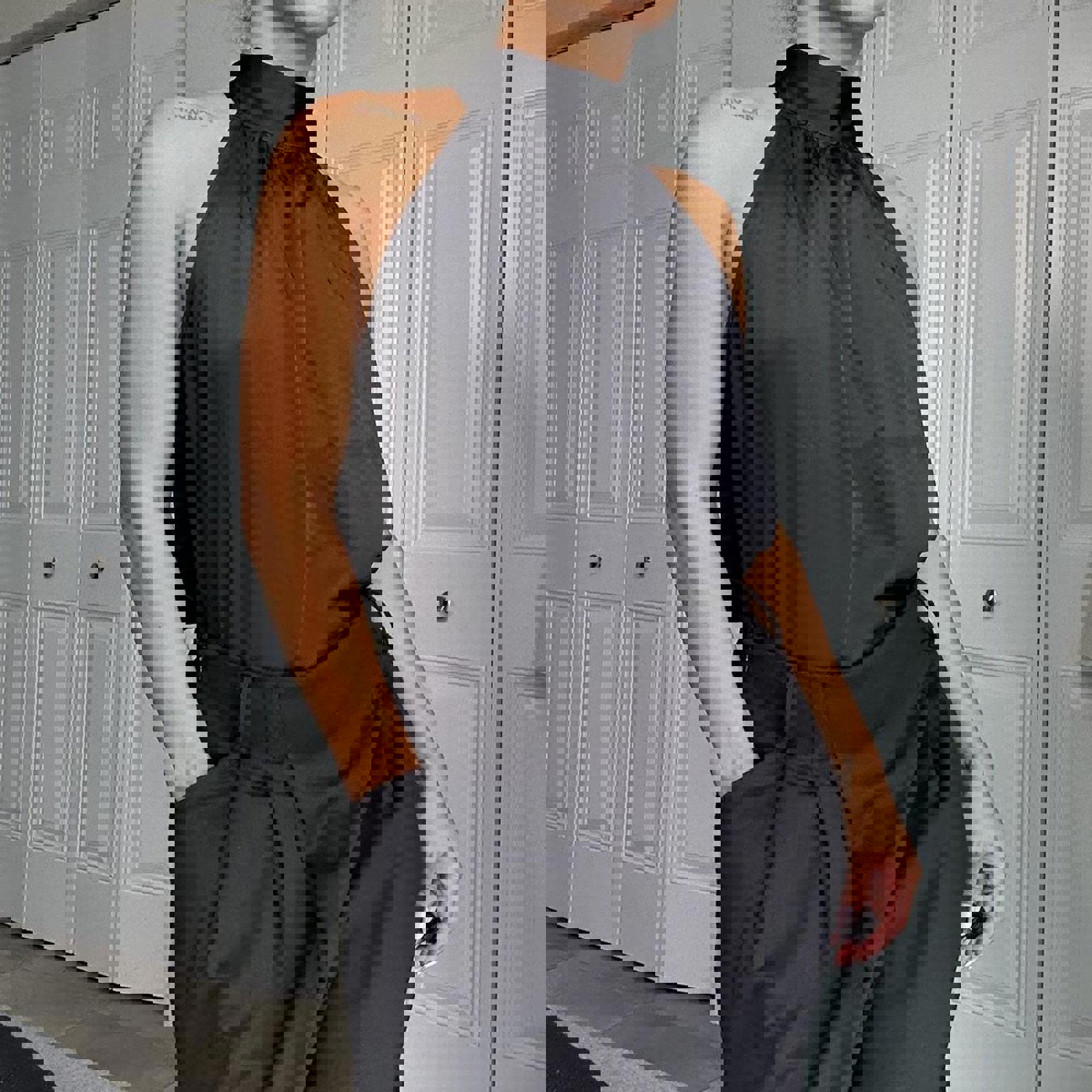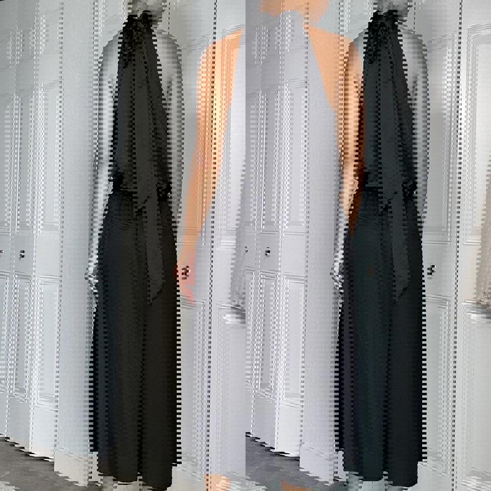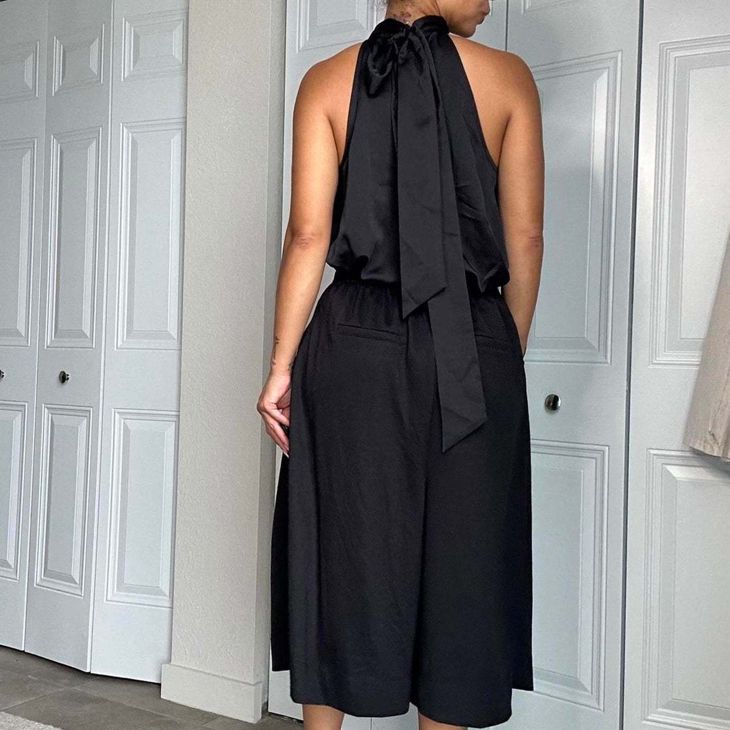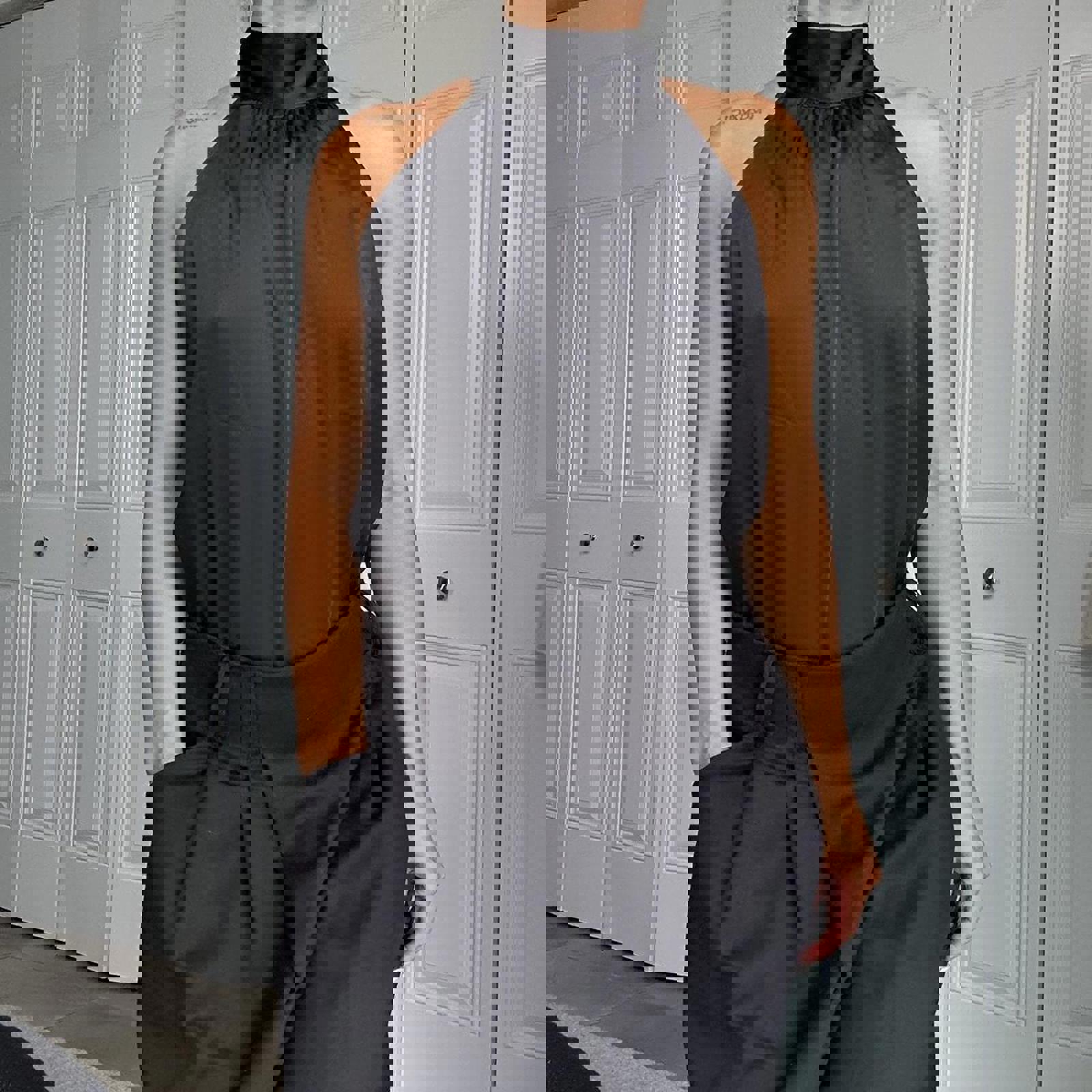 482. Black satin halter top with high neck #halterneck size large but shown on a small