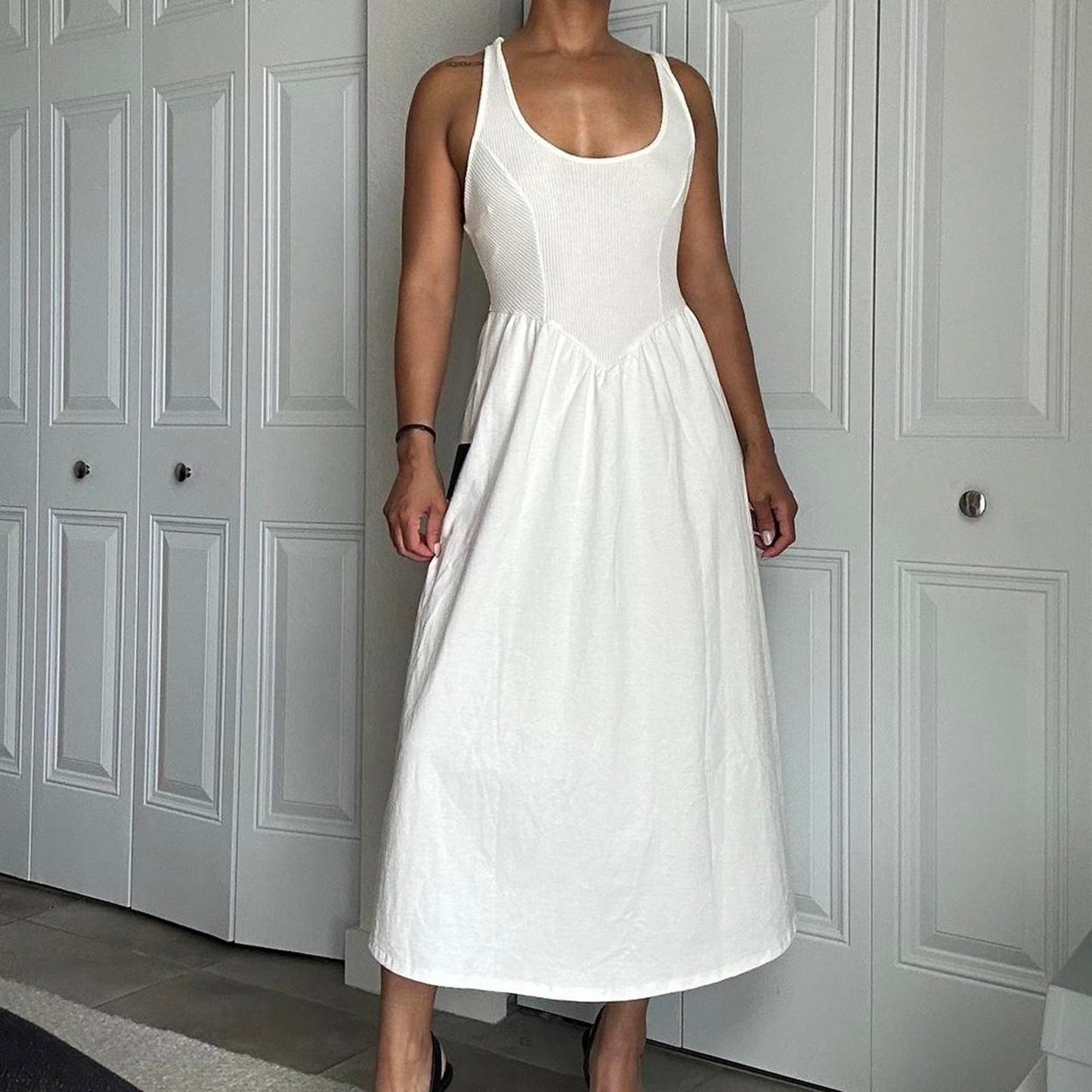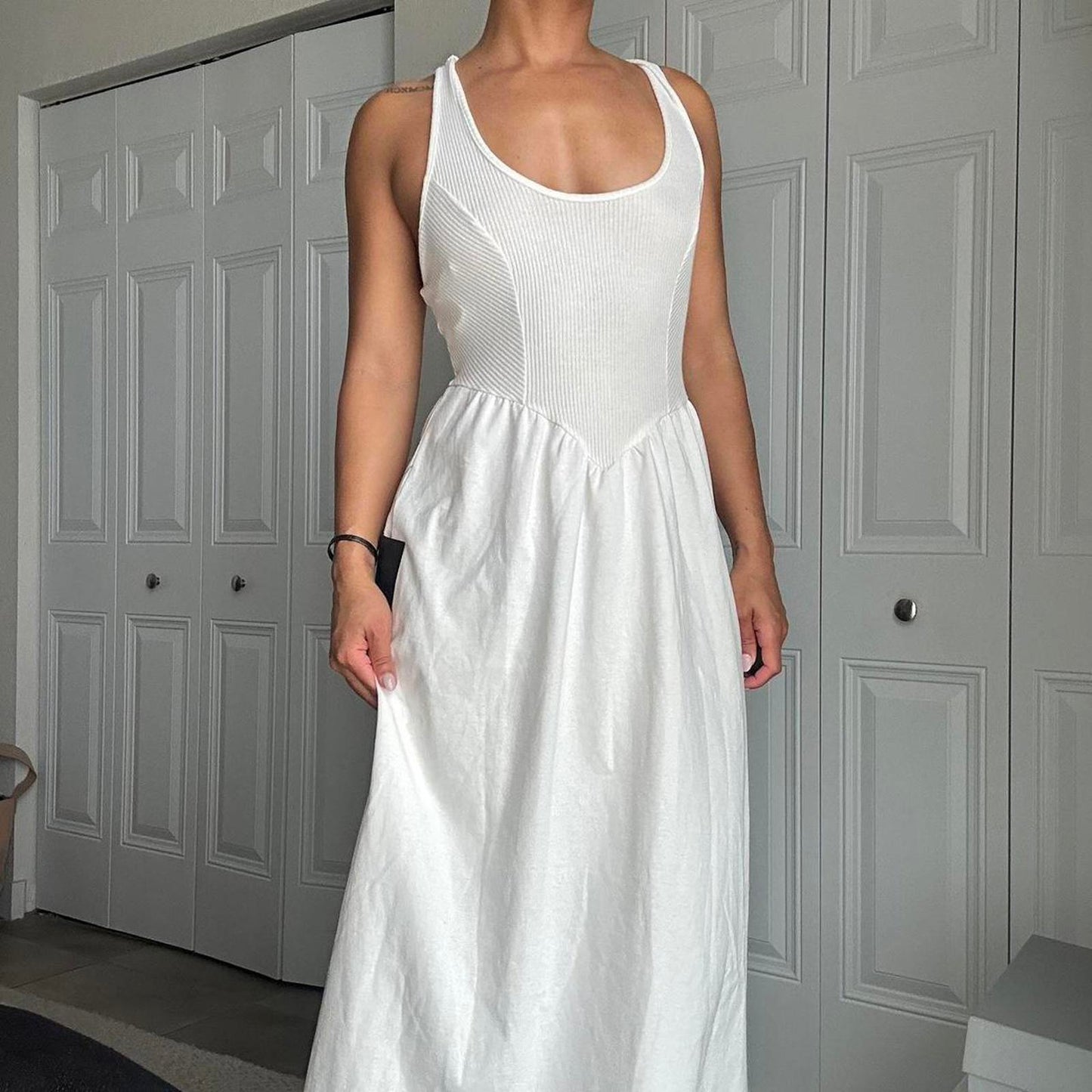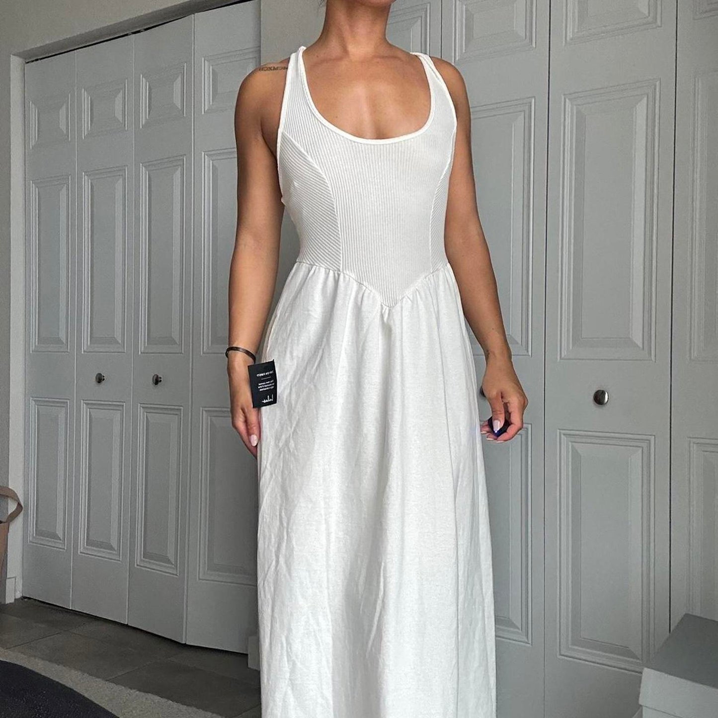 350. Lulu’s 100% cotton dress in a size medium. Tags are still attached. The dress is so perfect for summer, the top is ribbed and the bottom is solid. Top is semi, would be fine with some nipple covers