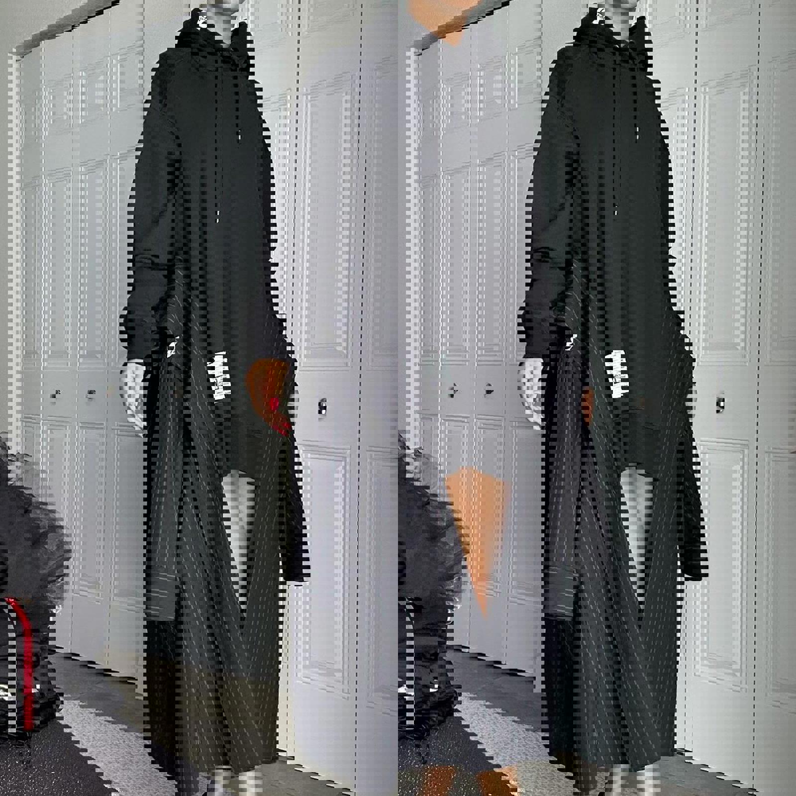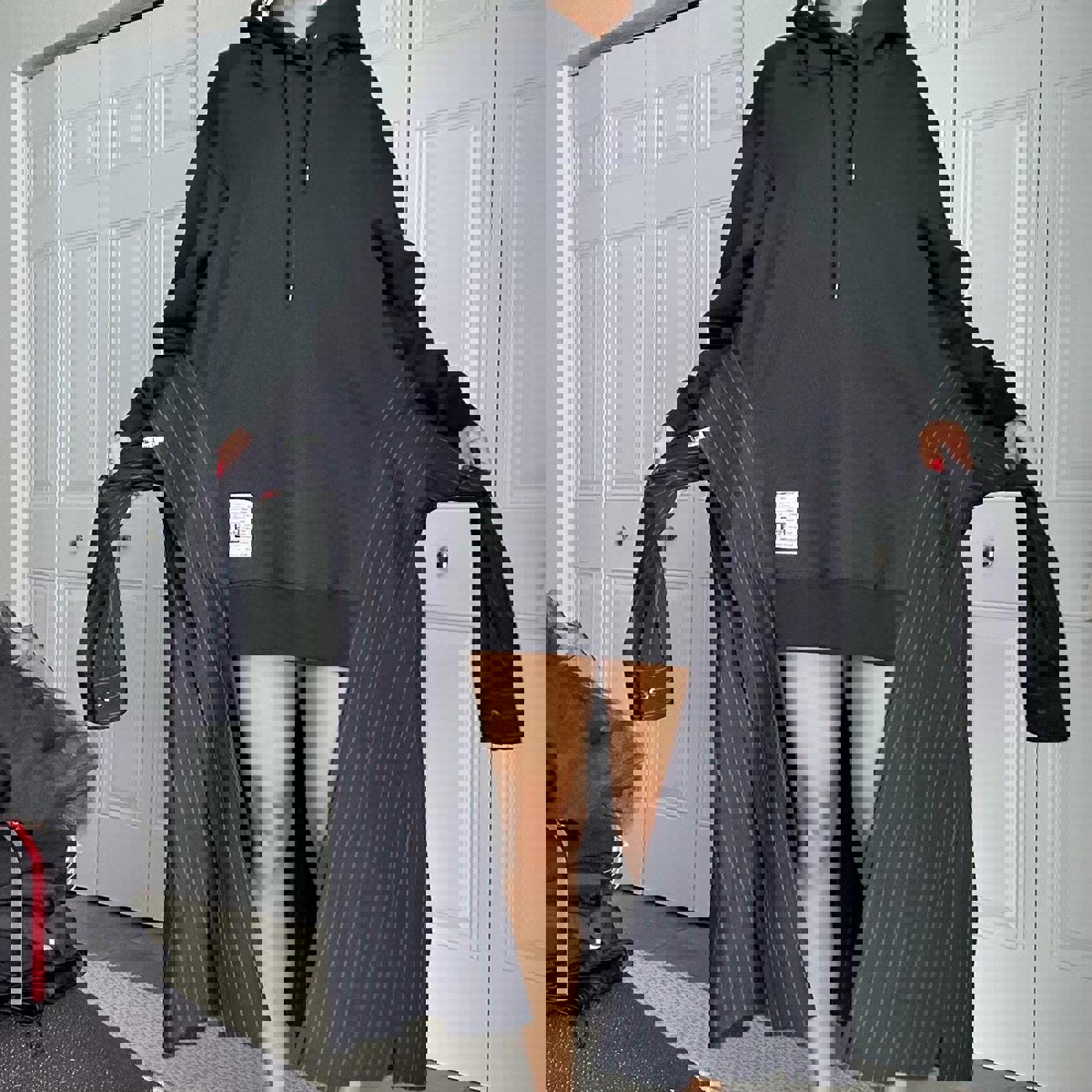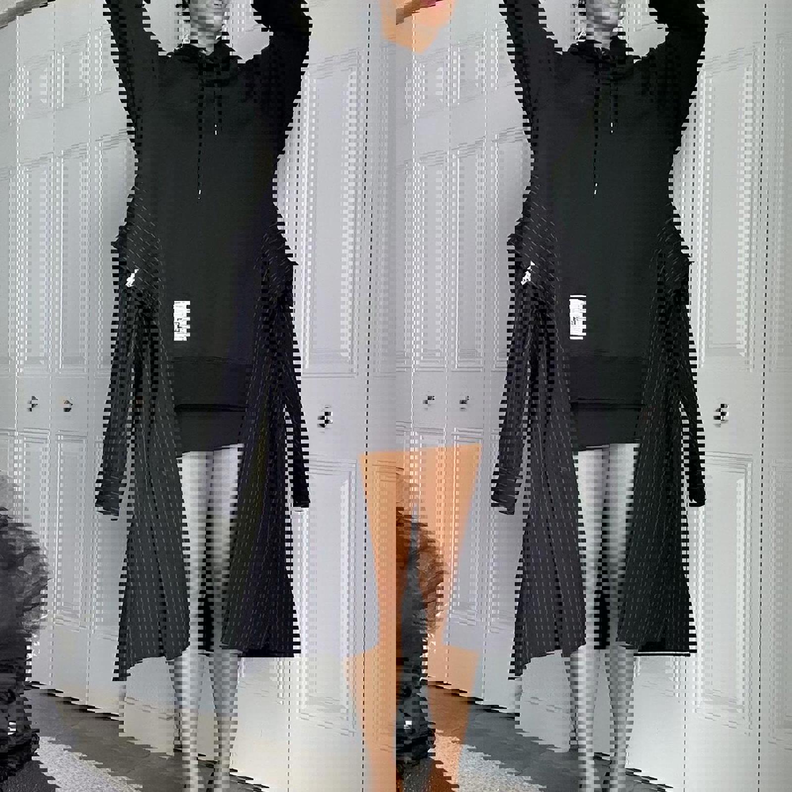This dress combines a sweatshirt hoodie with a striped shirt.