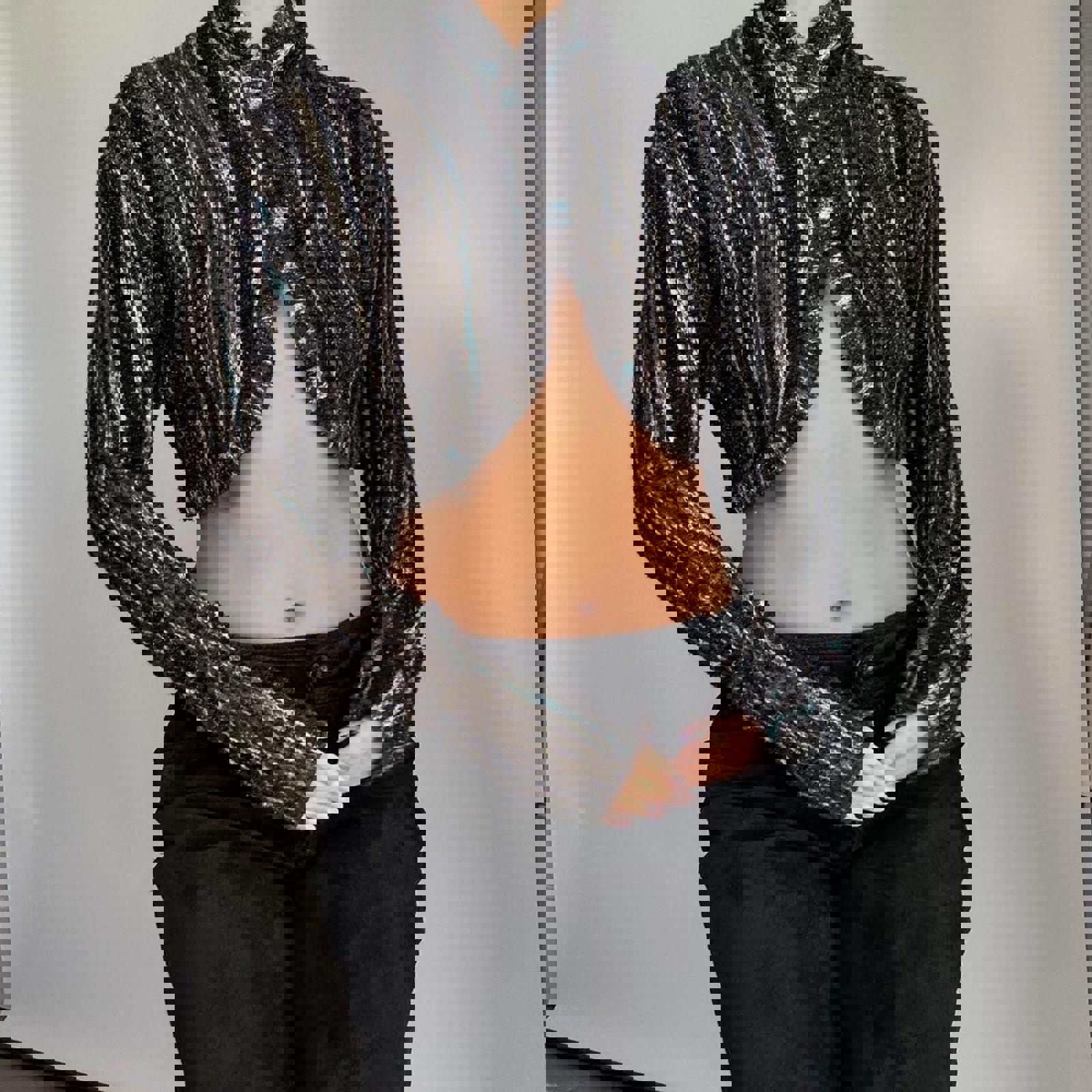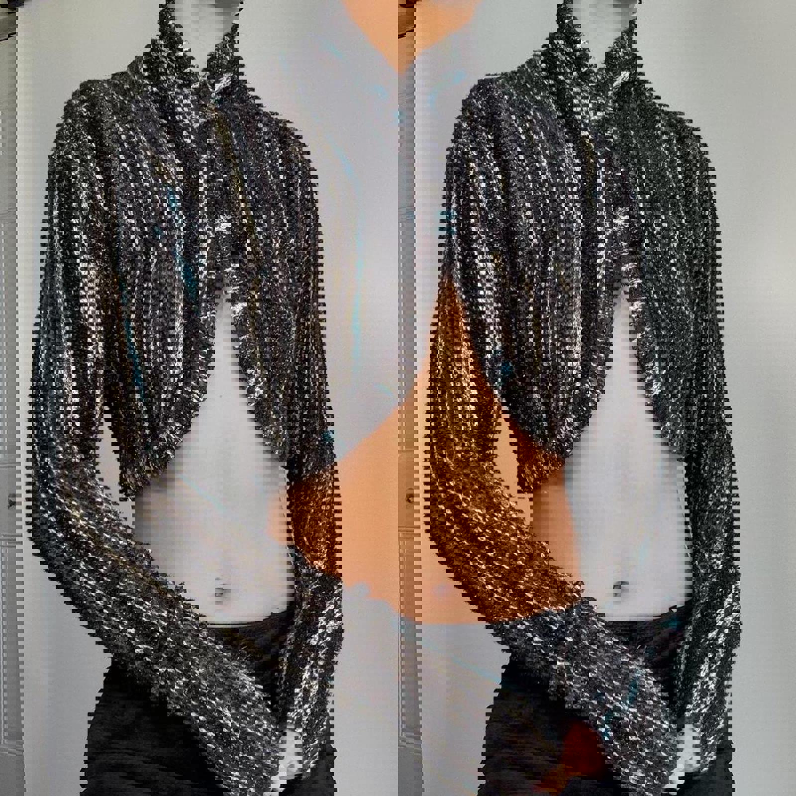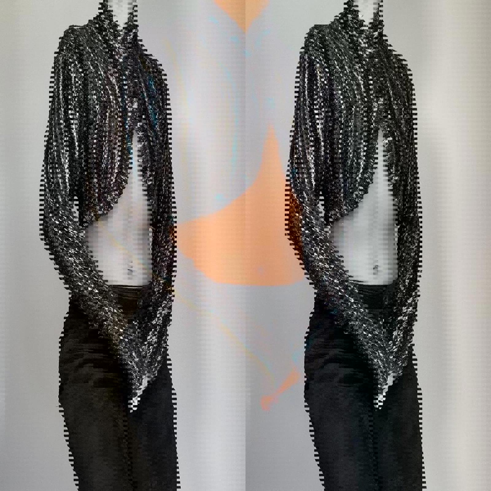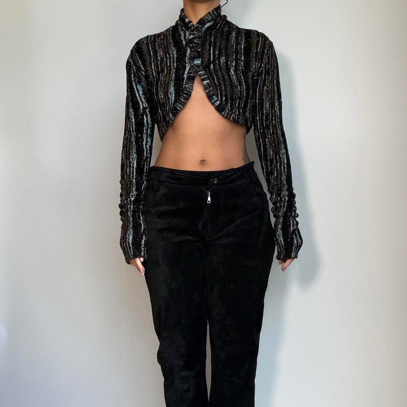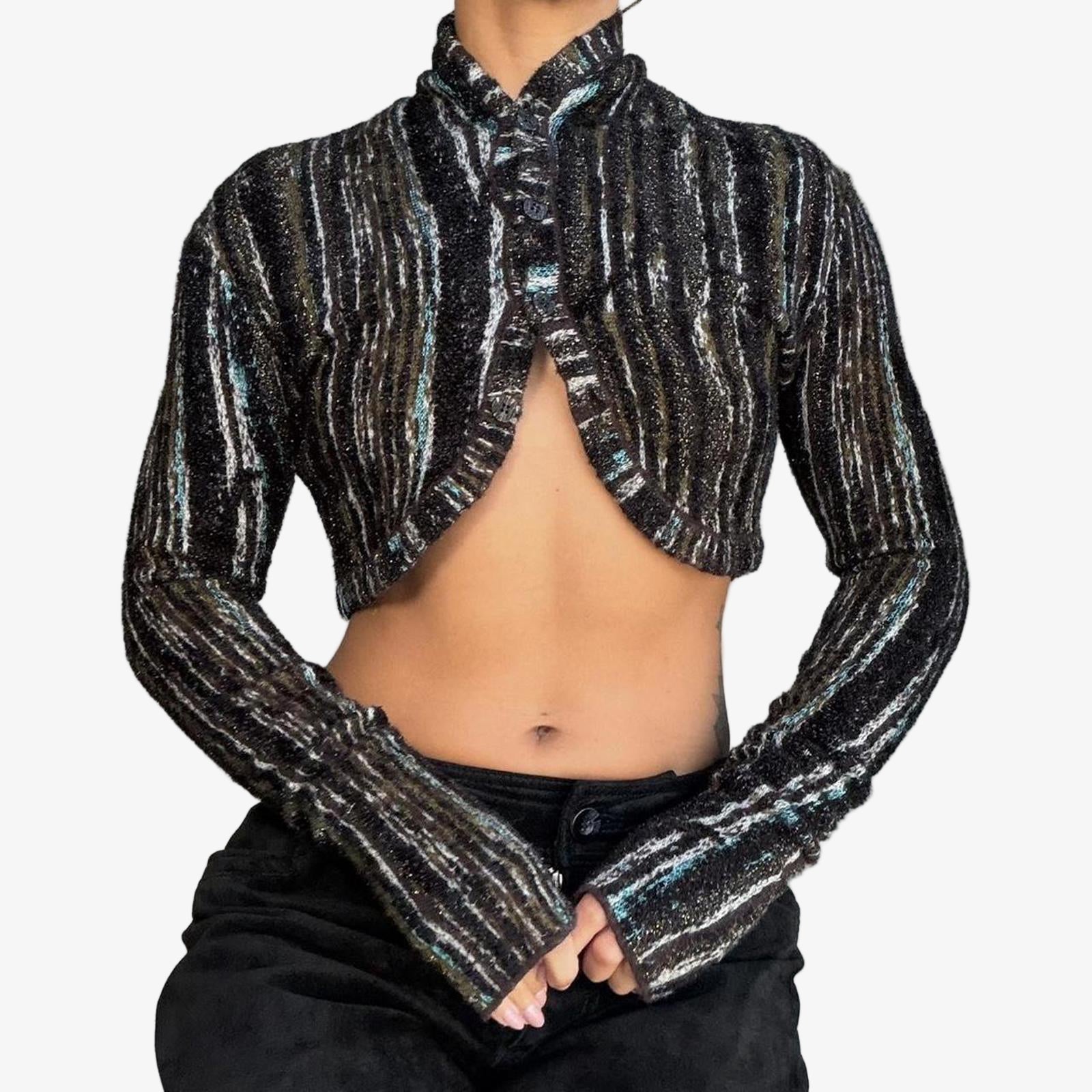 904. Missoni brown and teal knit high neck crop cardigan. Size 40 fits like a small