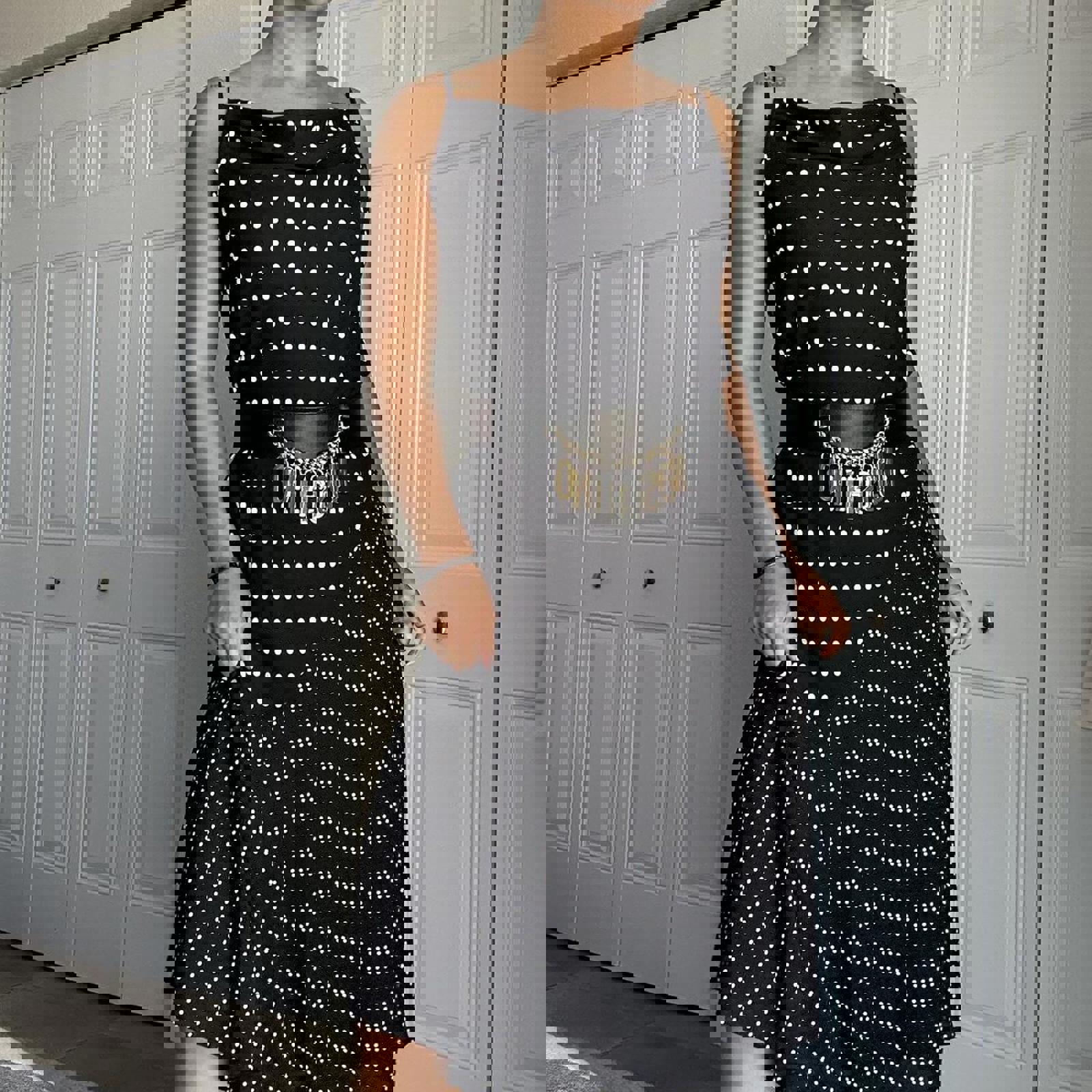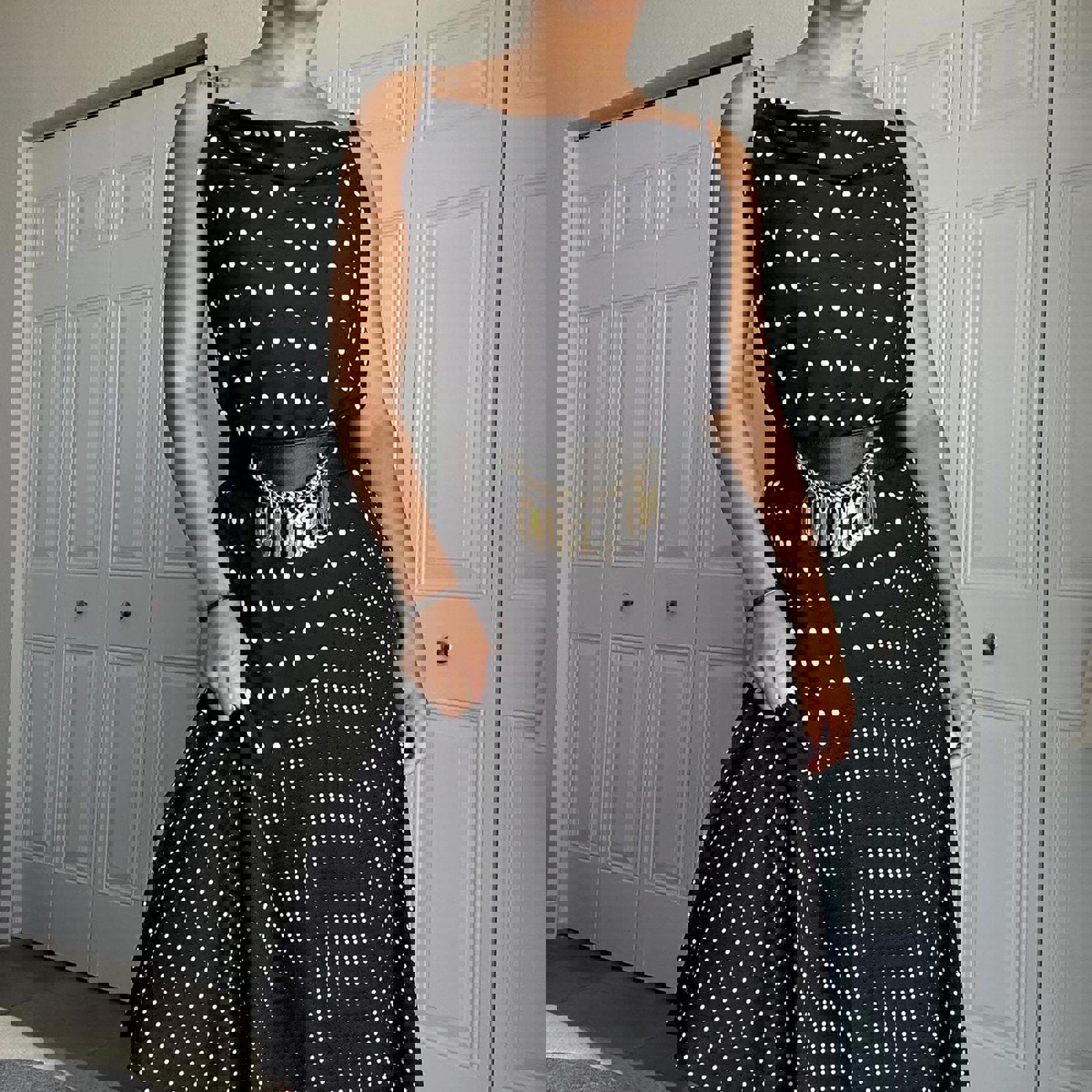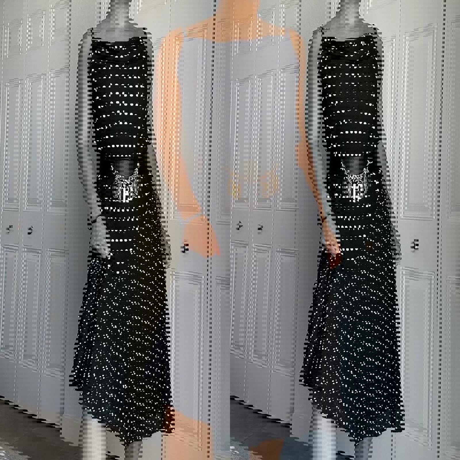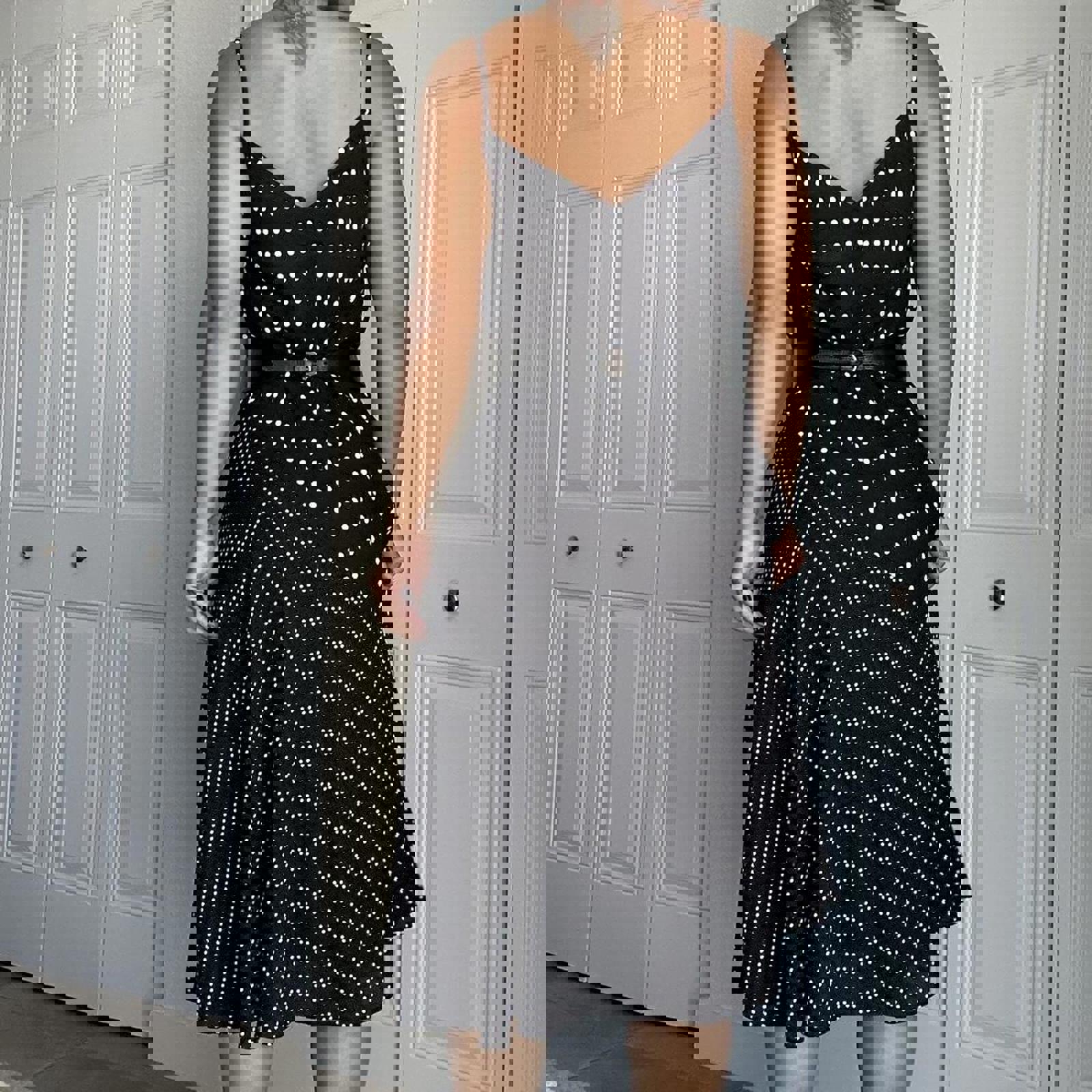 389. Nanette black polkadot dress - cowl neck - labeled a size 6 - perfect condition. BELT NOT INCLUDED