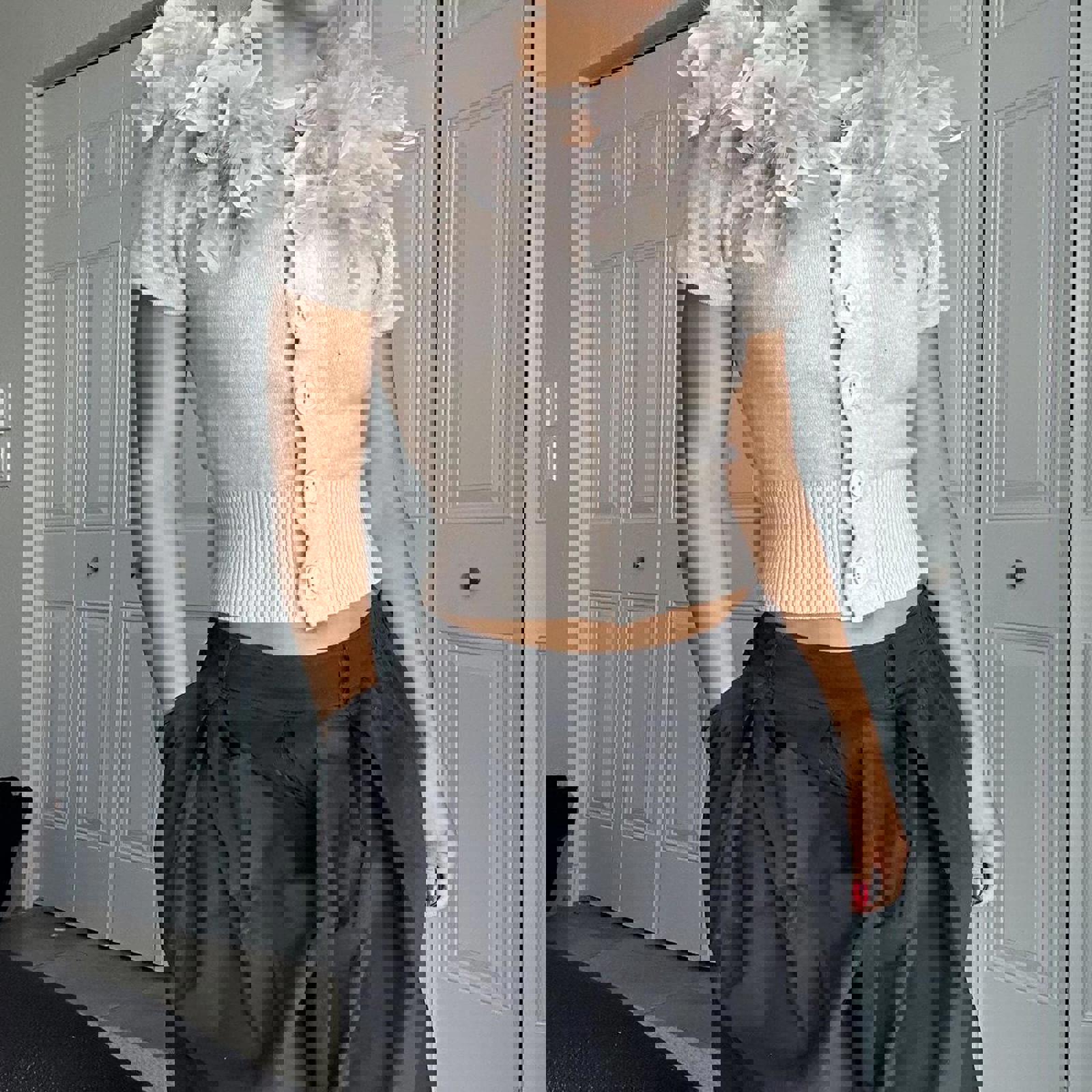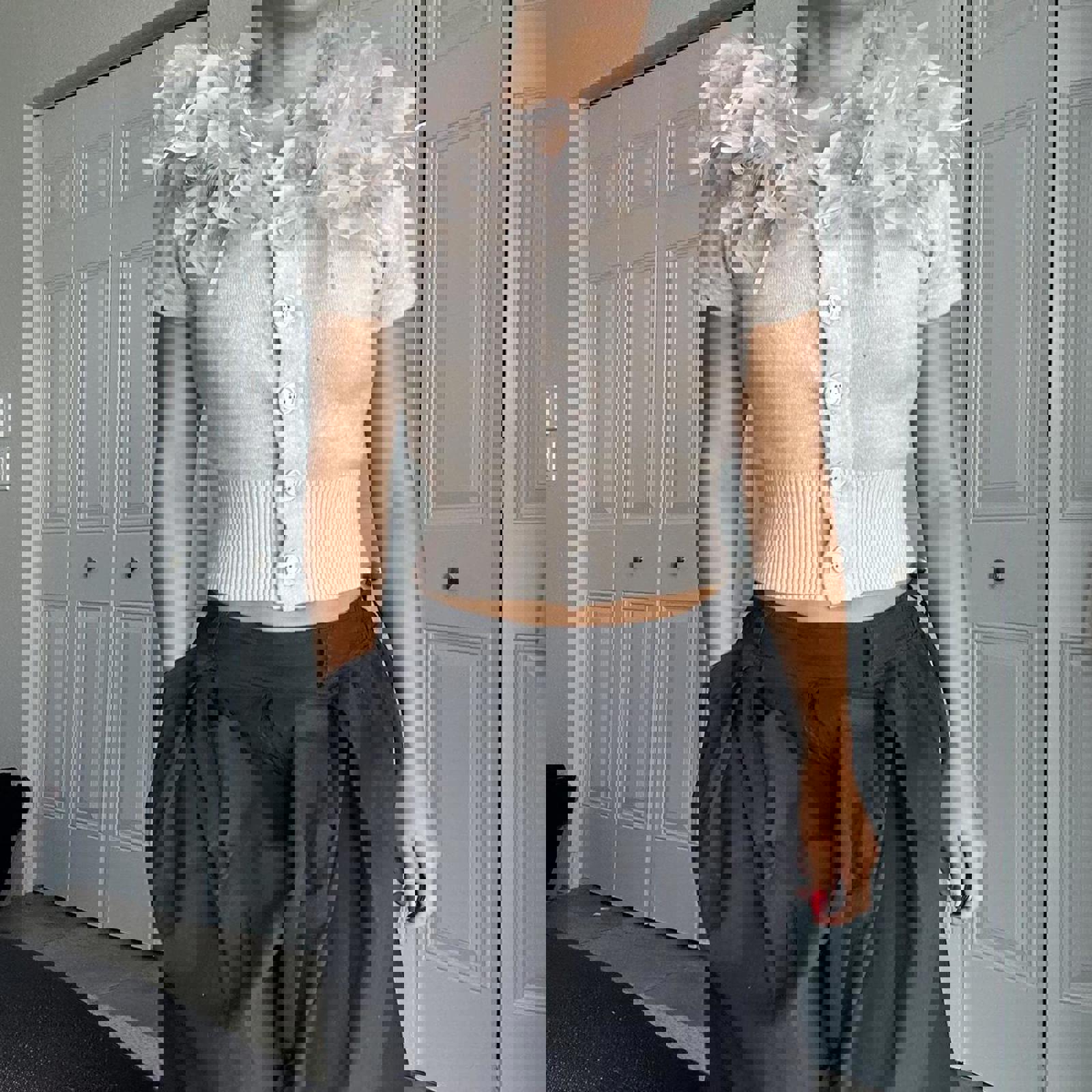633. Nanette Leopore Feather cardigan with short sleeves and button-down middle. In perfect condition. Size small. Tiny hole (shown in last photo) very unnoticeable
