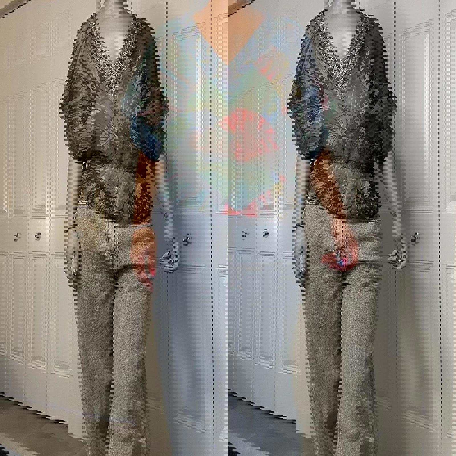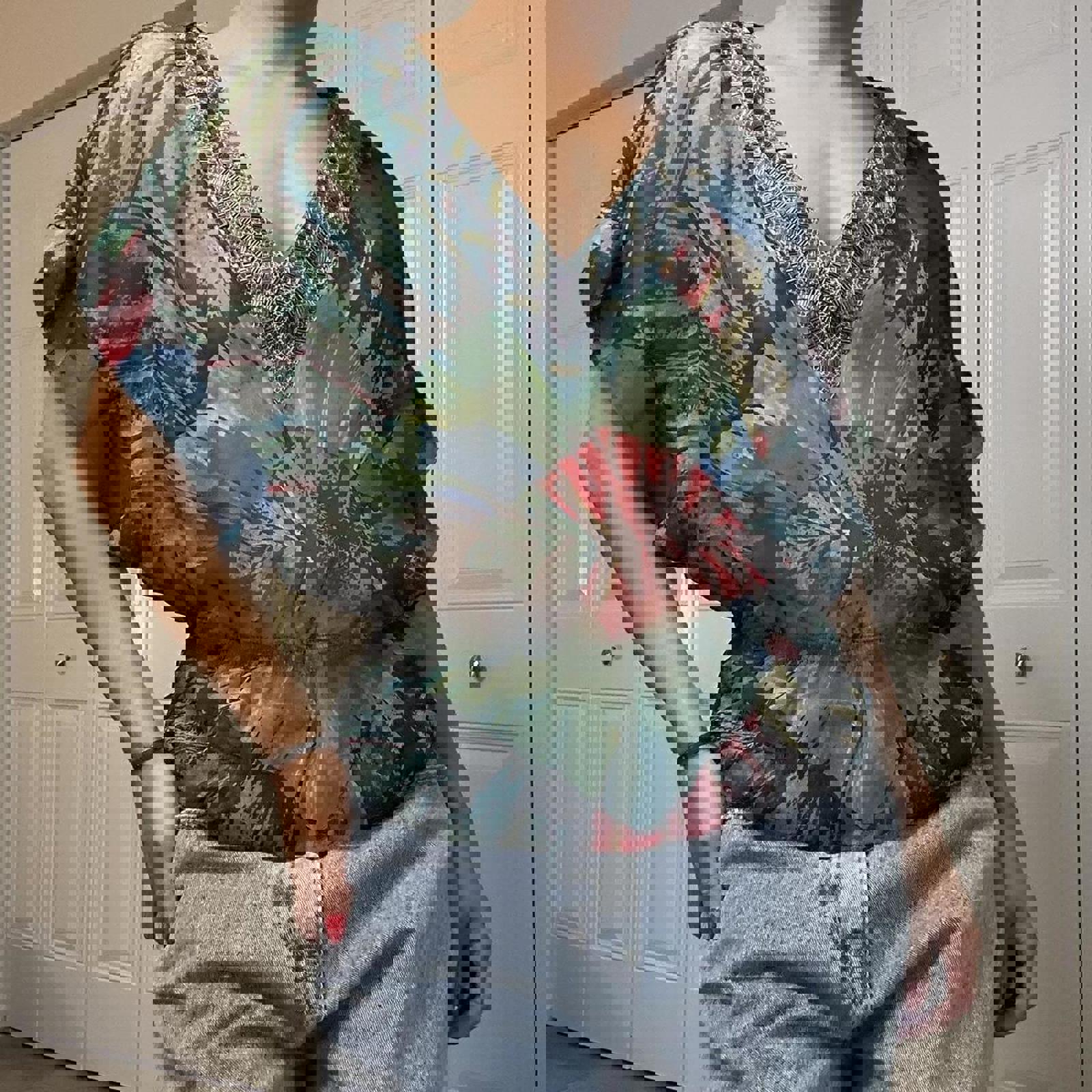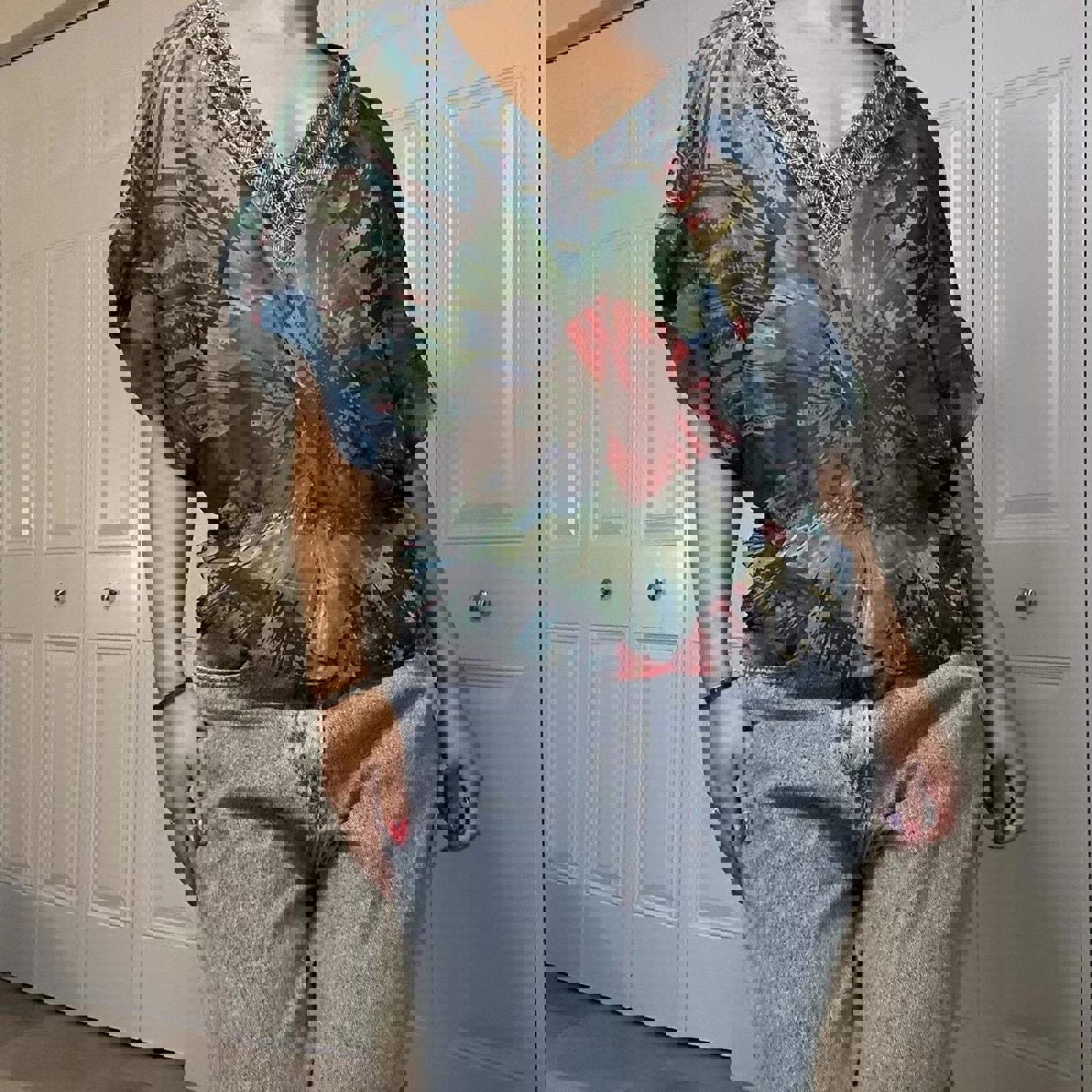 704.Nikibiki sheer multi-colored top in perfect condition, size small.