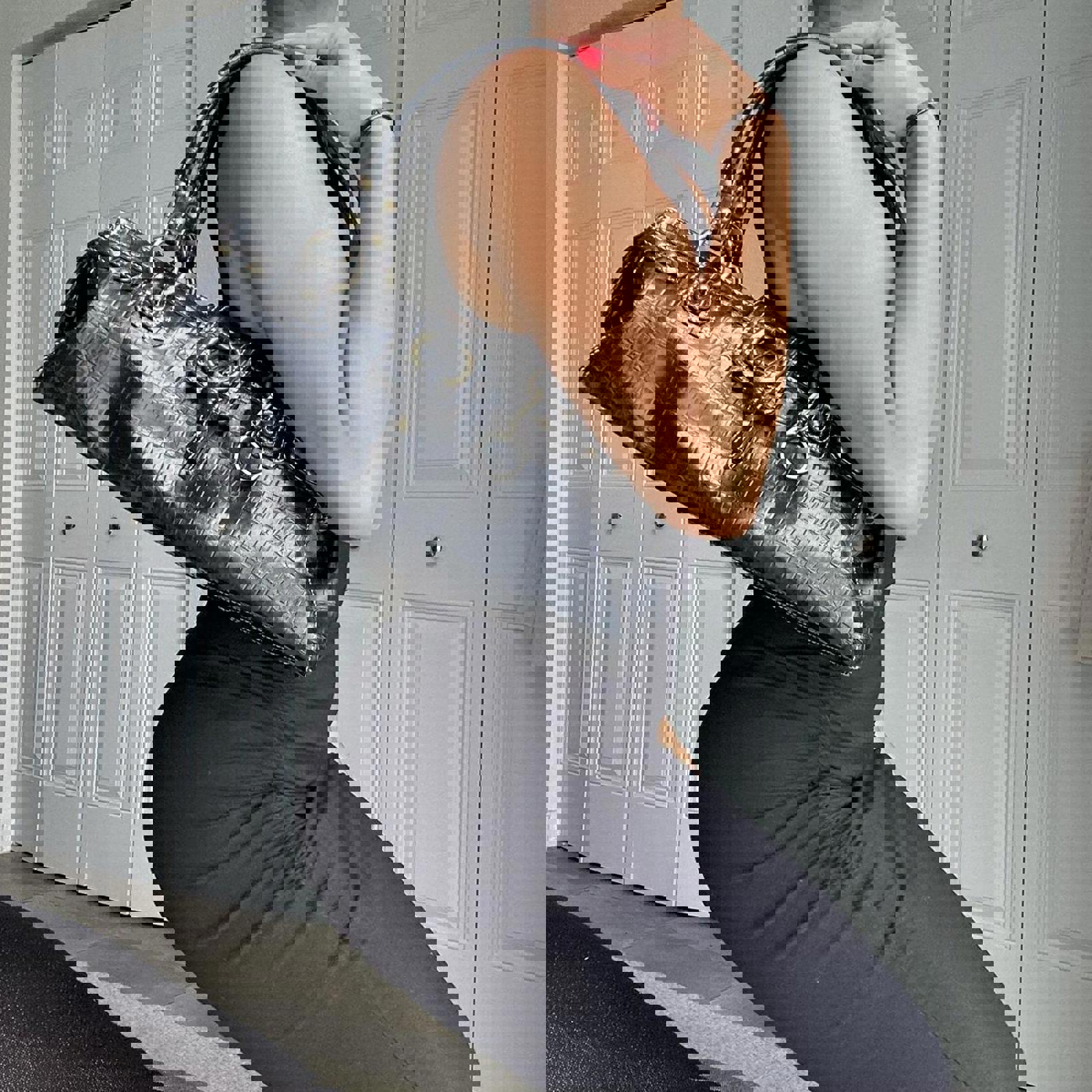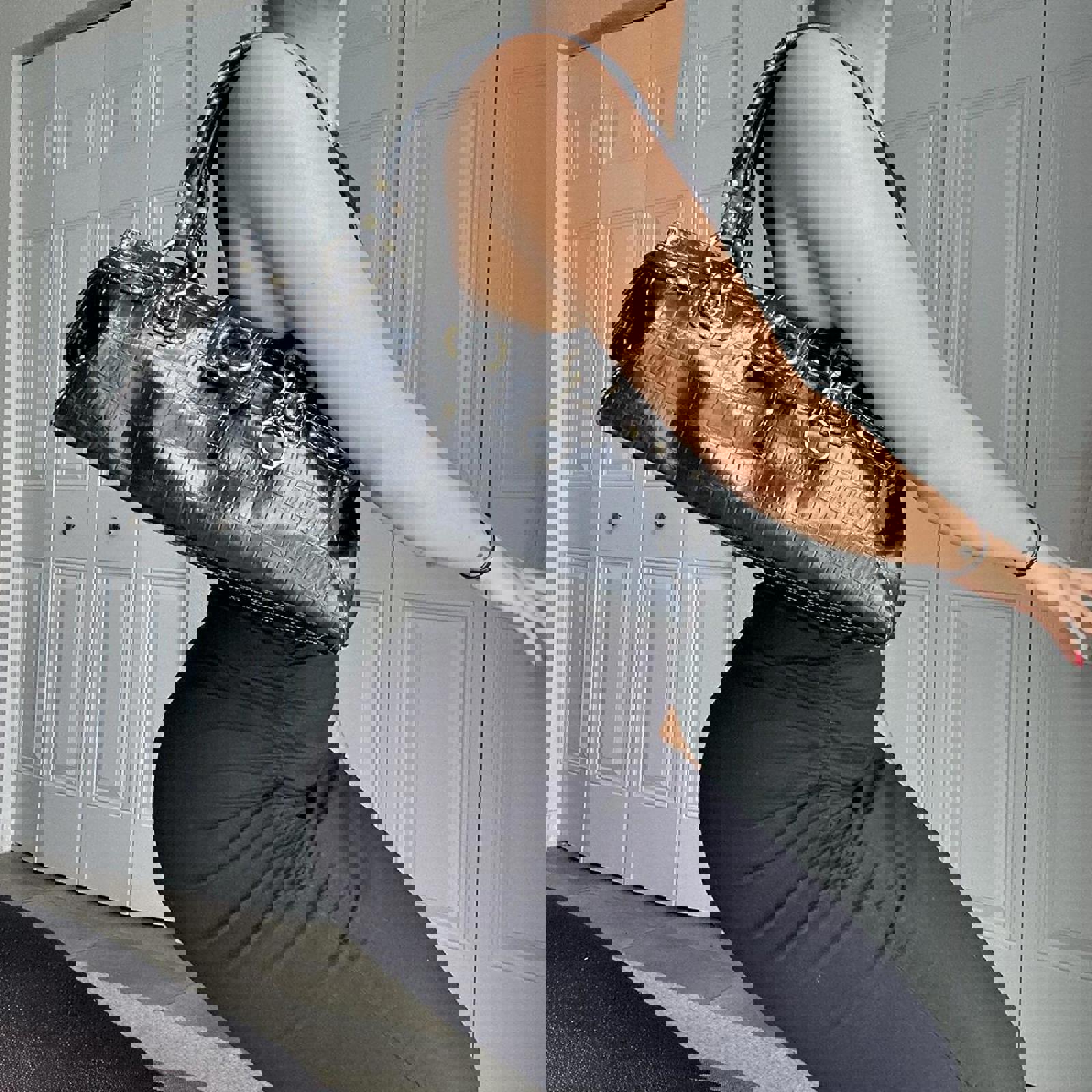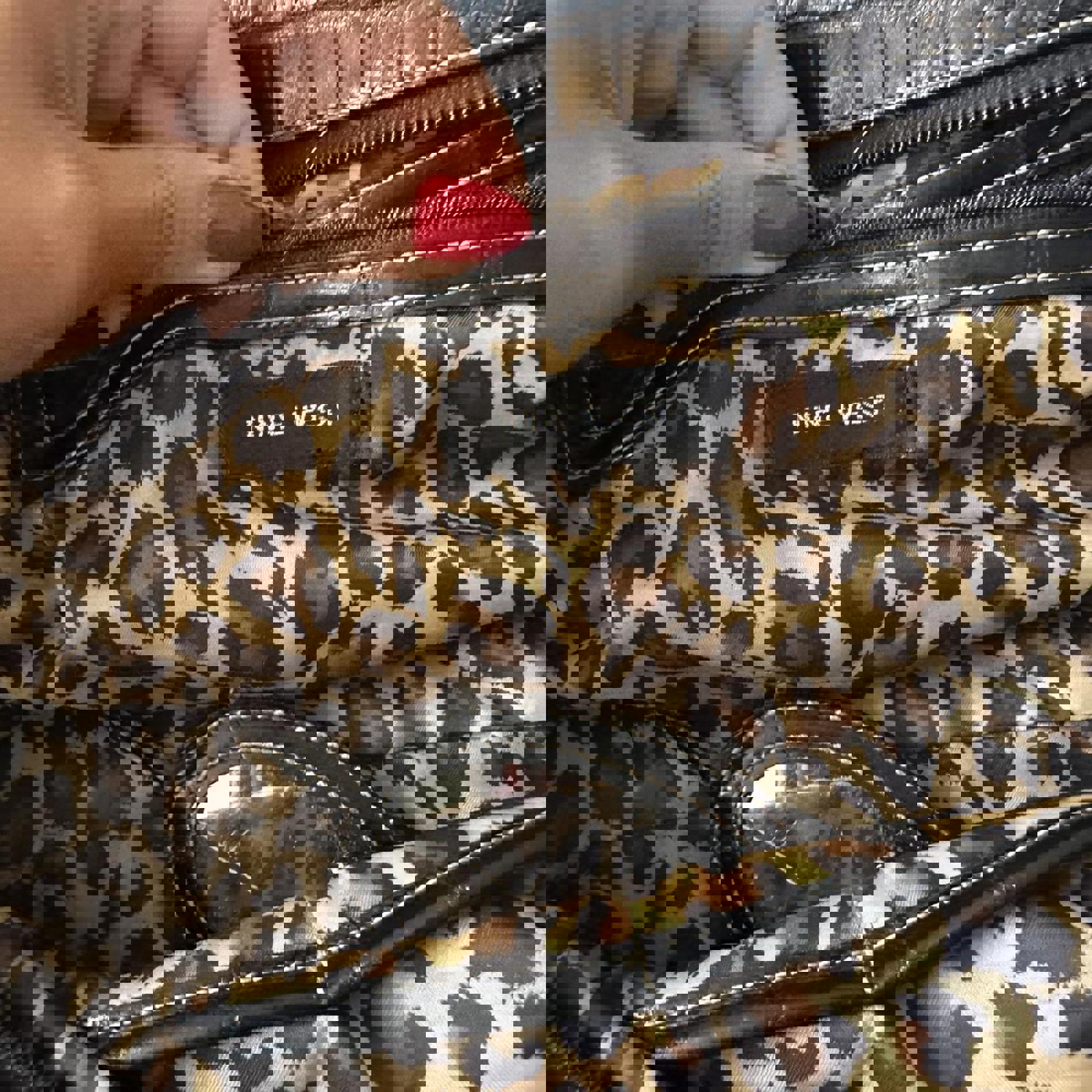670. The absolute coolest Nine West vintage bowling bag in black croc material. Such good vintage condition. Has cheetah lining. Length is 14 inches. Depth is about 6 1⁄2 inches. Width is 4 inches. Also comes with a little mirror that is attached inside. It is cracked.