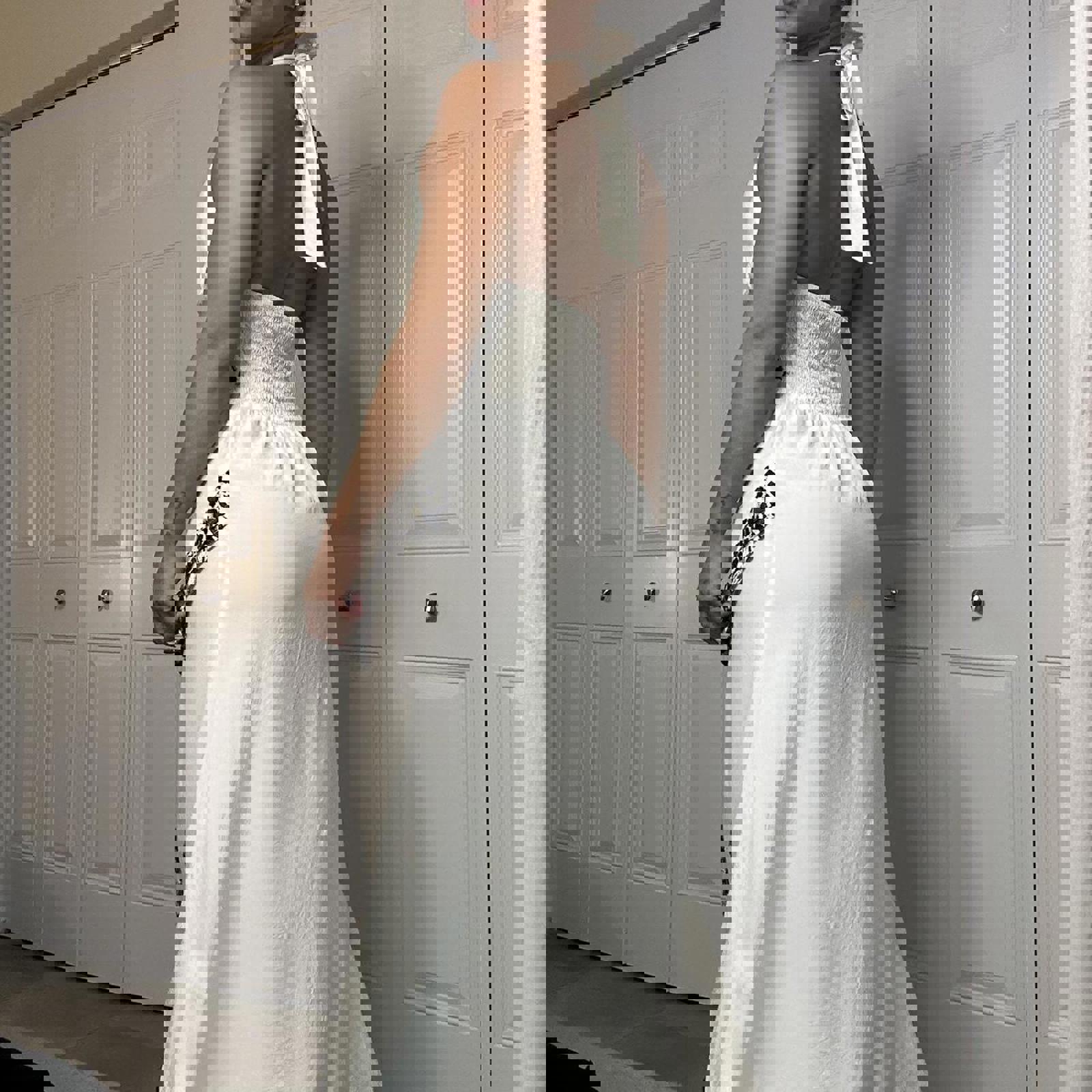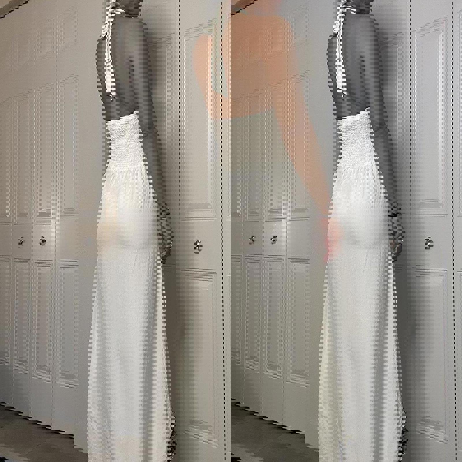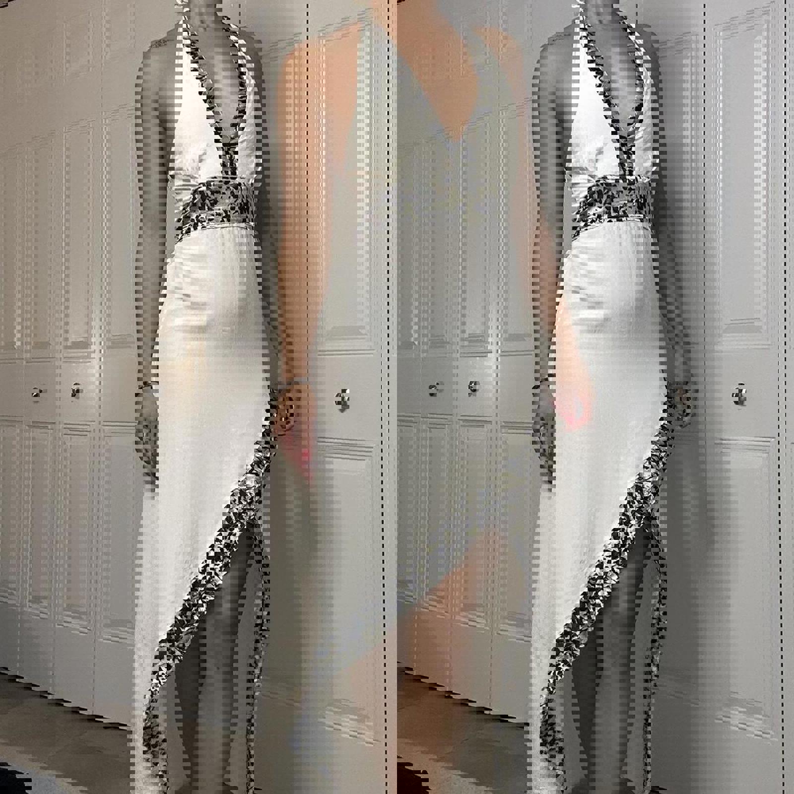 697. Wuwatu cream and black halter dress with cheetah accents in great condition. Has high-low feature. It is a size medium shown on a size small.